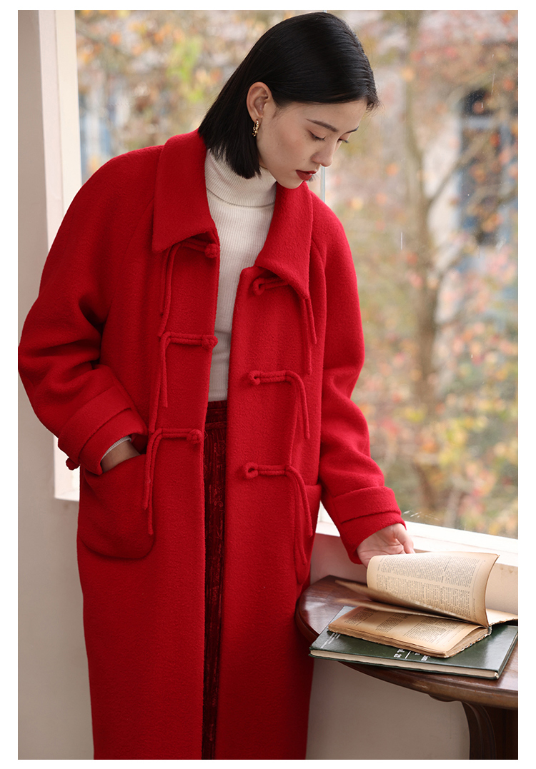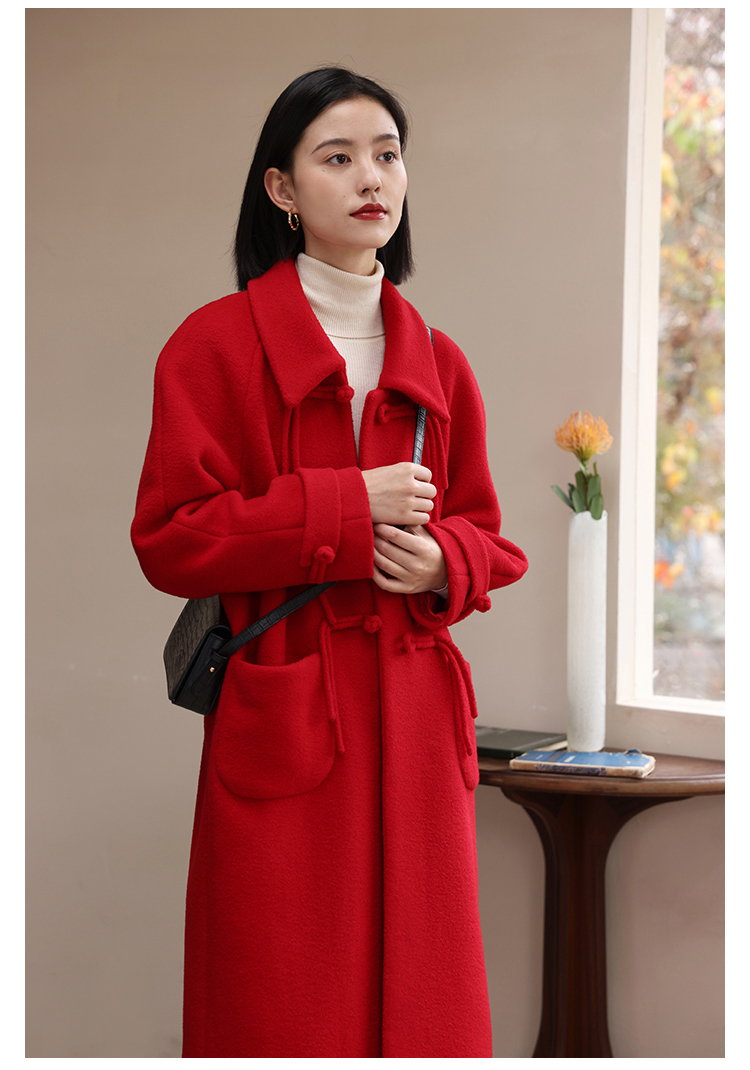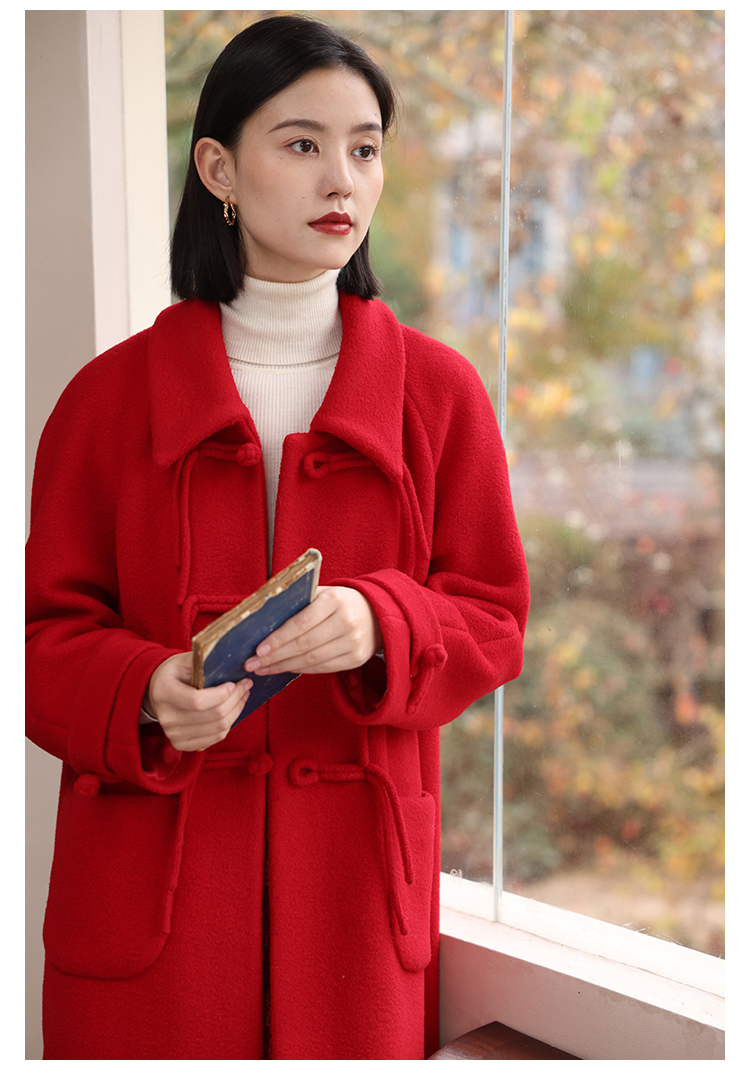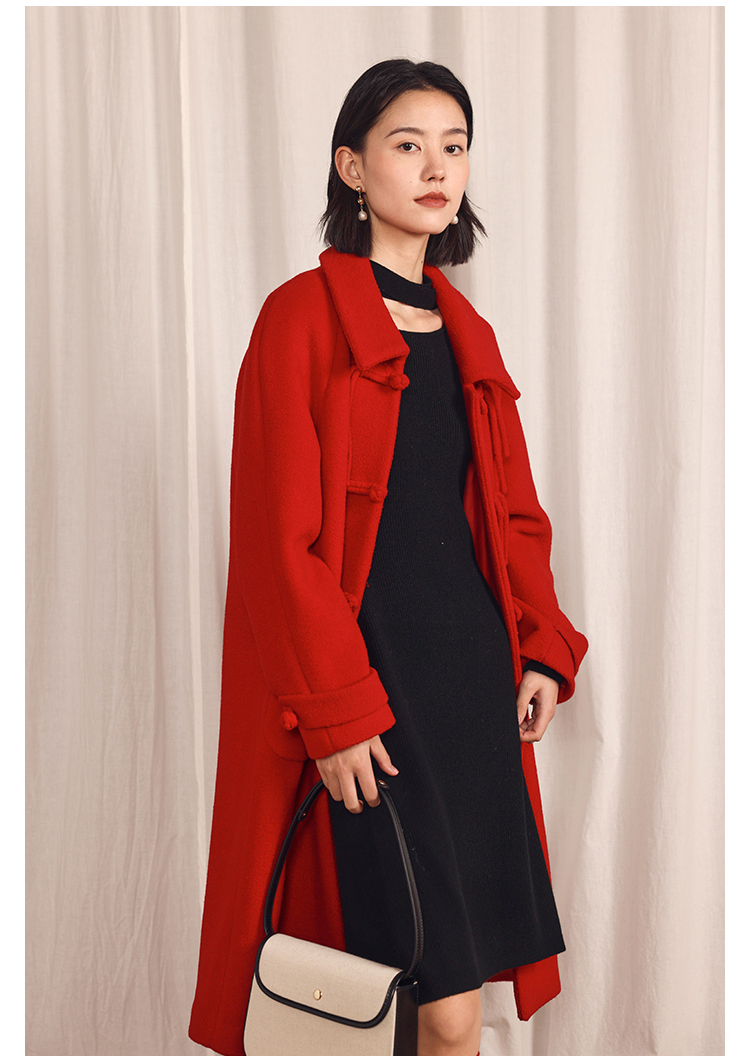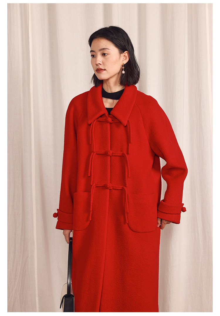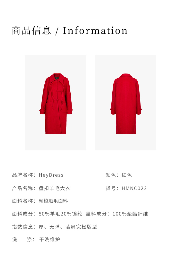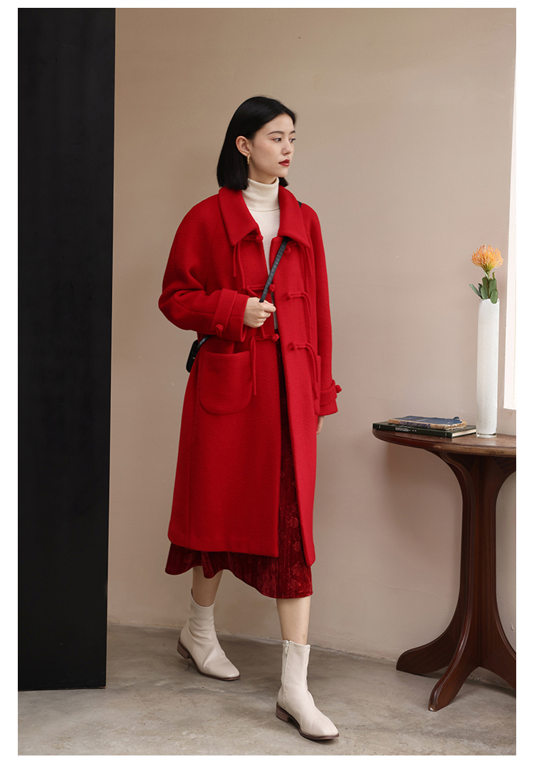 HeyDress中式国风盘扣毛呢外套女秋冬复古新年红圣诞红羊毛大衣