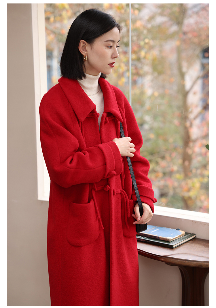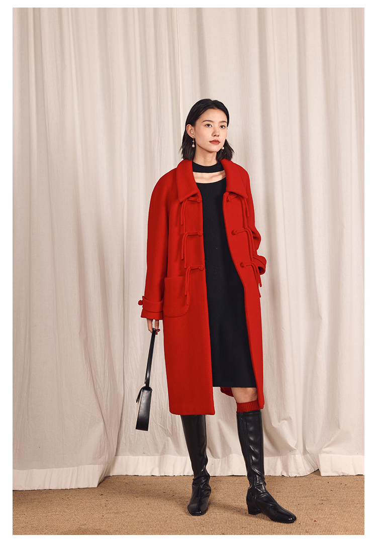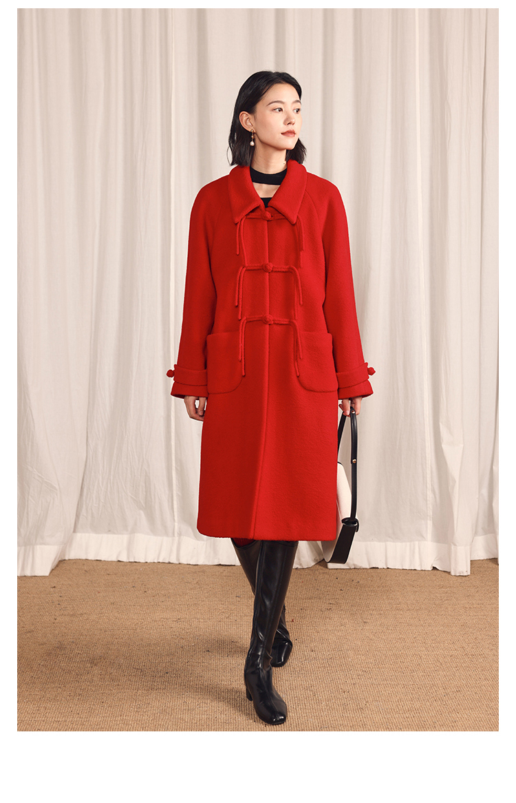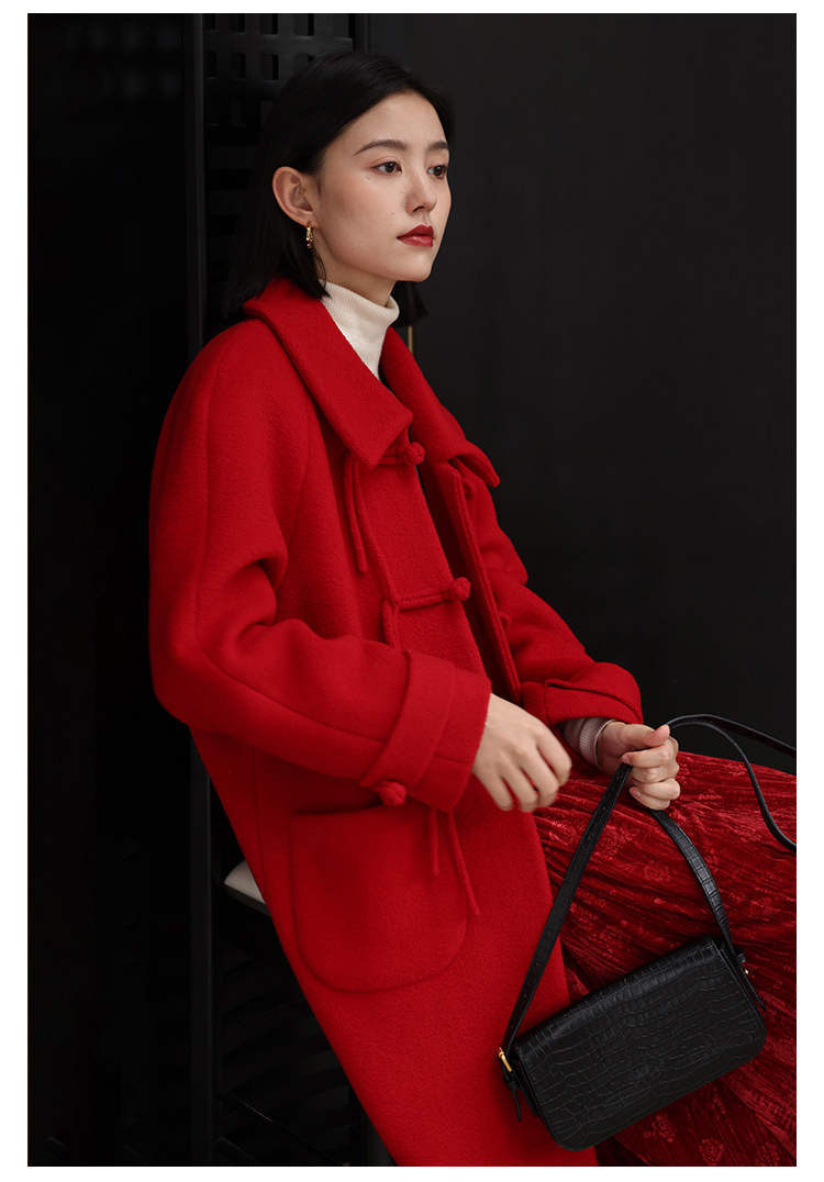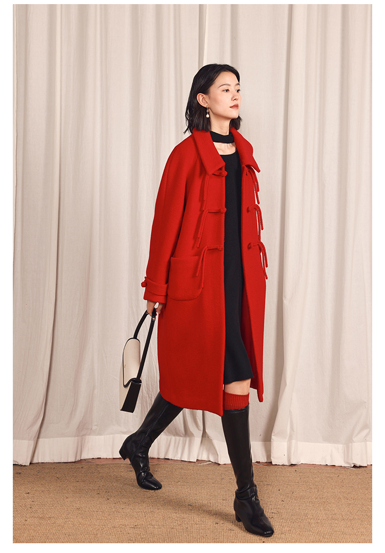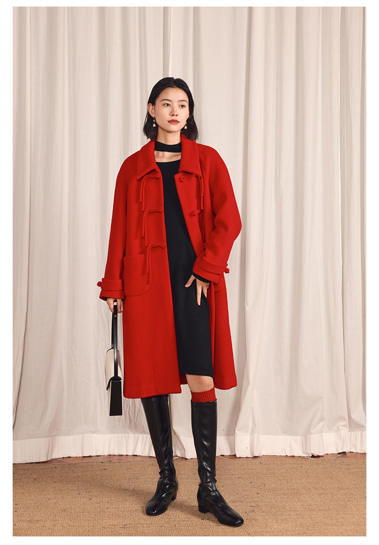 HeyDress中式国风盘扣毛呢外套女秋冬复古新年红圣诞红羊毛大衣
