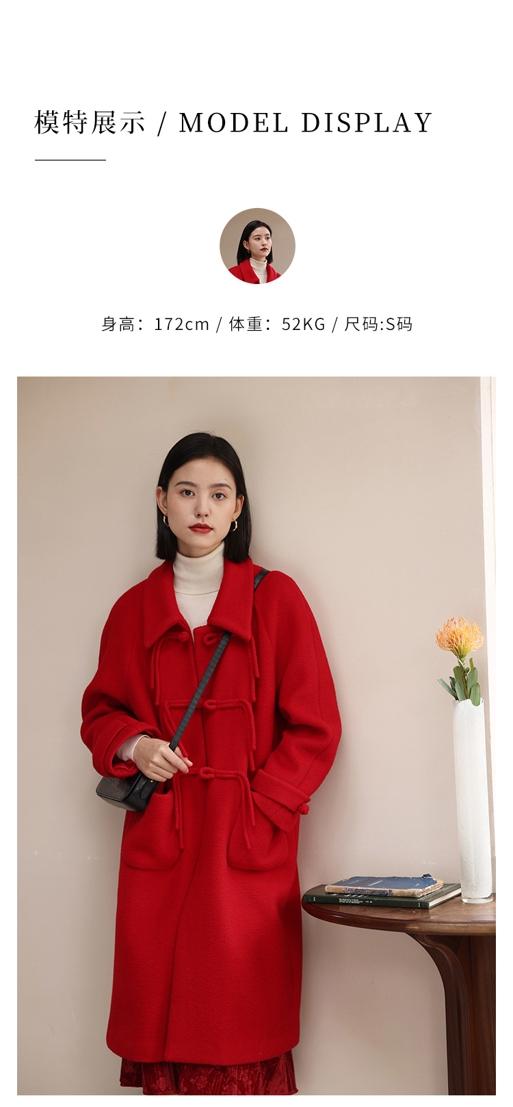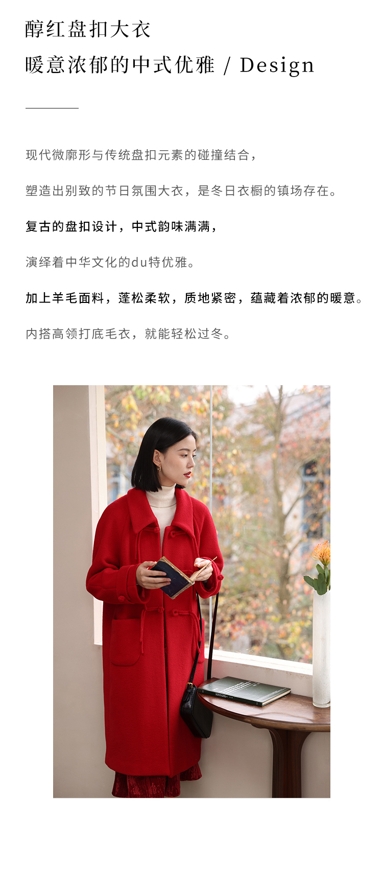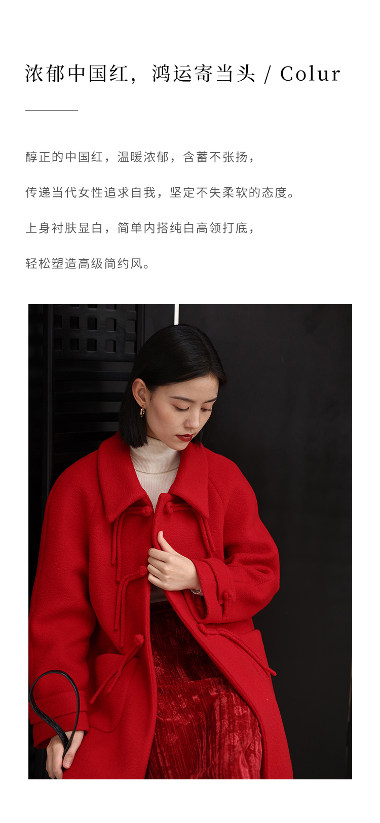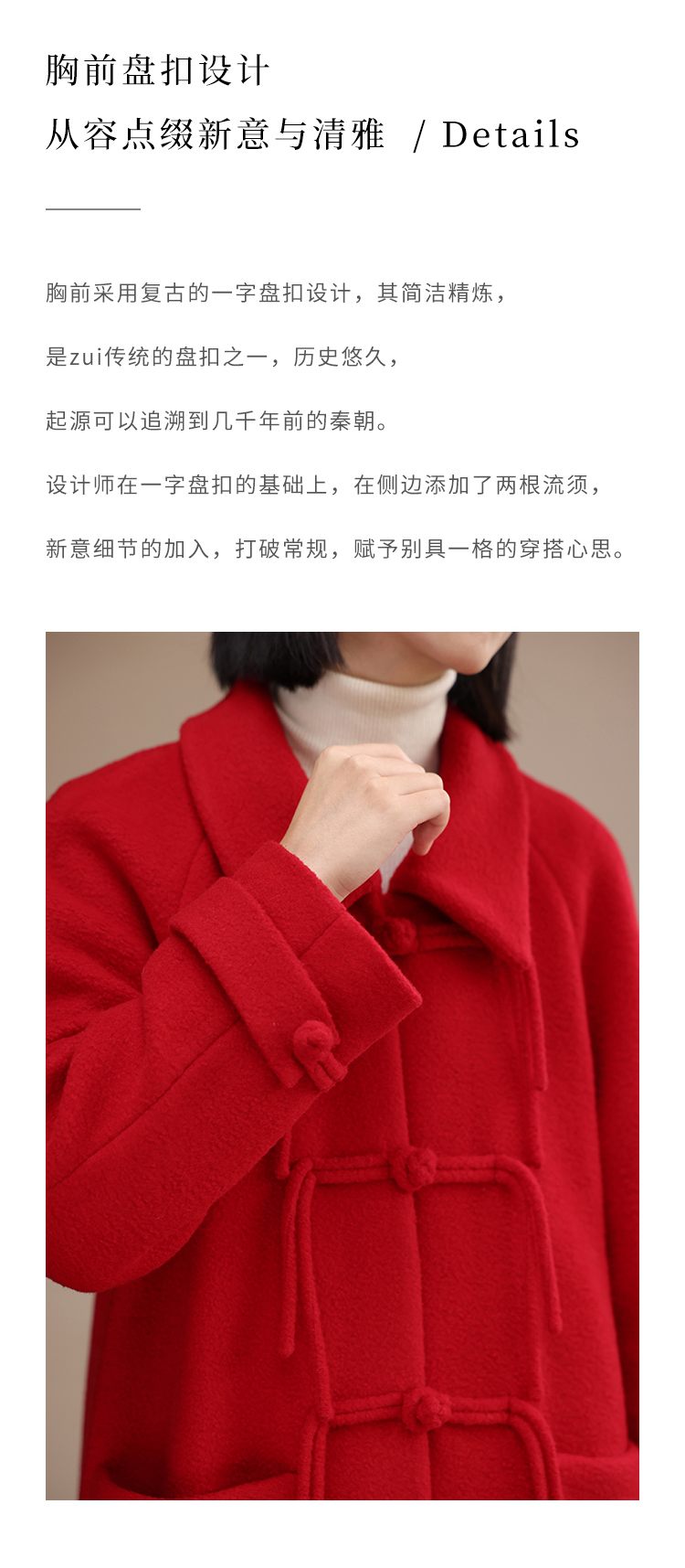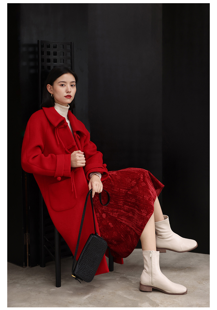 HeyDress中式国风盘扣毛呢外套女秋冬复古新年红圣诞红羊毛大衣