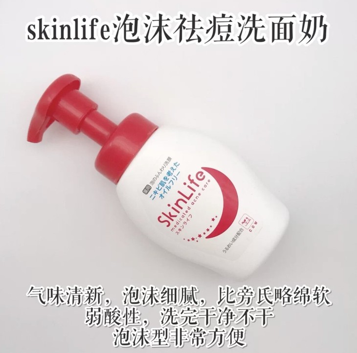 COW 药用泡沫洗面奶200ml👍牛乳牌Skinlife药用泡沫洗面奶在日本🇯🇵它被誉为粉刺和痘痘的大敌,👉能彻底清除及避免痘痘侵害,避免痘痘恶化,清除痘痘的红印、角质及清洁堵塞的毛孔,让肌肤恢复光滑✨。本品采用痘痘护理洁面泡泡的温和控油配方,泡沫充满弹性不刺激肌肤✅,具有更温和的洁面效果哟。☁细滑的泡沫轻柔地包裹着肌肤,洁面时更舒适,并散发清新花香🌸。超级推荐给容易发痘的油性及混合油性肌肤🙋。