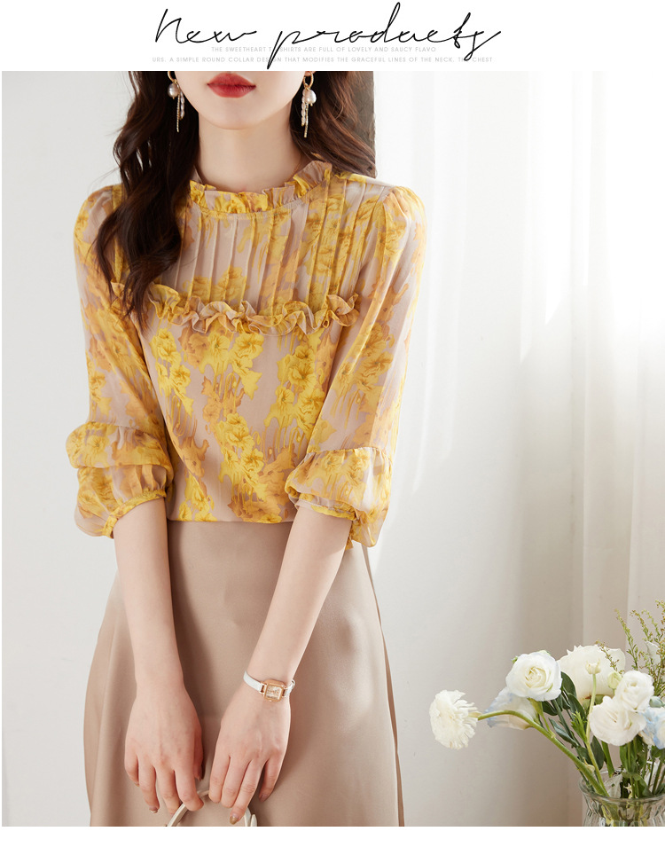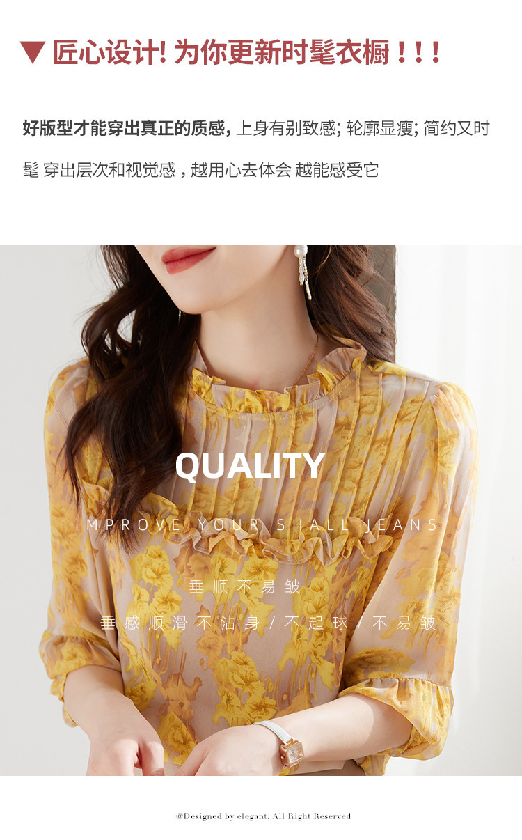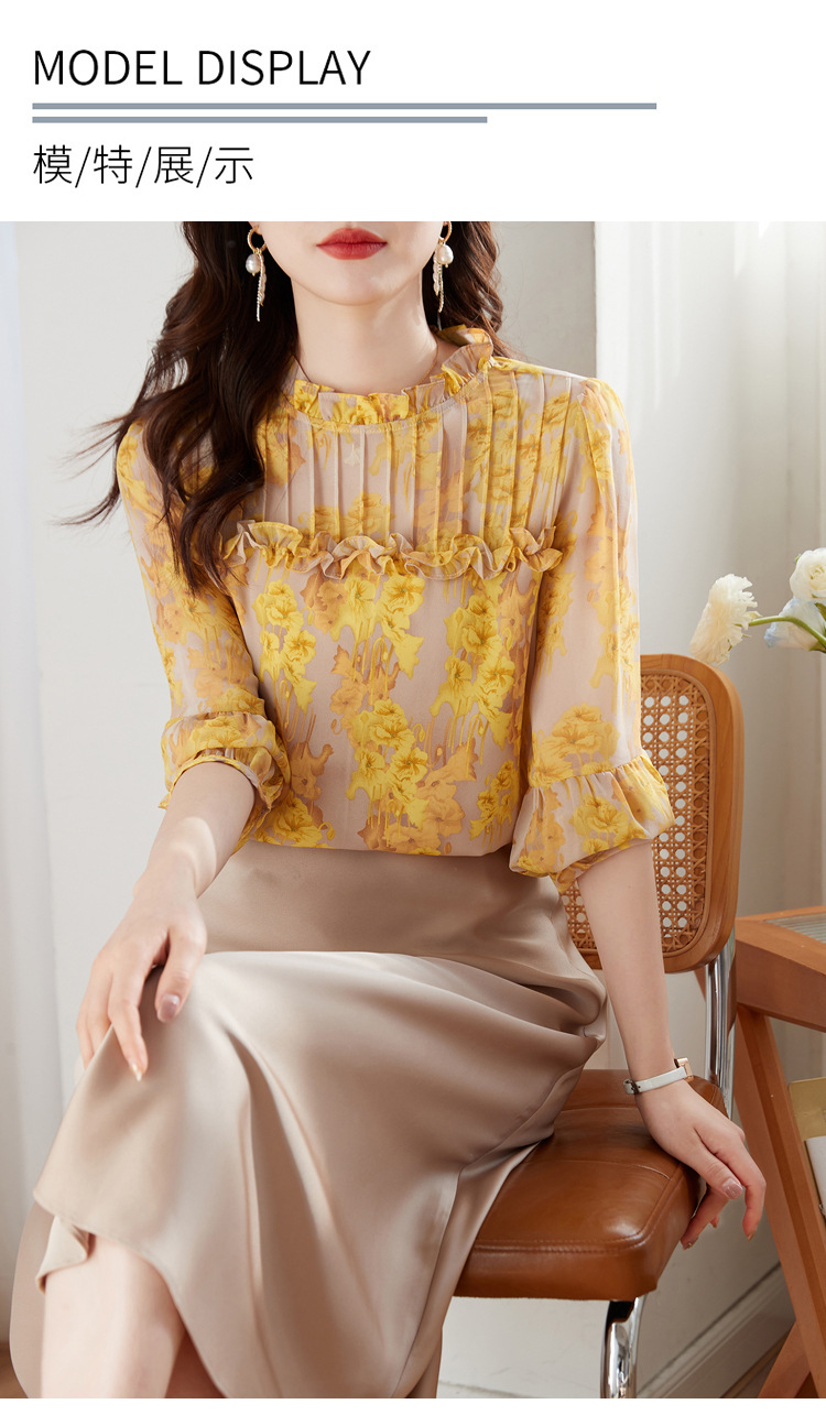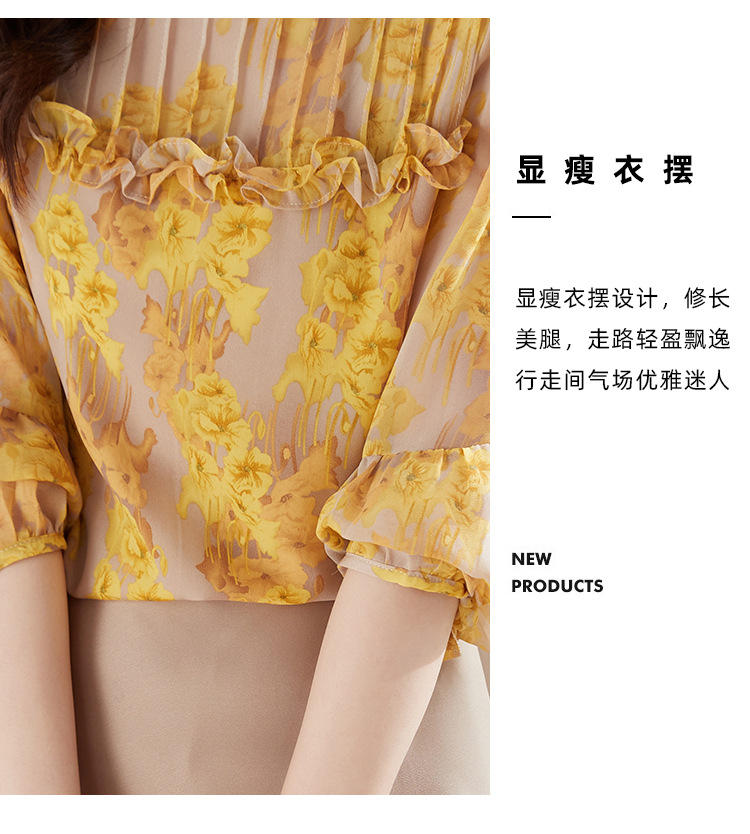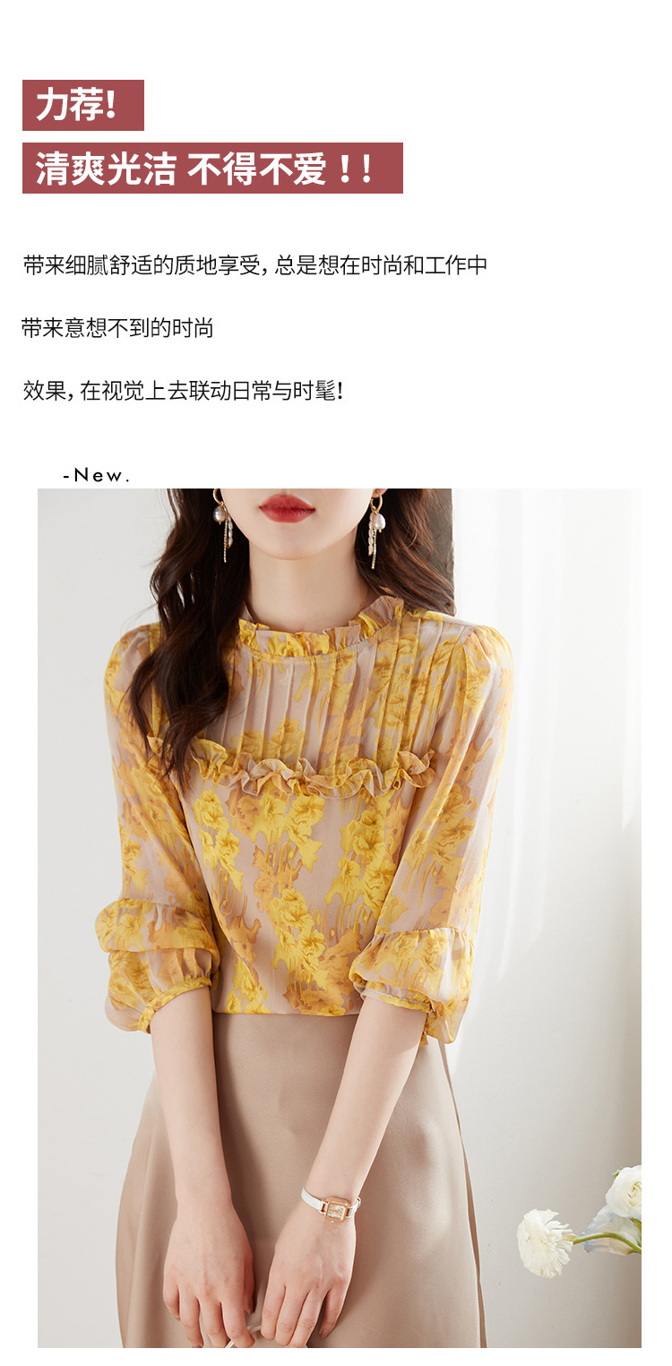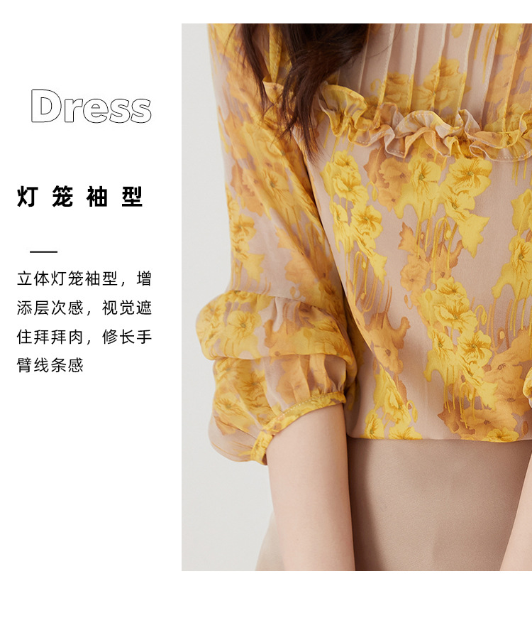 AHMdtyx2180印花雪纺衬衫妈妈装2023夏季新款时尚气质优雅宽松显瘦荷叶领上衣