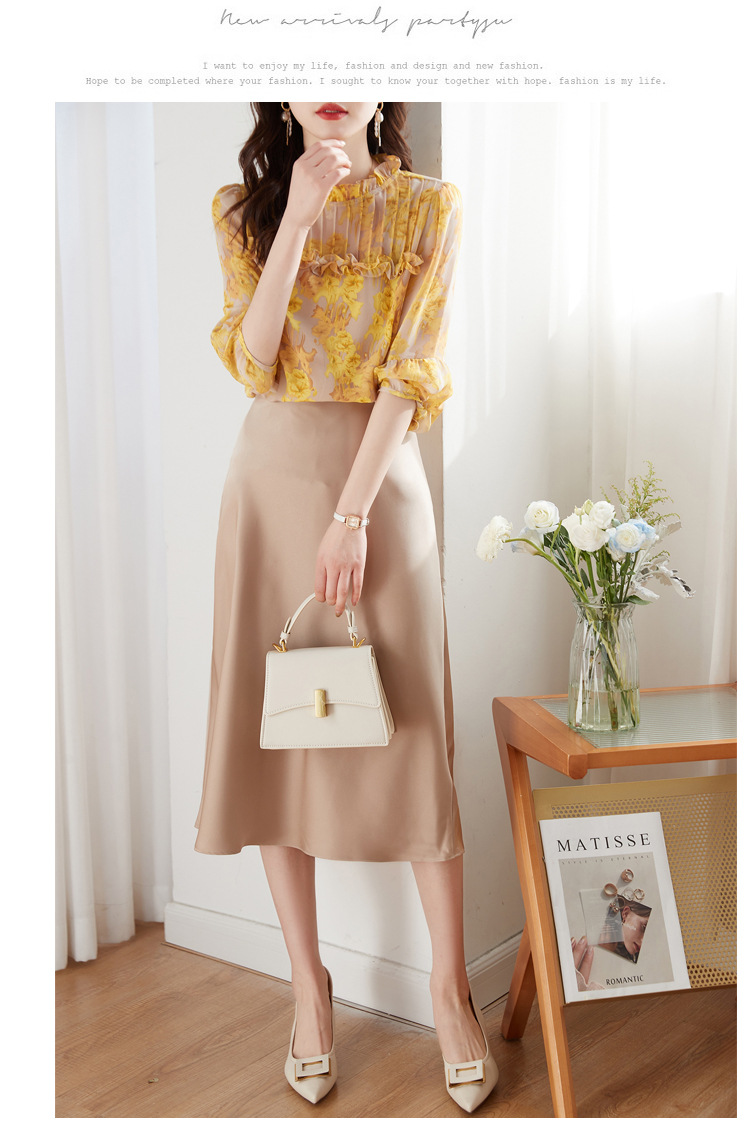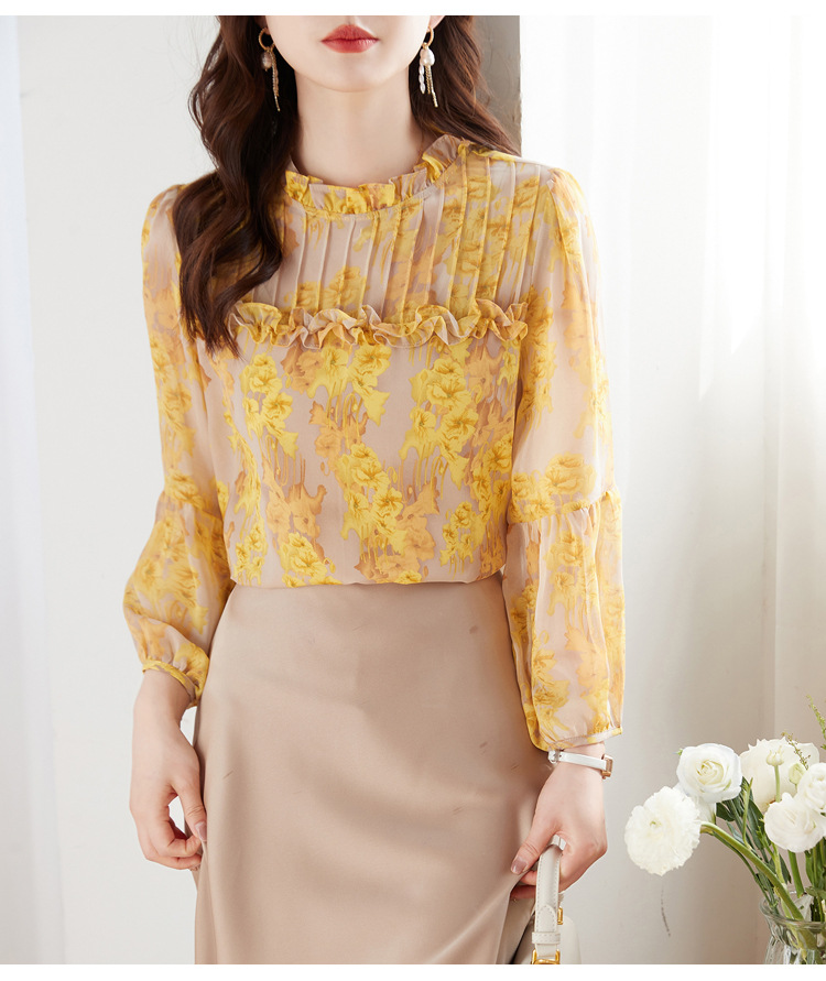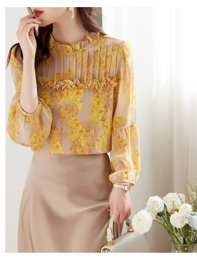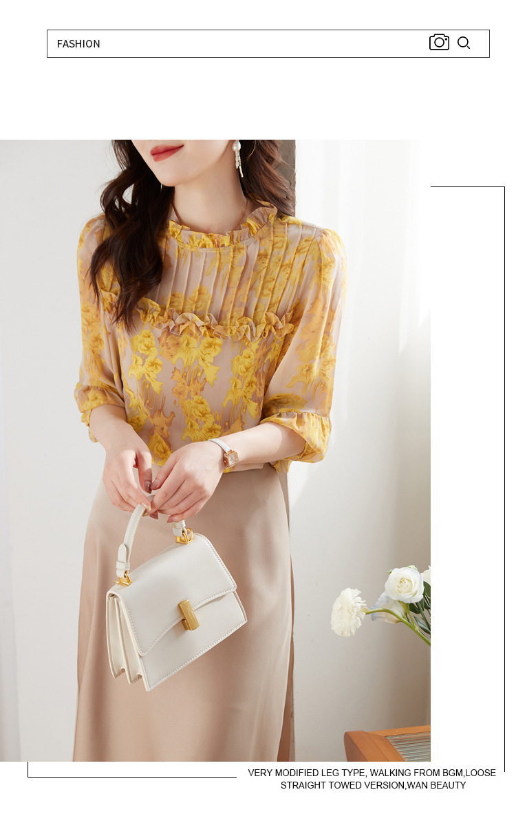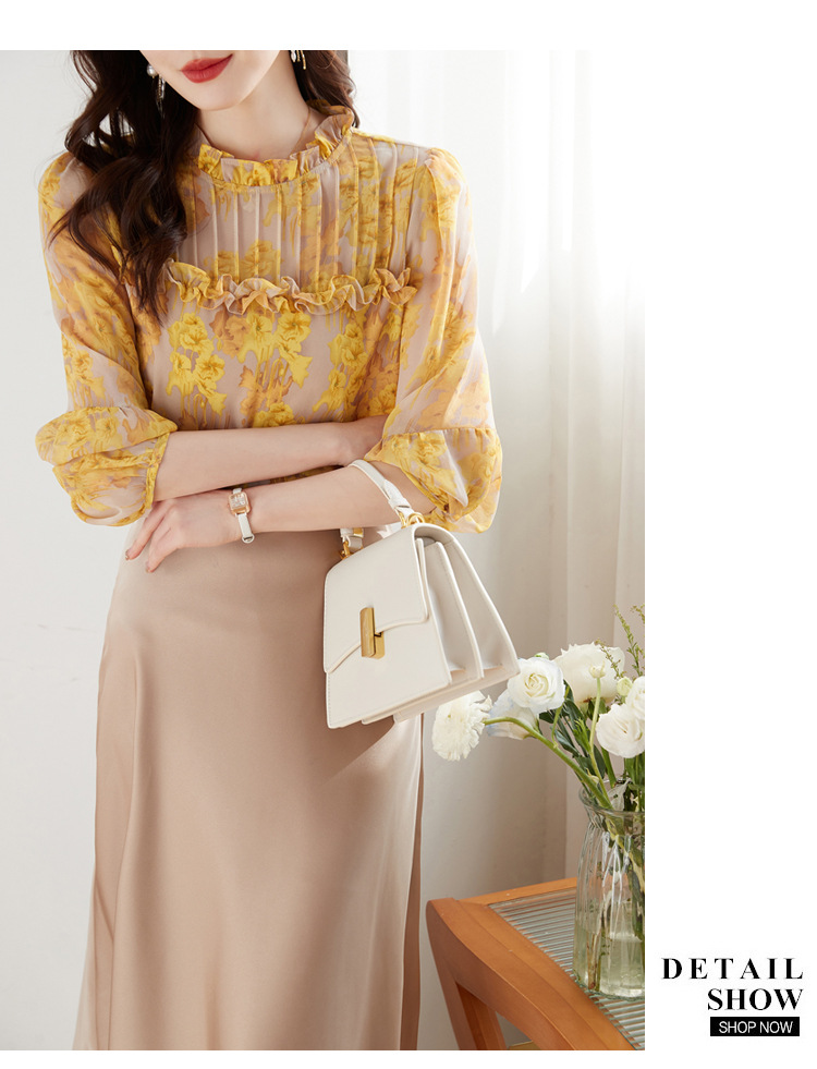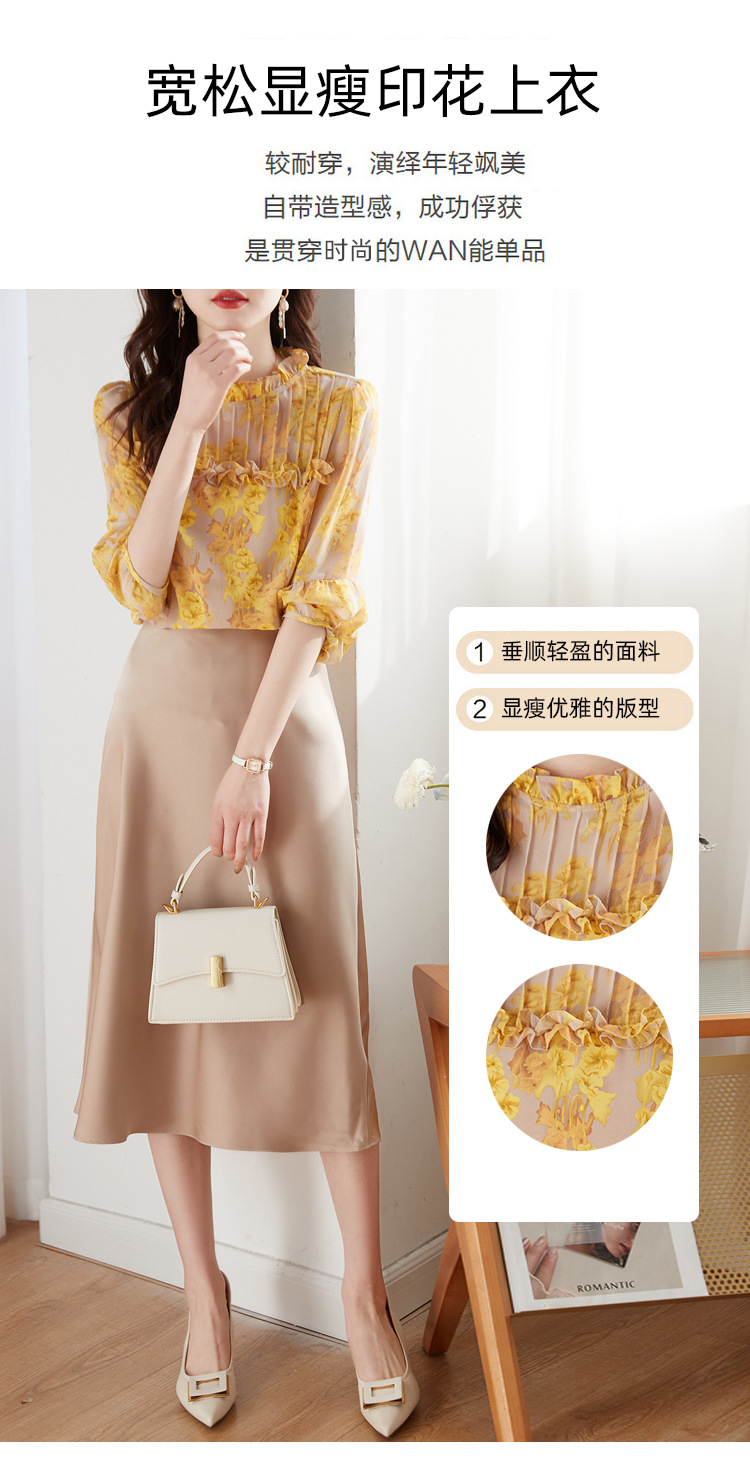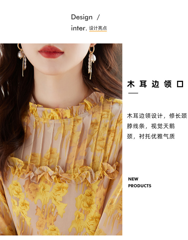 AHMdtyx2180印花雪纺衬衫妈妈装2023夏季新款时尚气质优雅宽松显瘦荷叶领上衣