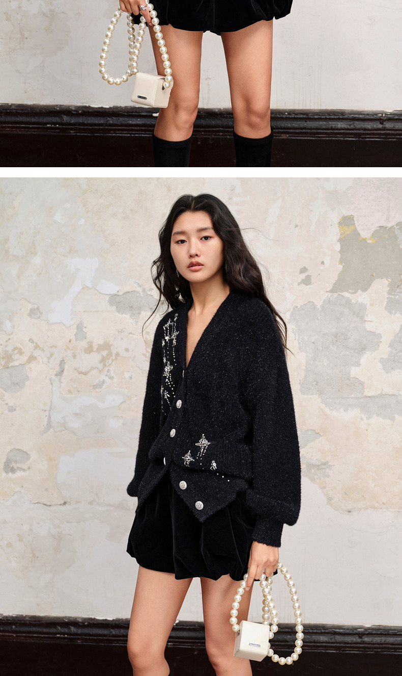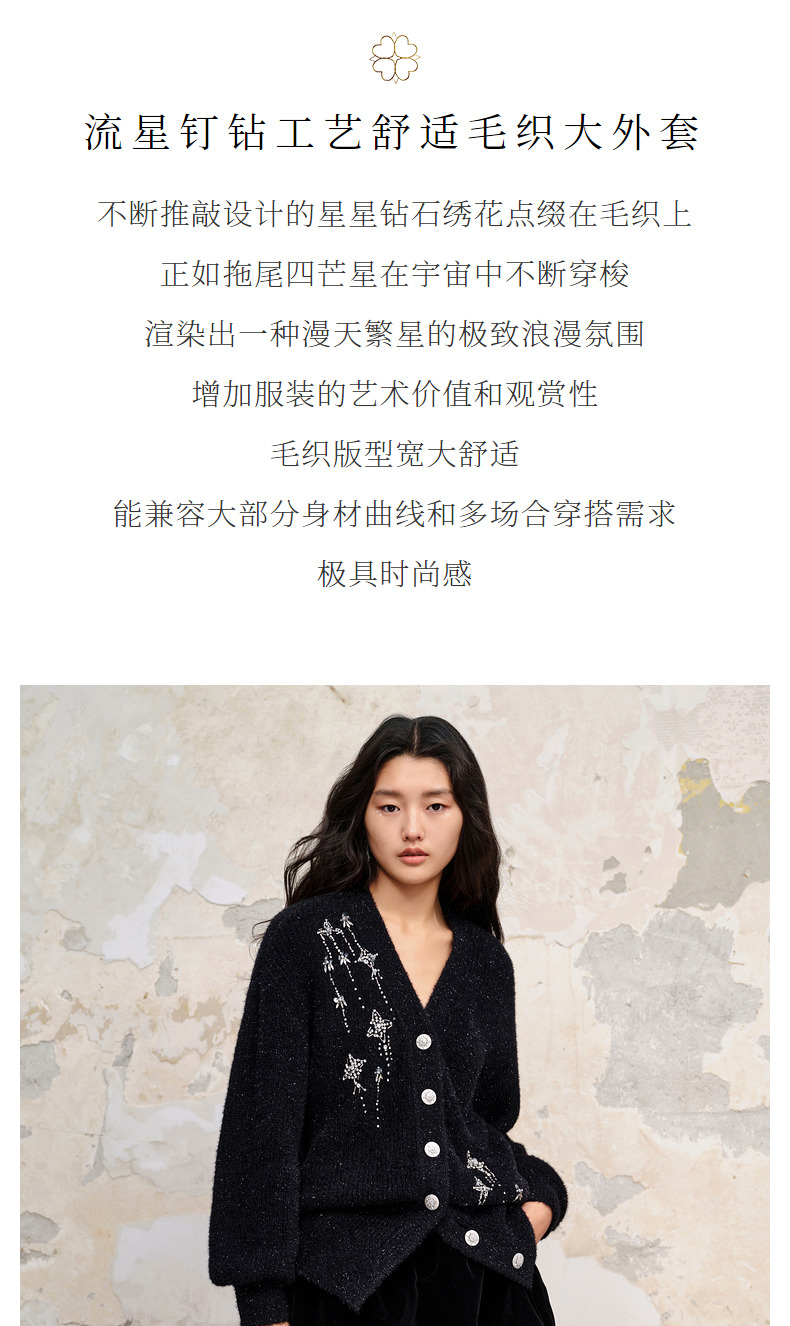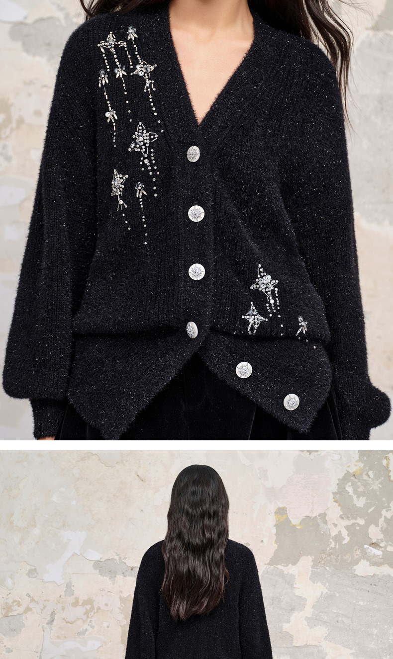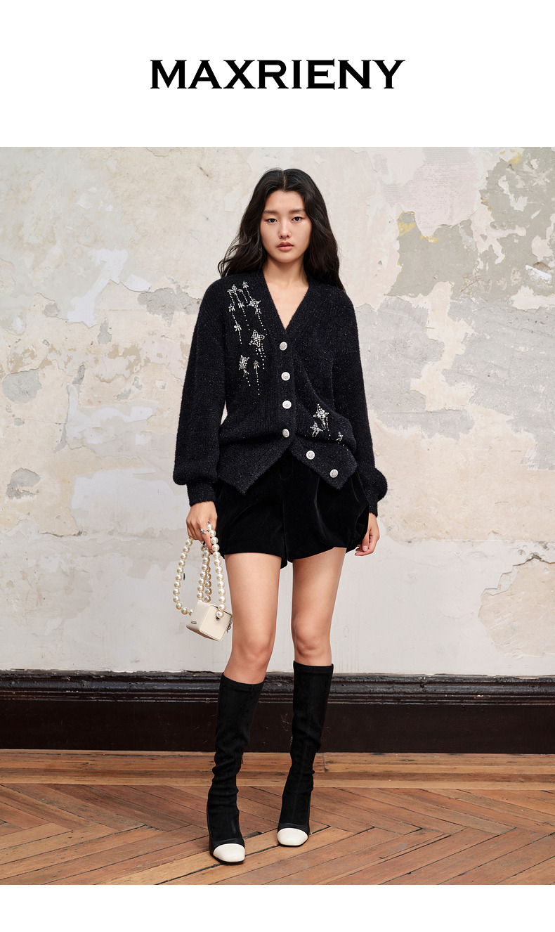 MAXRIENY*复古感宽松针织开衫外套流星钉钻装饰(货号:MC88JA518)