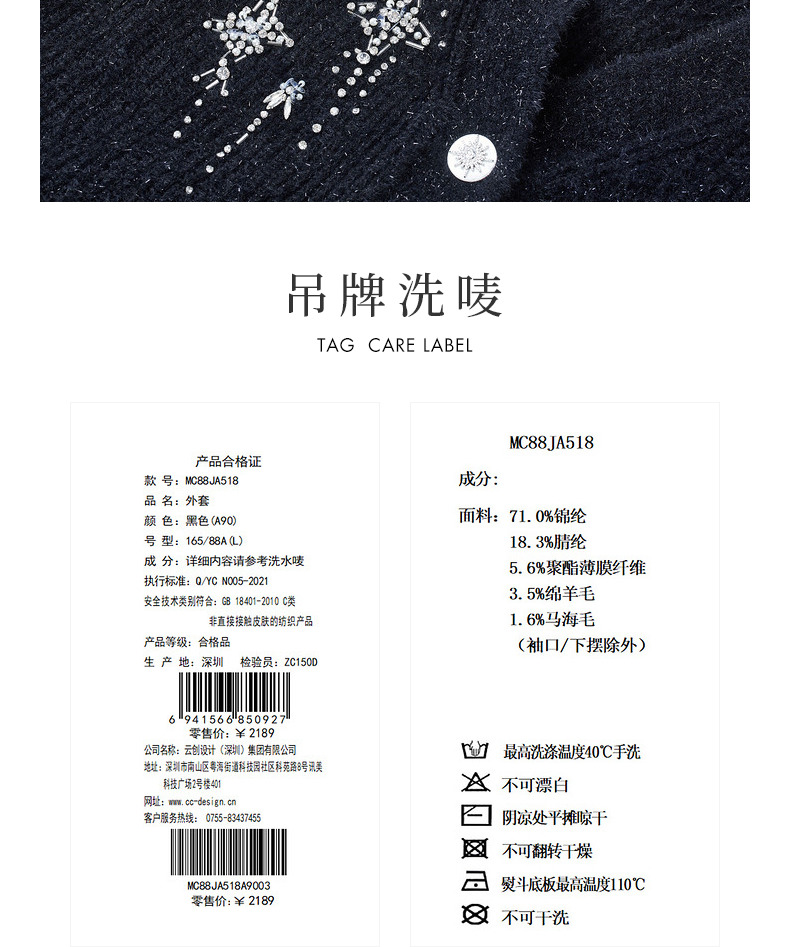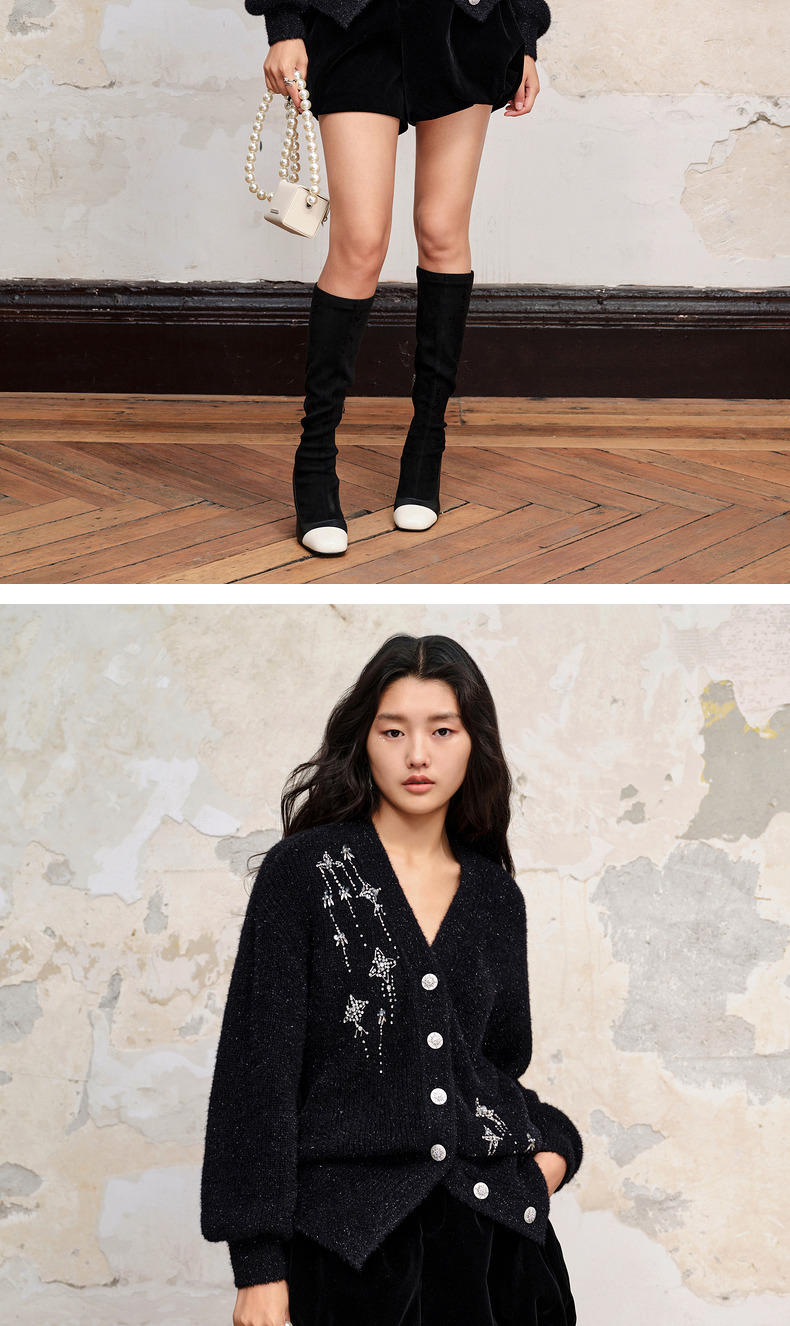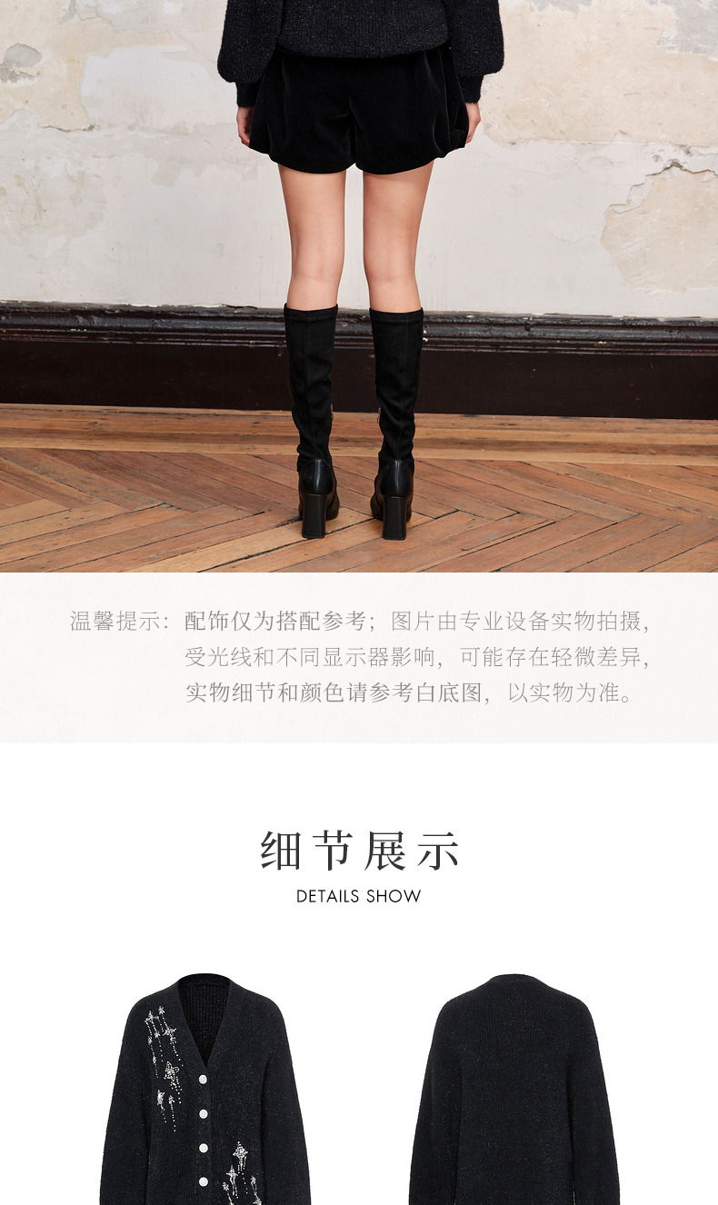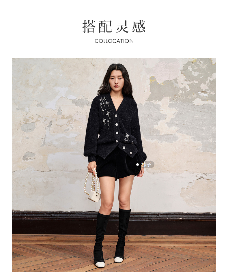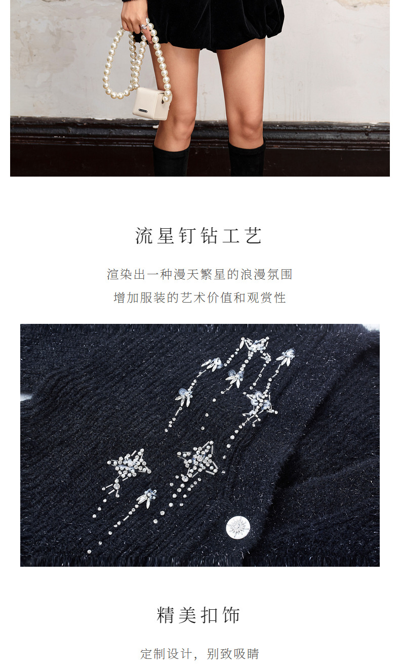MAXRIENY*复古感宽松针织开衫外套流星钉钻装饰(货号:MC88JA518)