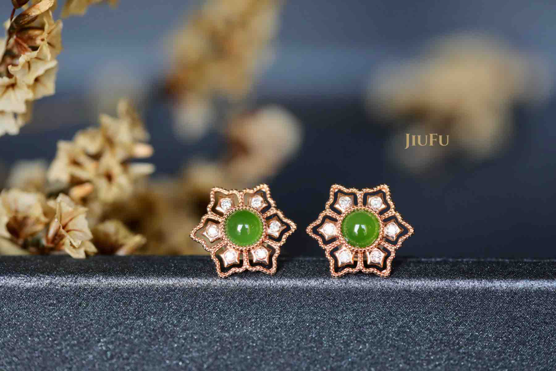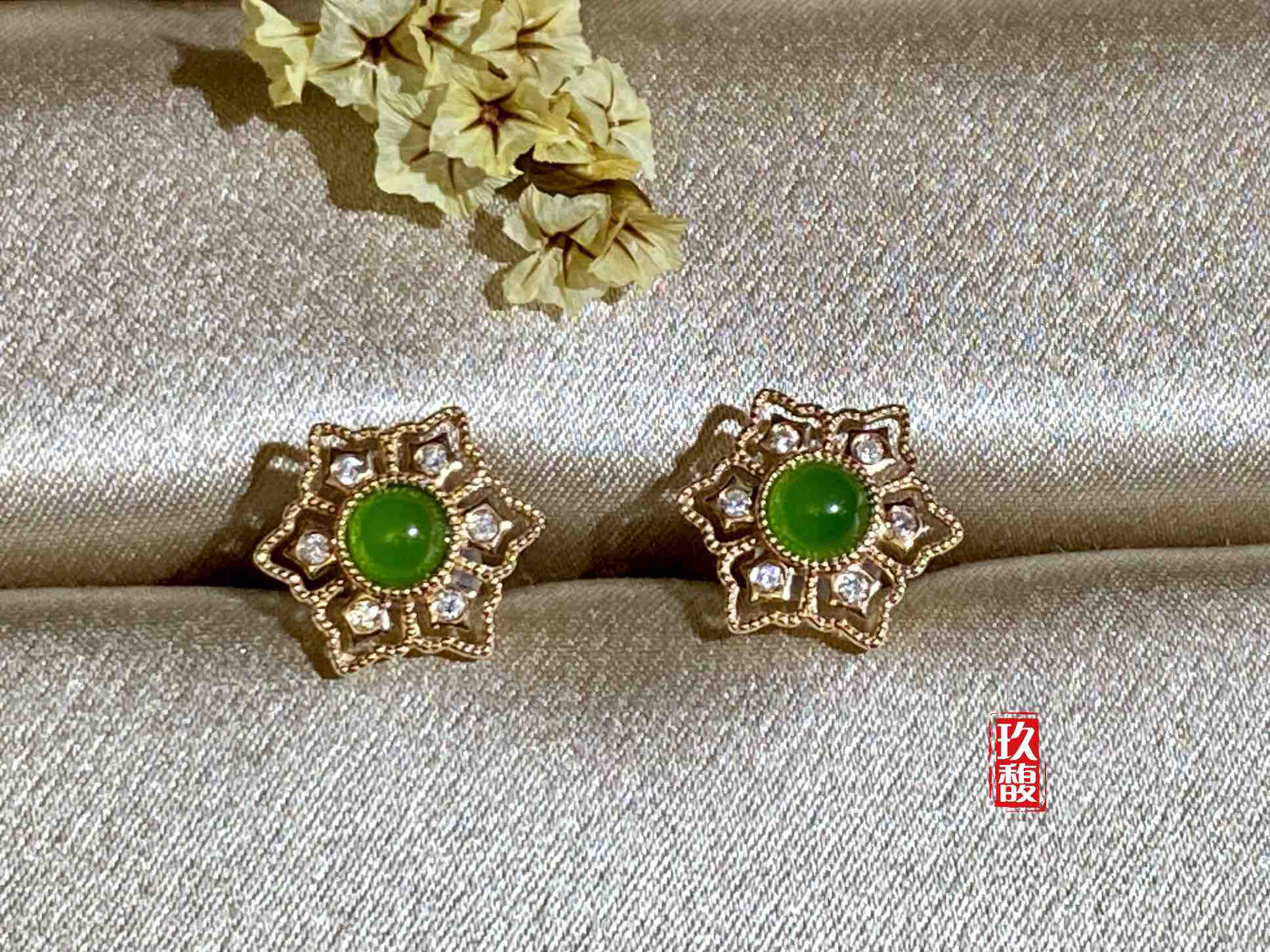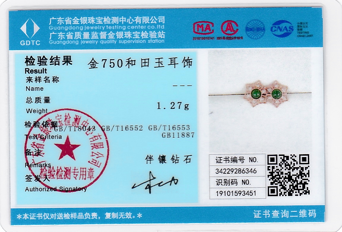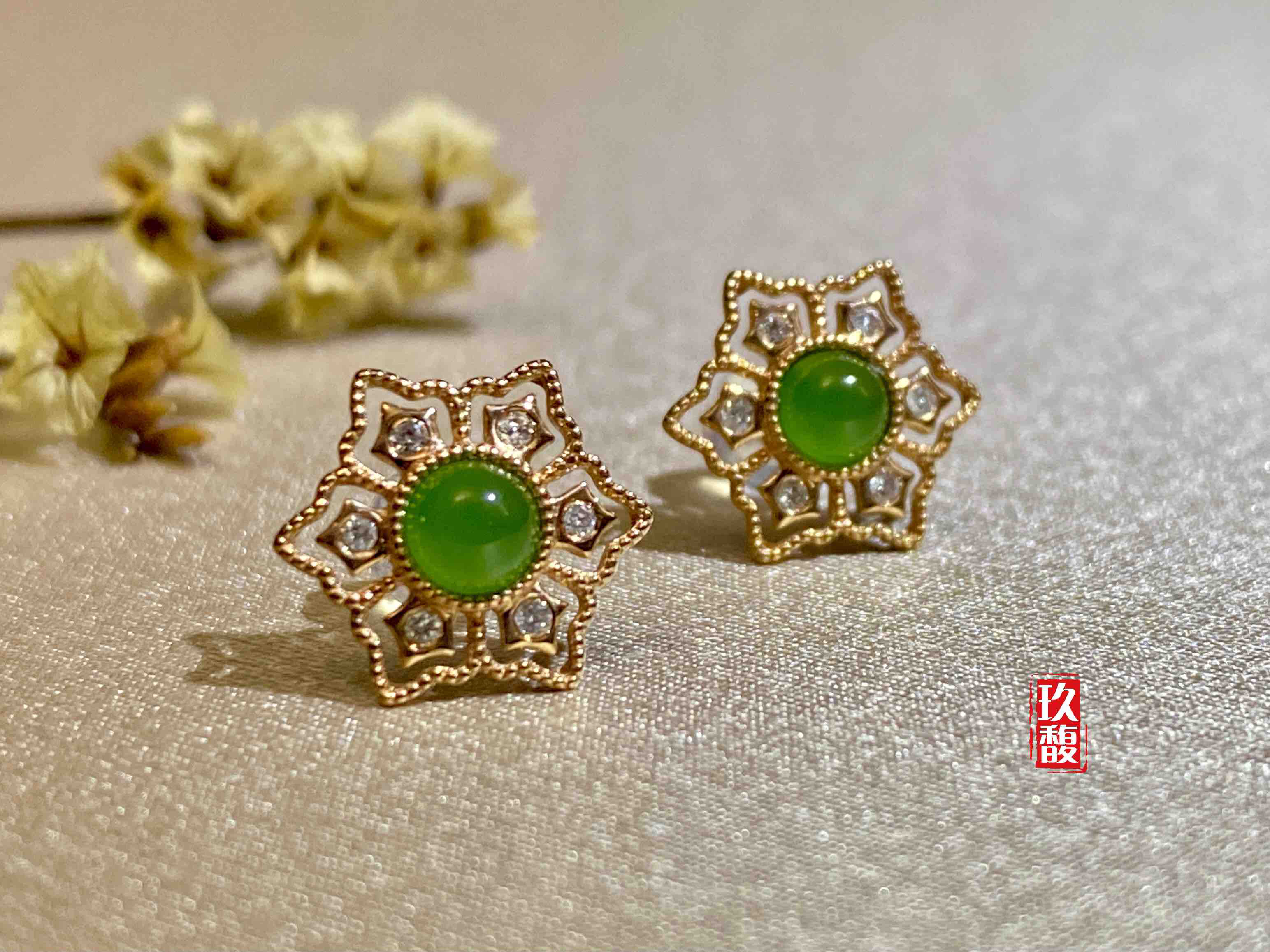 18K玫瑰金和田玉(碧玉)耳饰