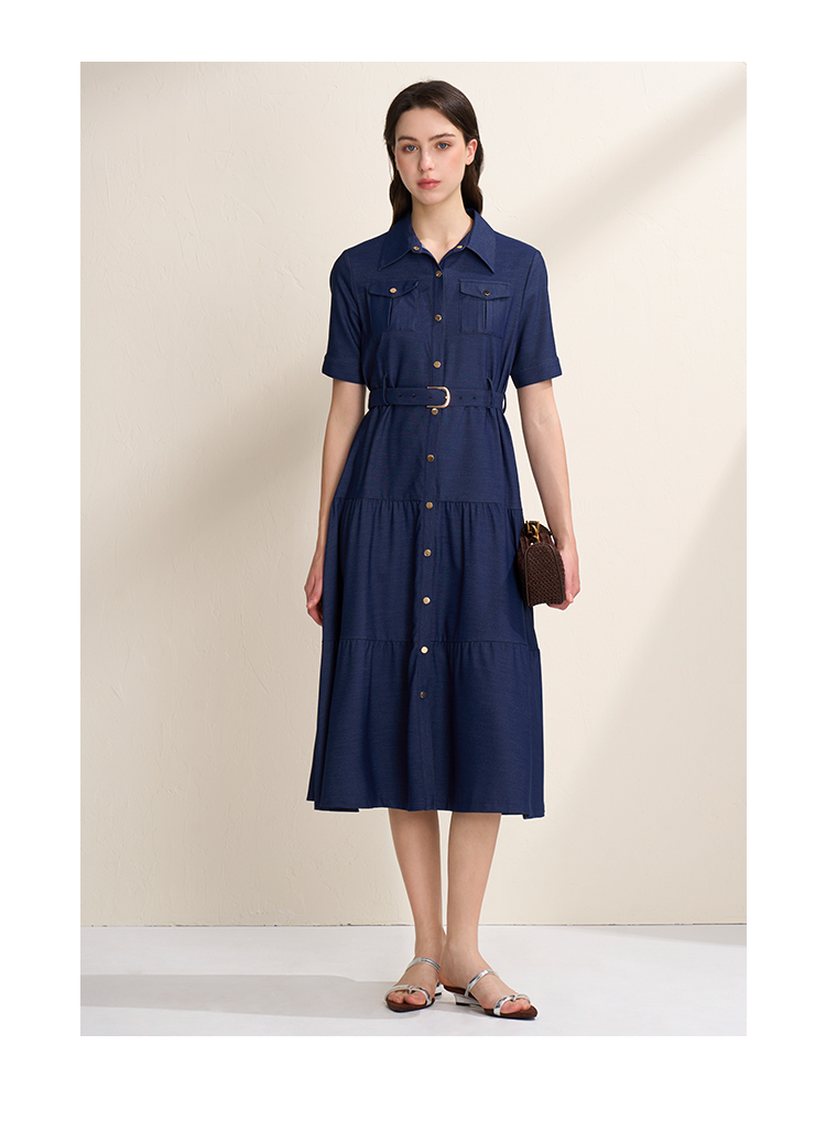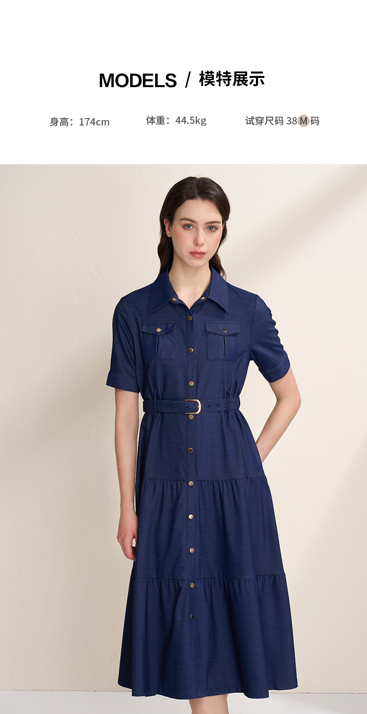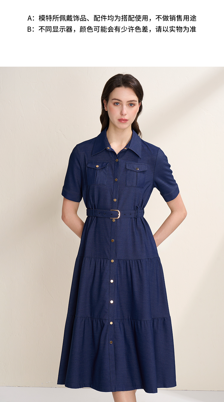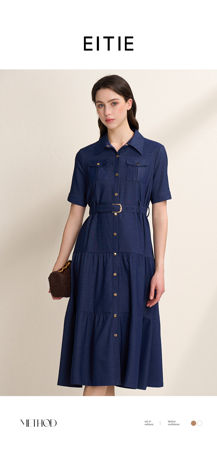 EITIE爱特爱春季新款翻领绣花A字连衣裙中长款女A2007421