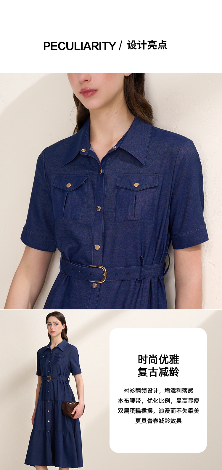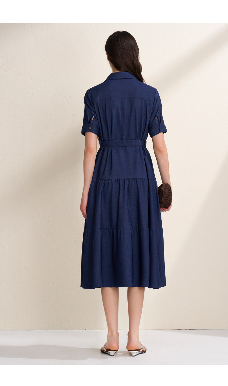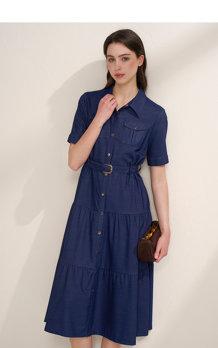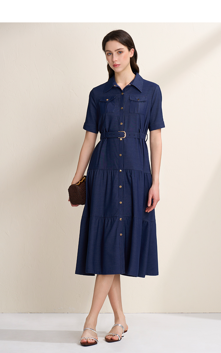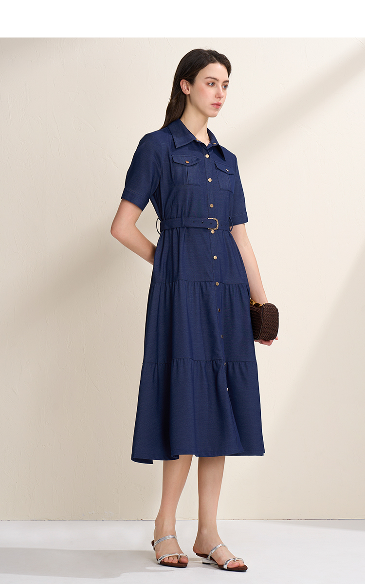 EITIE爱特爱春季新款翻领绣花A字连衣裙中长款女A2007421
