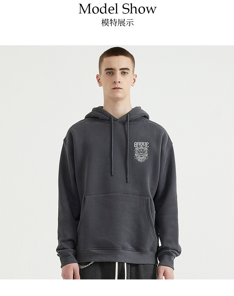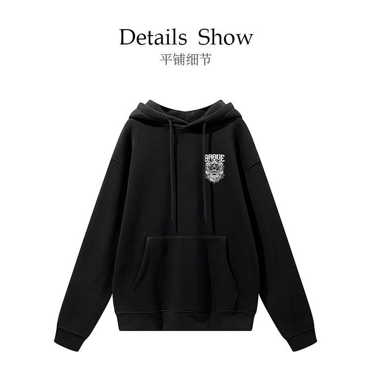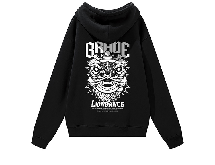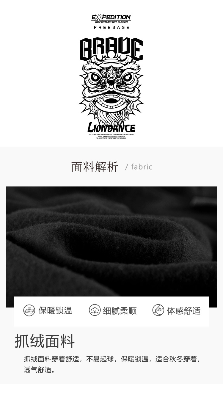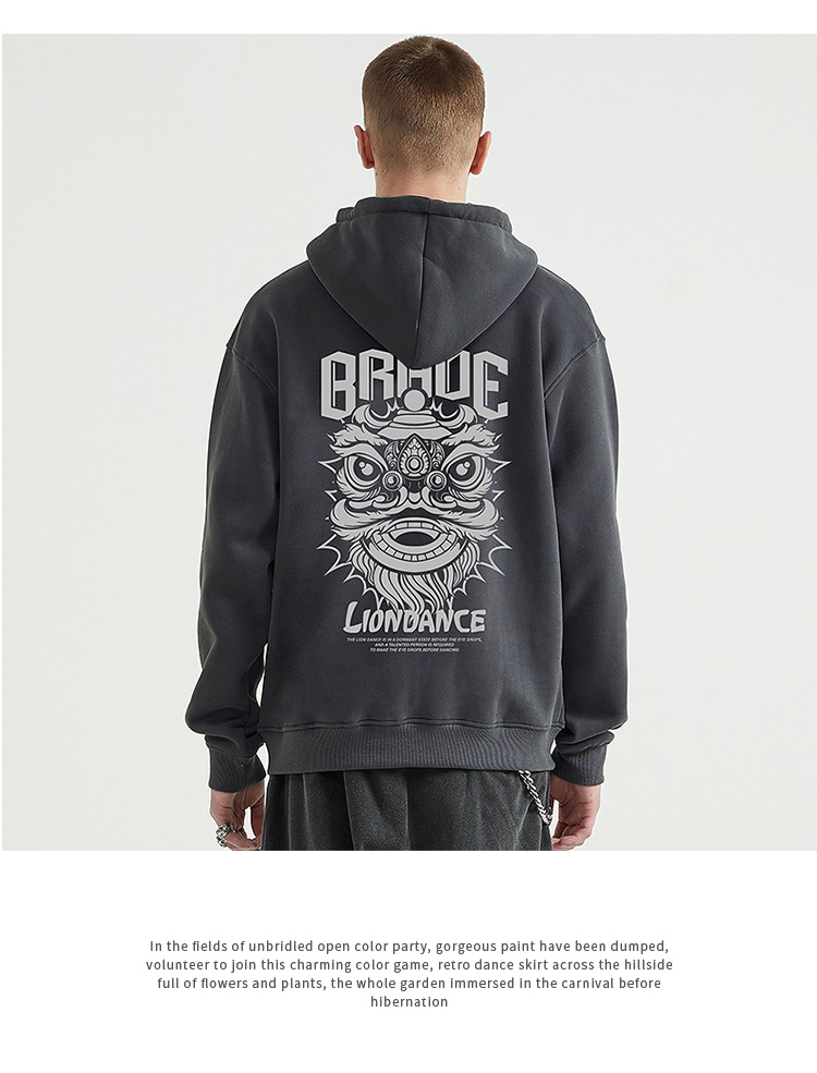 自由基地国潮舞狮潮流插画印花落肩款宽松秋冬抓绒卫衣男女情侣款 NMT-2196