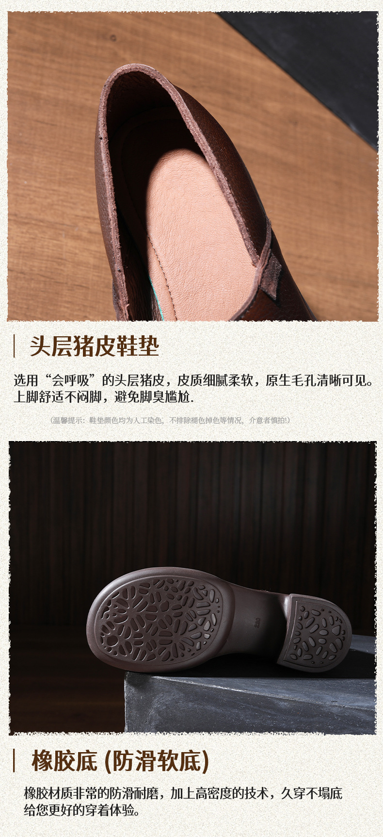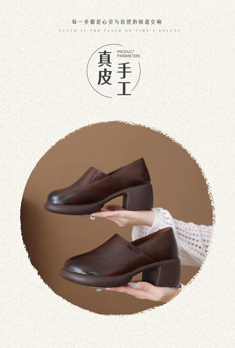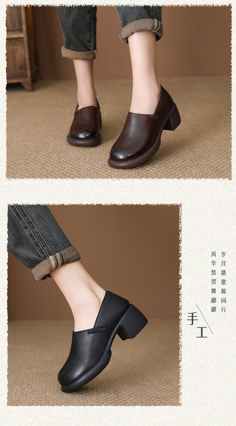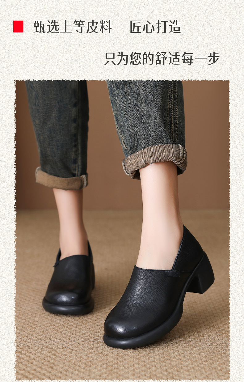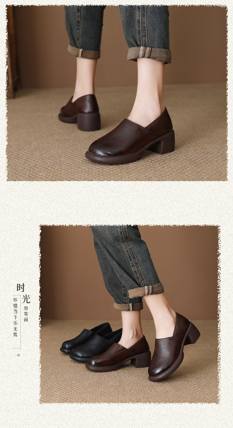 FR 85292乐福鞋复古圆头一脚蹬软皮粗跟单鞋 商品图4