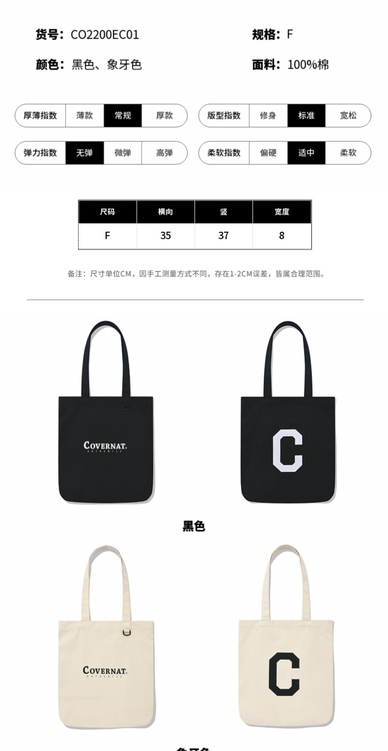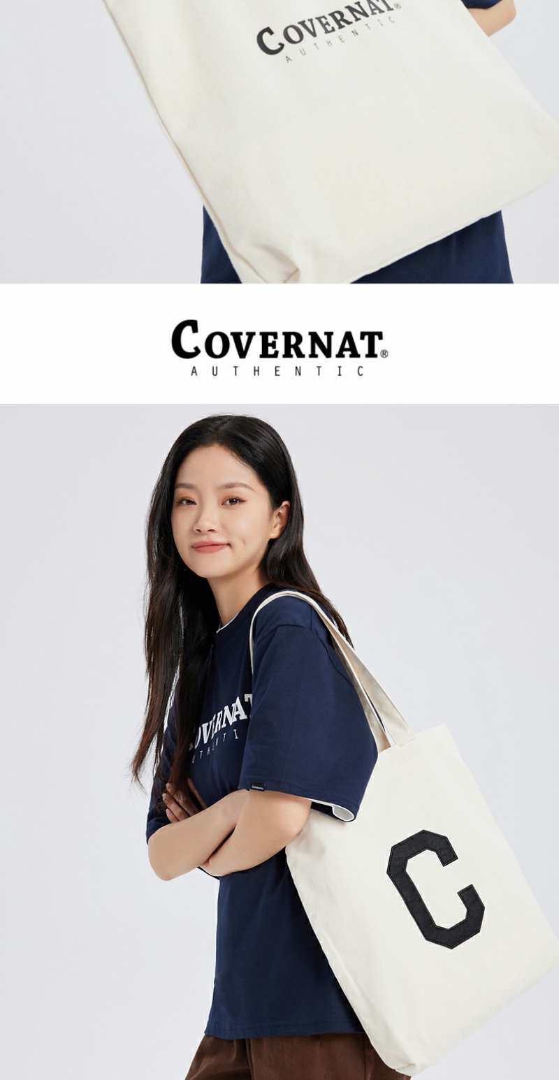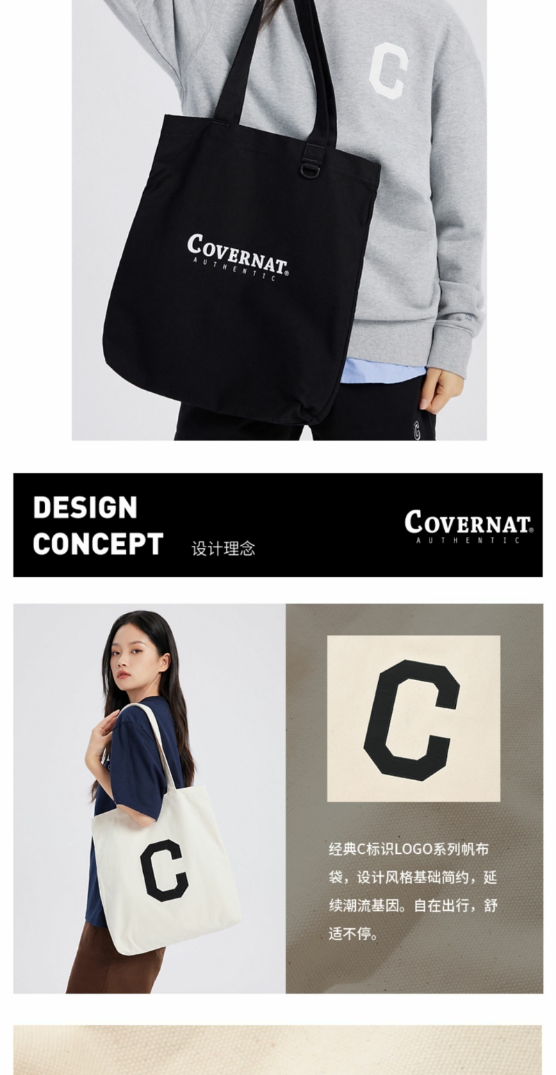 covernat韩国潮牌简约字母手提包经典款基础帆布包刺绣单肩包CO2200EC01