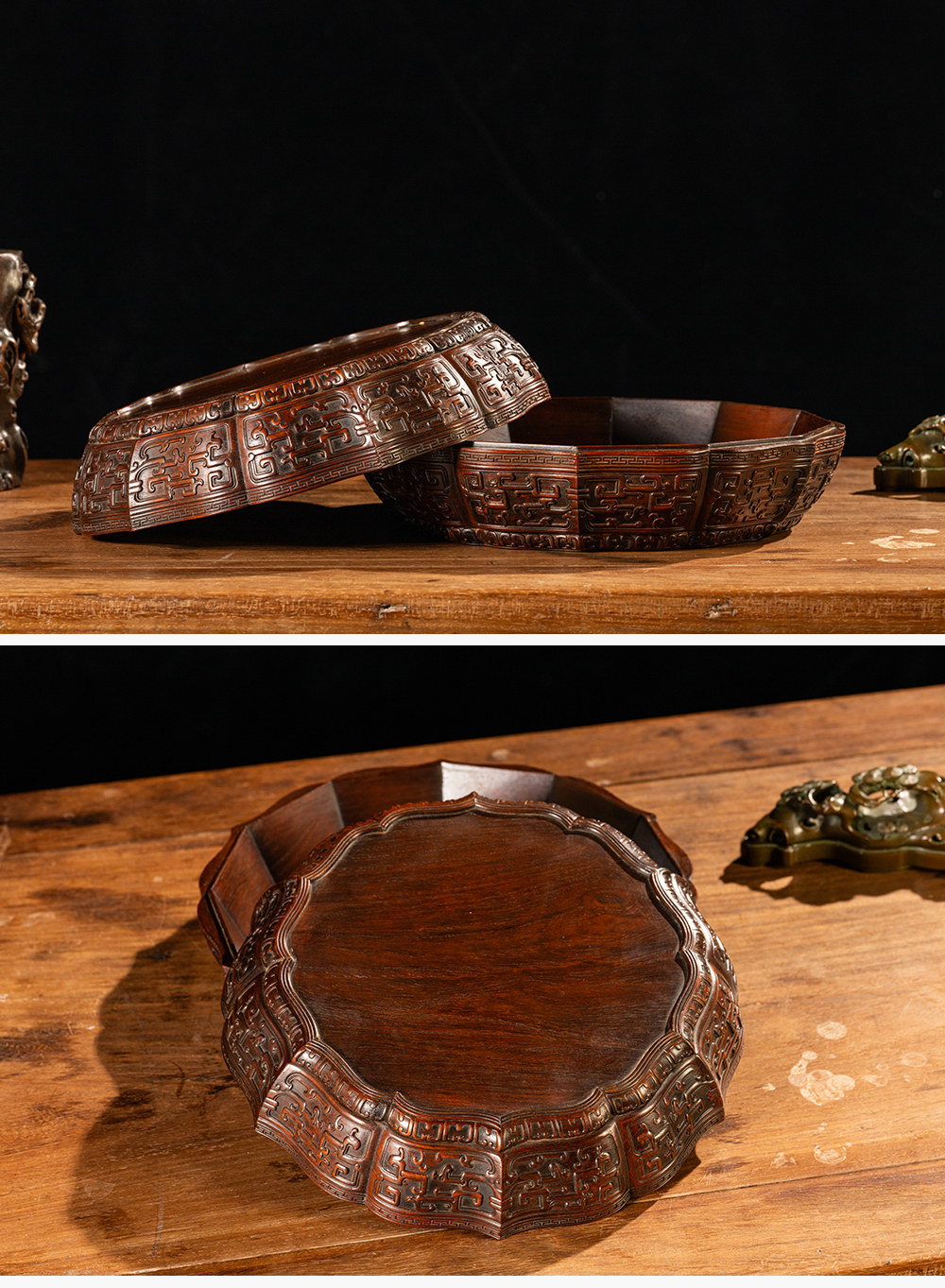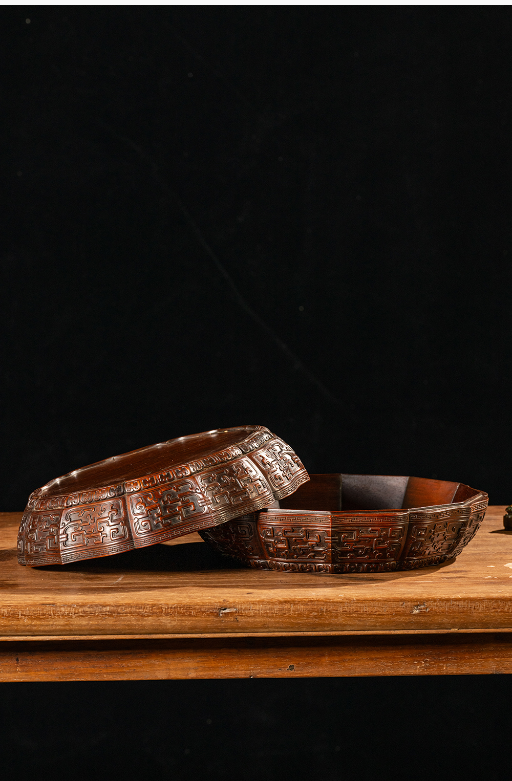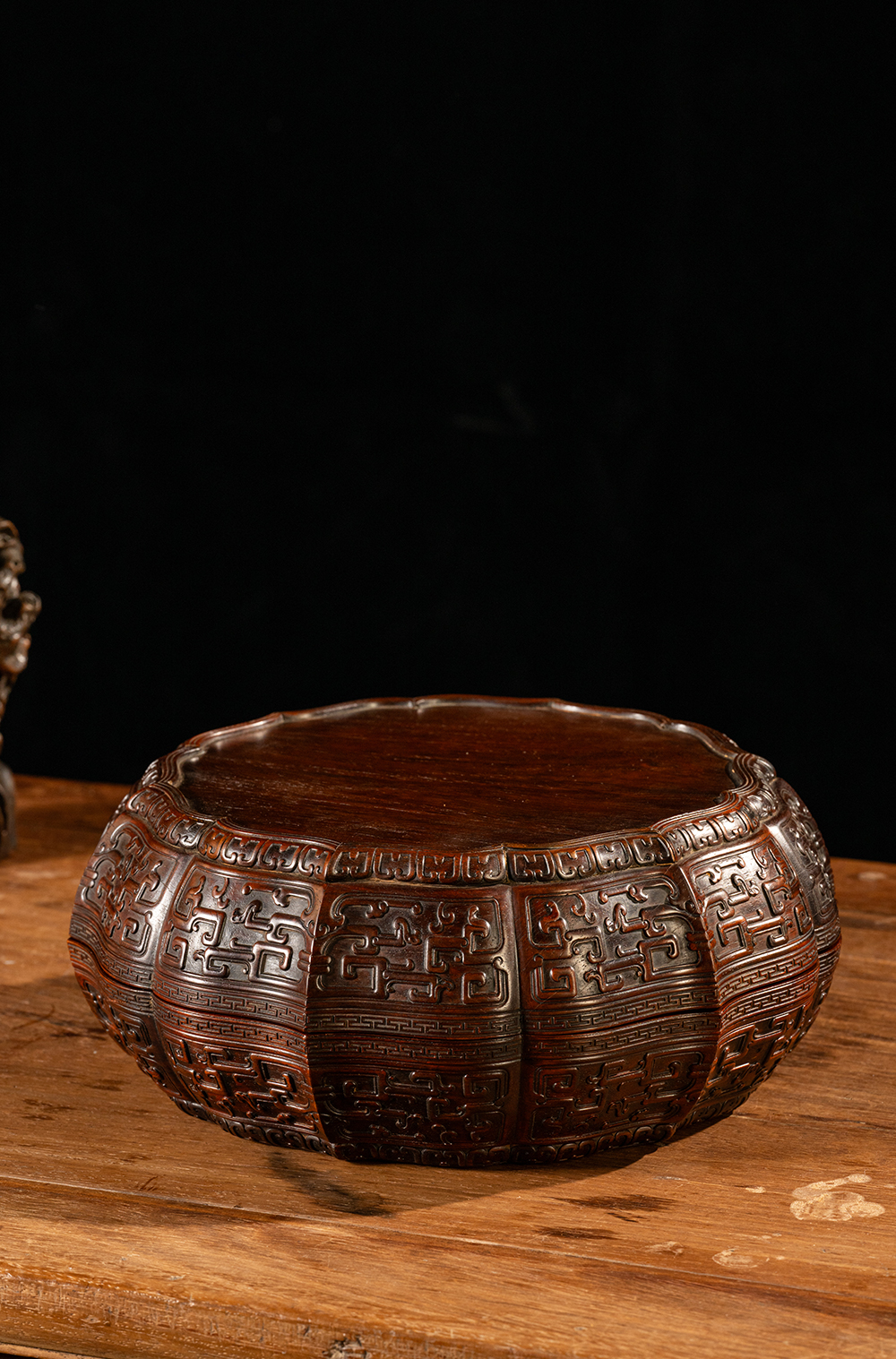 清 黄花梨镶竹丝编四抹门亮格柜摆件