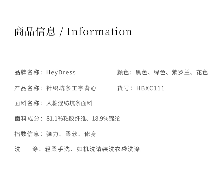【周四精选福利】HeyDress工字吊带背心女夏季坑条修身无袖挖肩百搭外穿打底上衣
