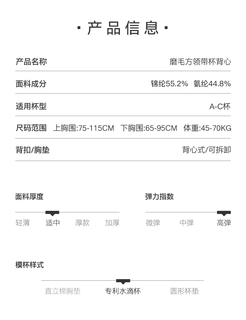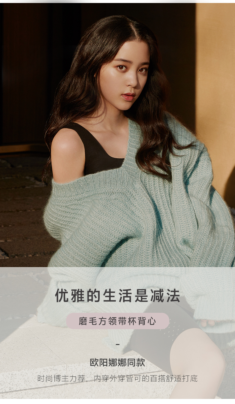 Ubras欧阳娜娜同款新品方领带胸垫毛背心打底舒适