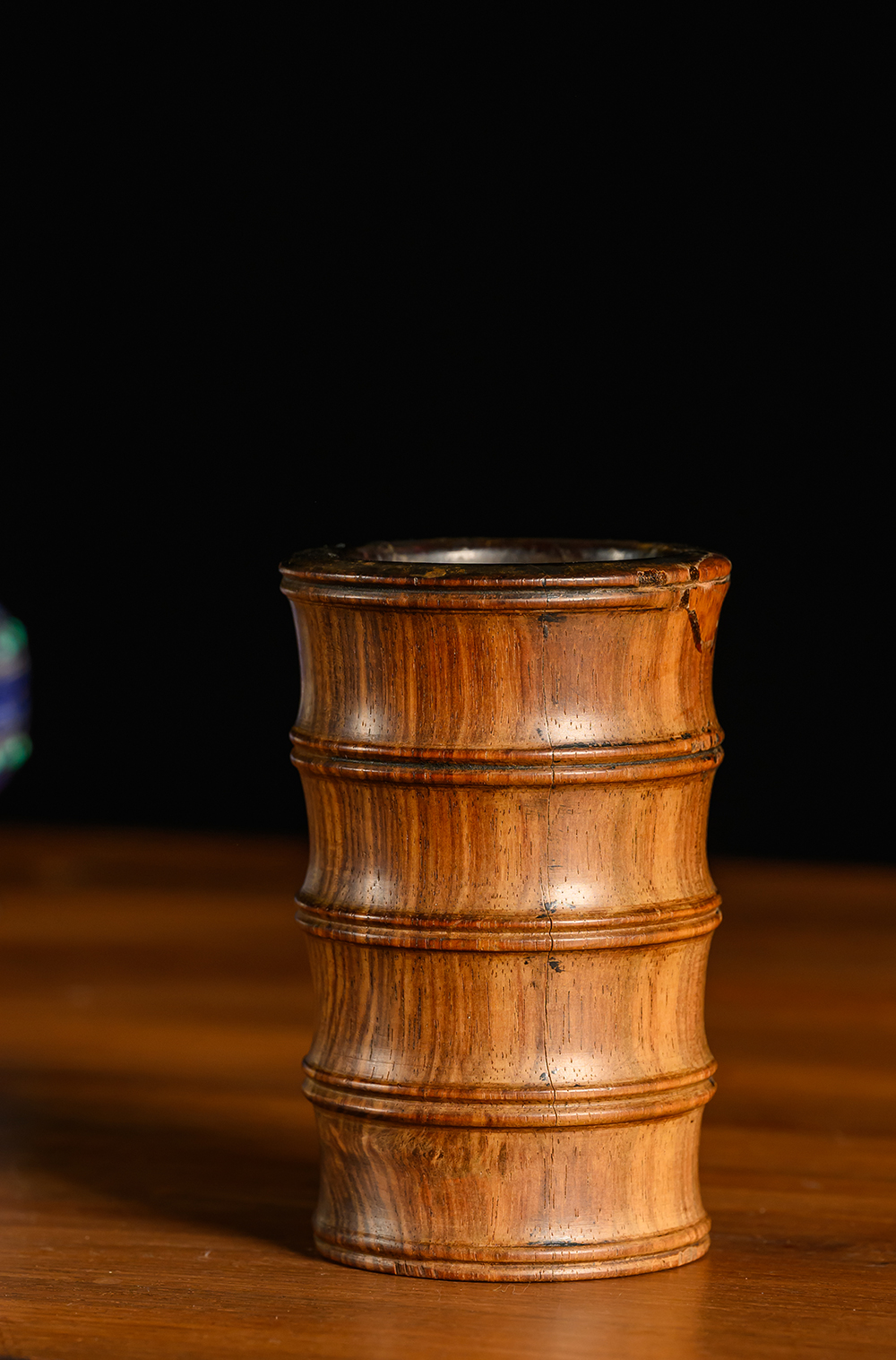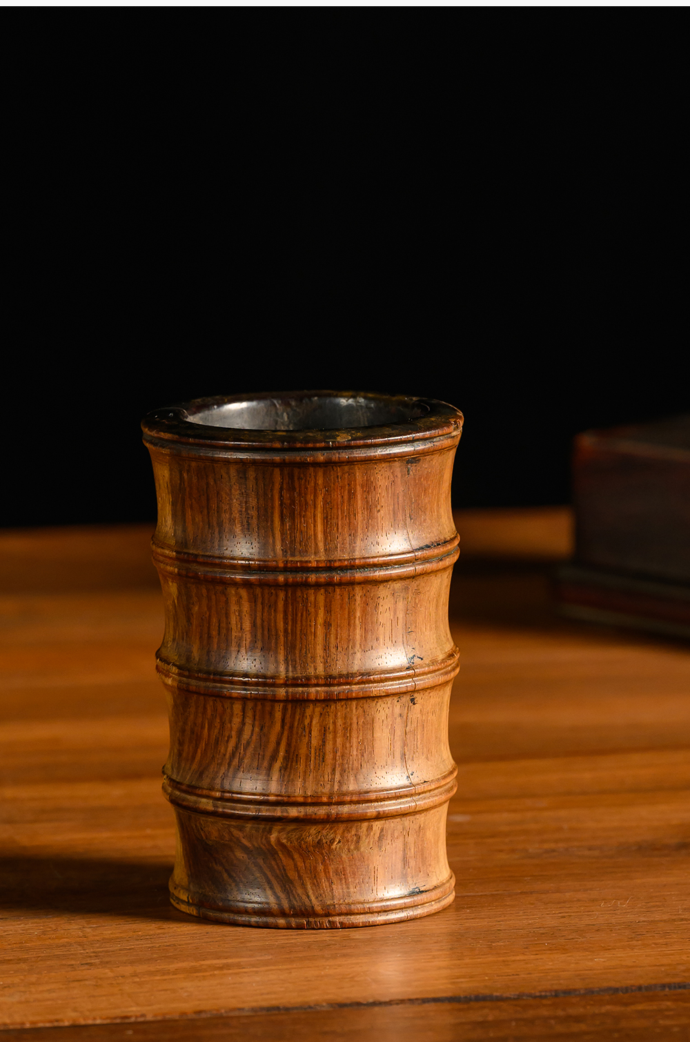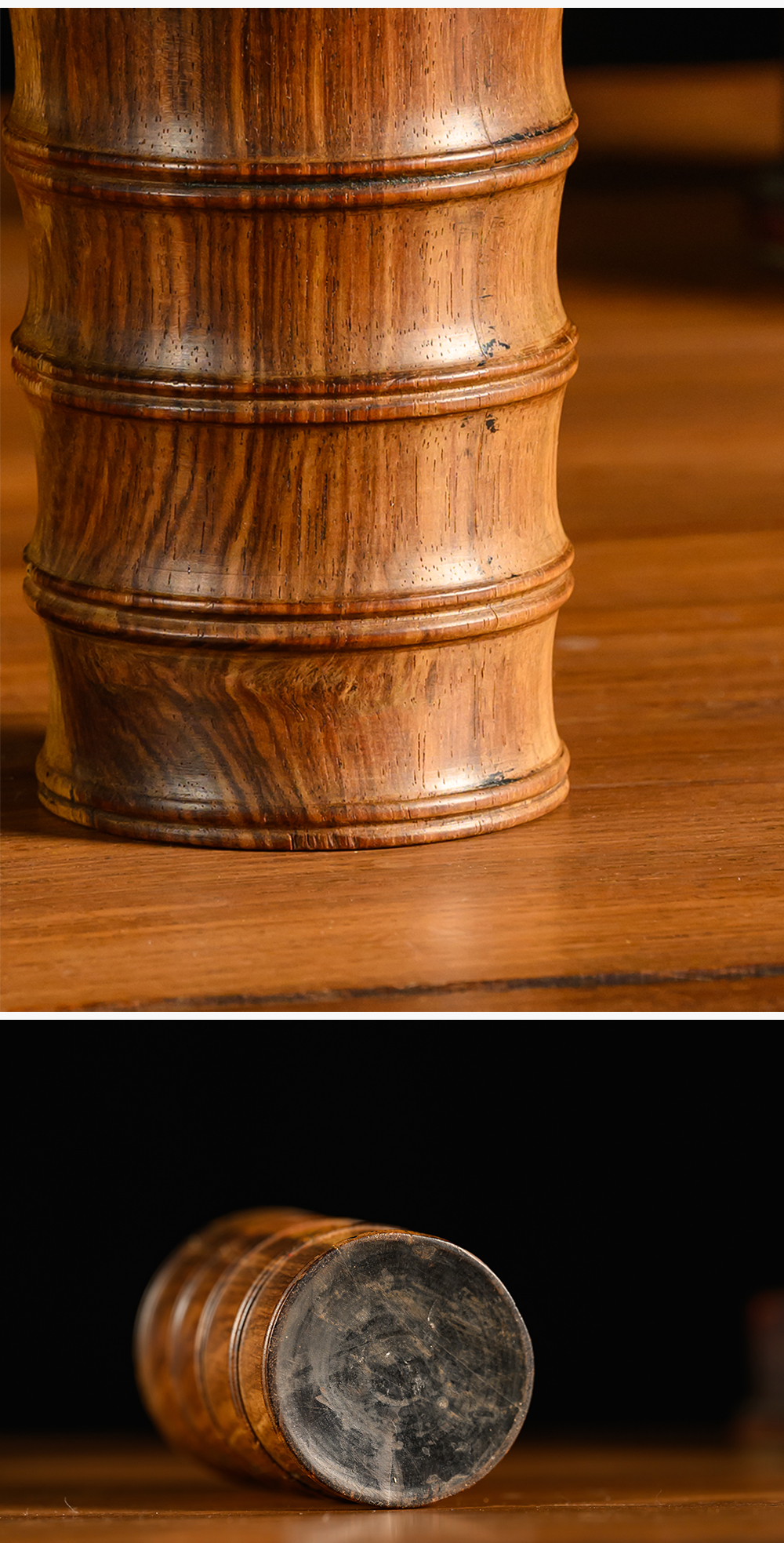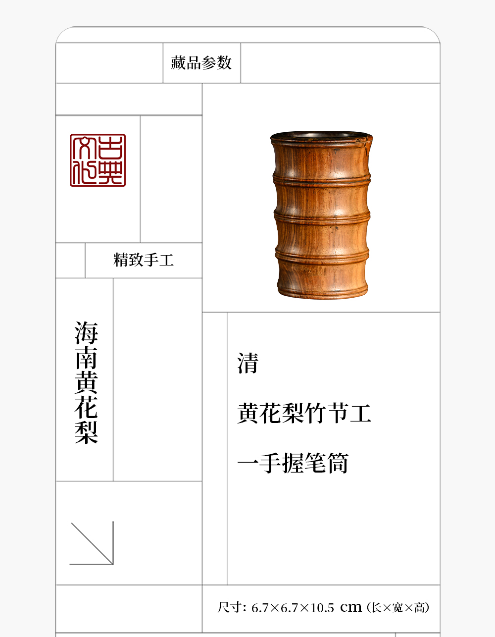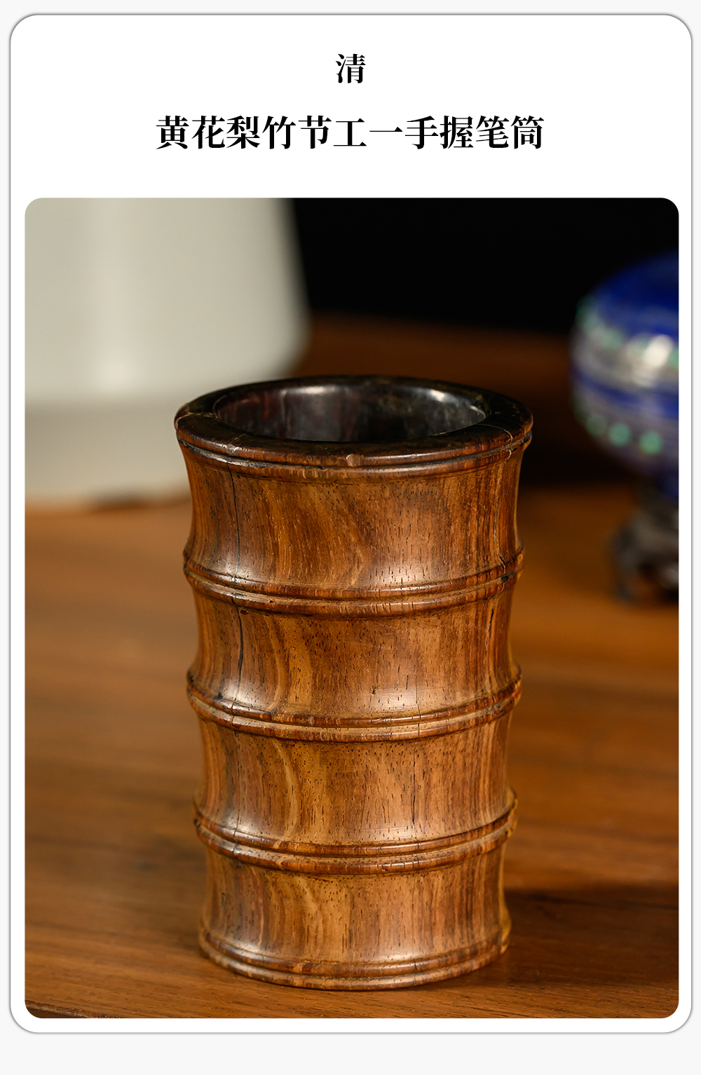 清 黄花梨竹节工一手握笔筒