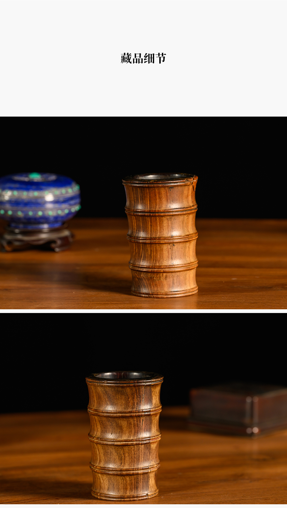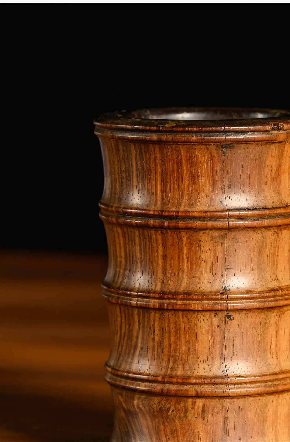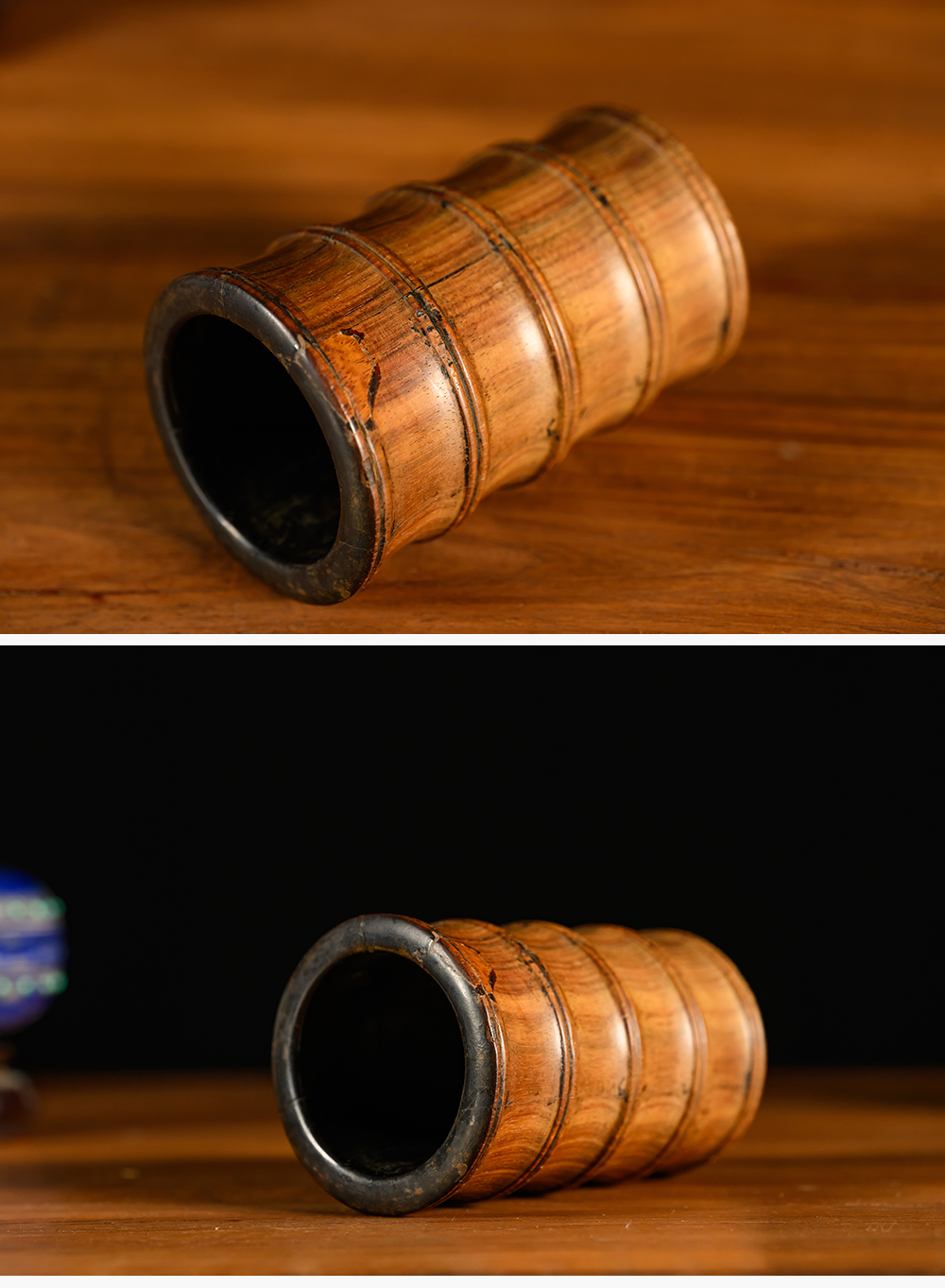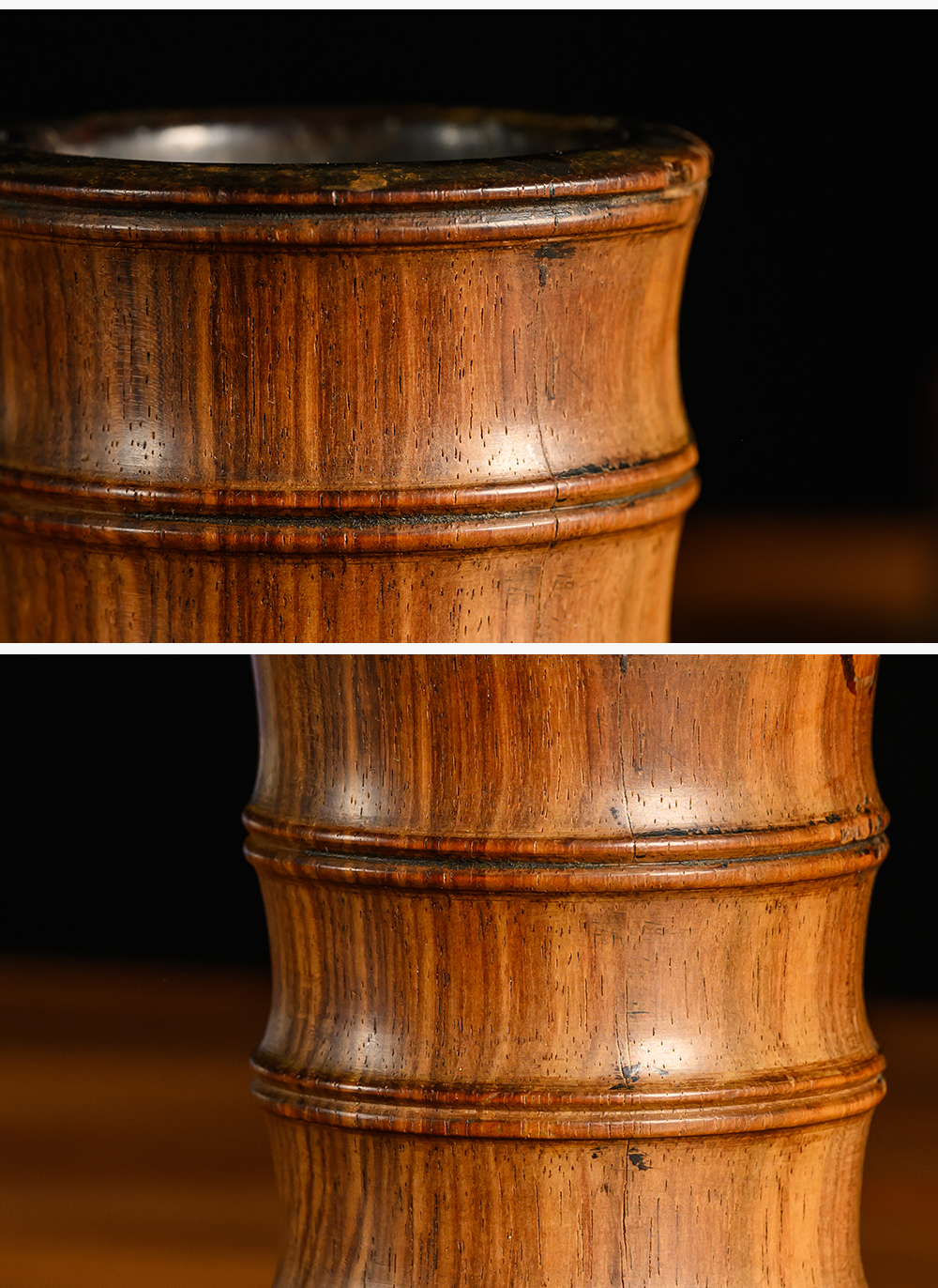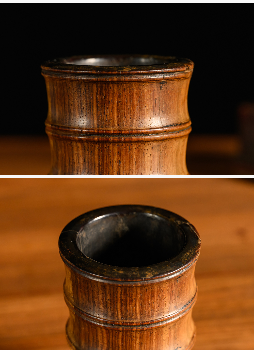 清 黄花梨竹节工一手握笔筒