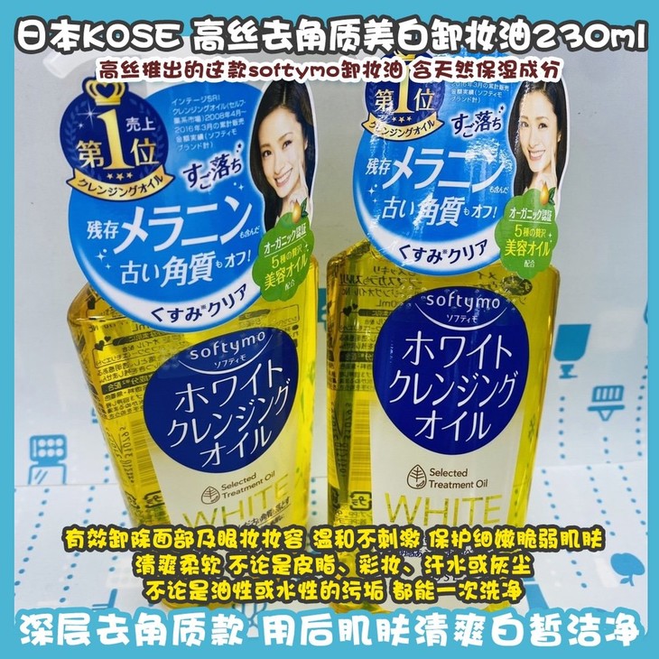 👑日本KOSE 高丝去角质美白卸妆油230ml 👍含天然植萃保湿成分💦, ✅有效卸除面部及眼妆妆容,温和不刺激,保护细嫩脆弱肌肤,清爽柔软🍃。 ✅不论是皮脂、彩妆、汗水或灰尘,不论是油性或水性的污垢,都能一次洗净✔。 ✨#深层去角质款,能快速卸除面部彩妆 ✨还有去粉刺和角质、控制污垢以及收缩毛孔的效果,用后肌肤清爽白皙洁净。