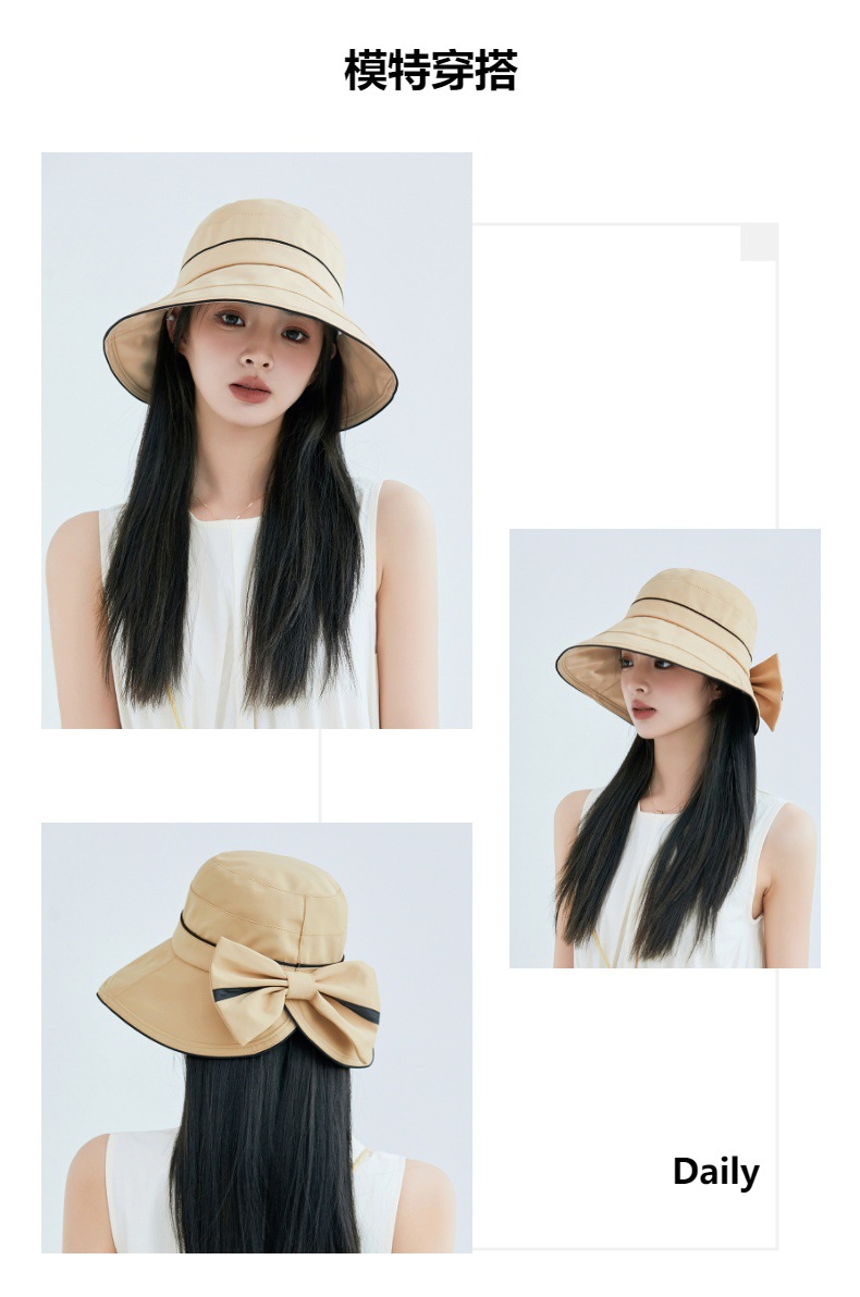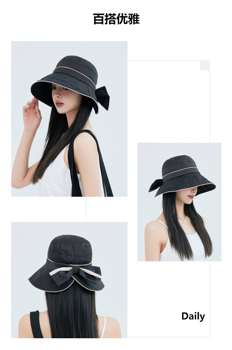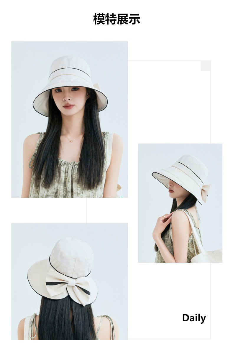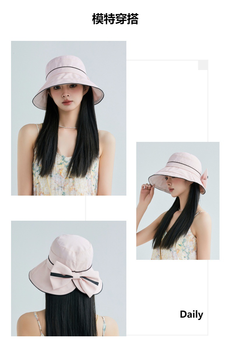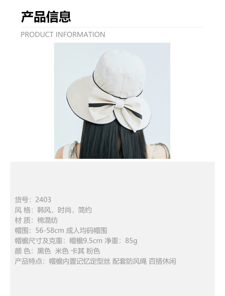 春夏遮阳帽韩国新款拼色蝴蝶结渔夫帽太阳帽JC-K2-M2403