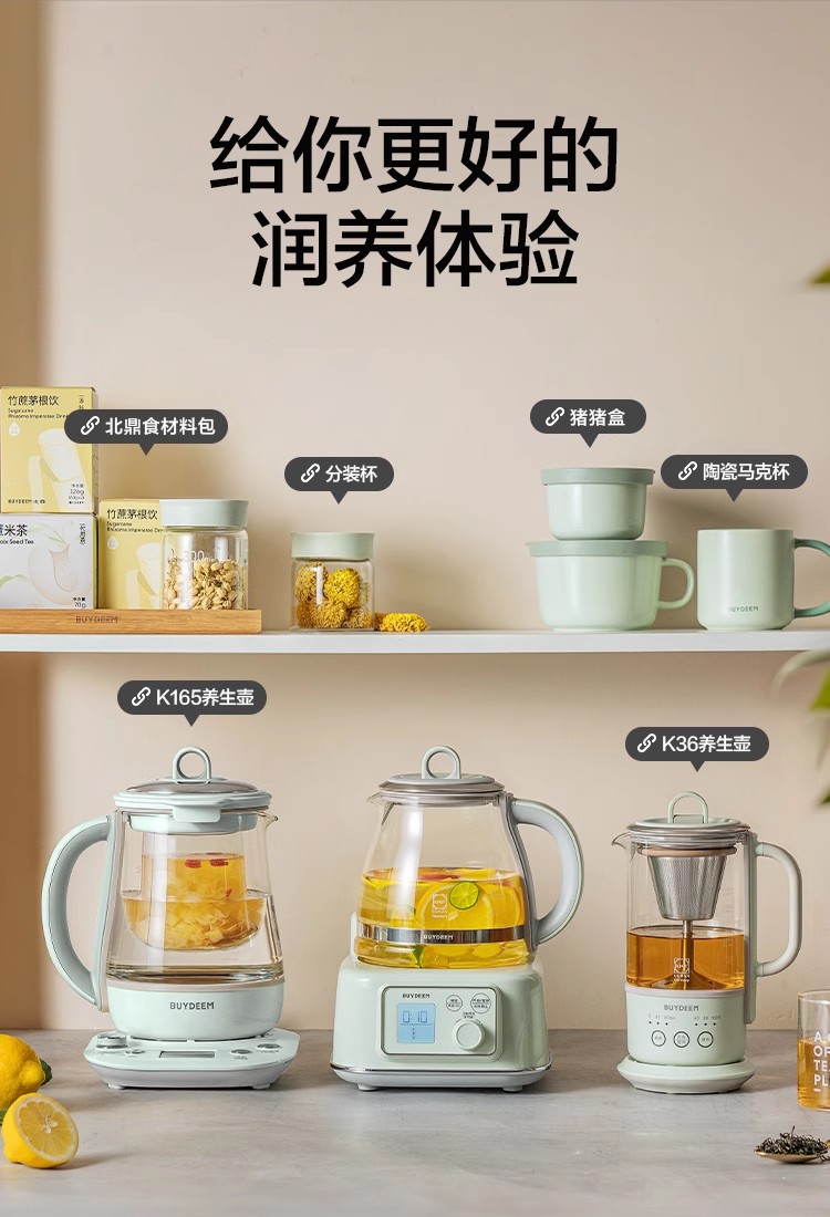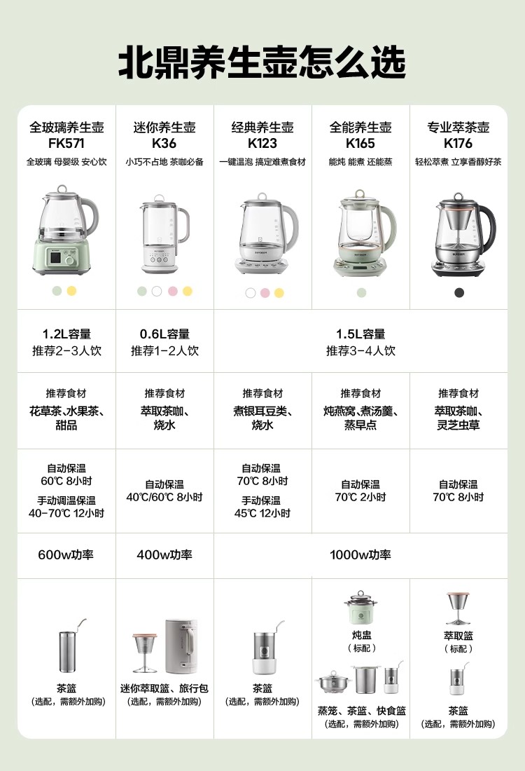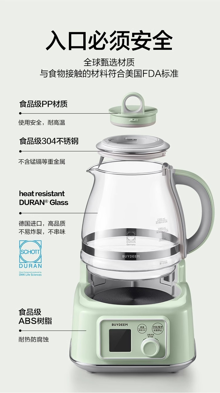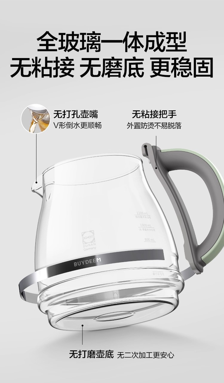 北鼎全玻璃养生壶FK571浅杉绿(1.2L)