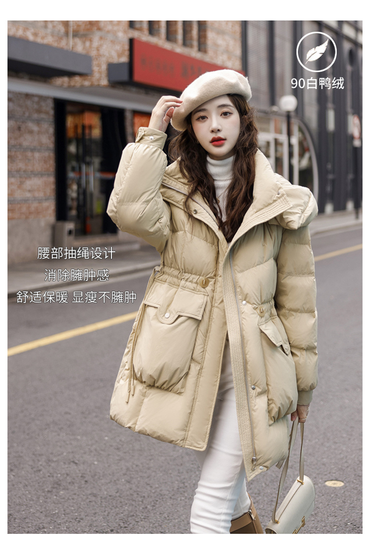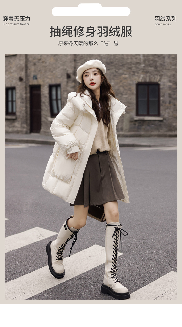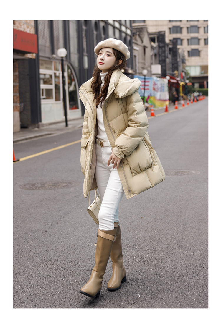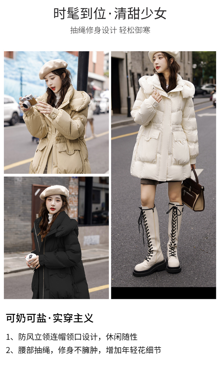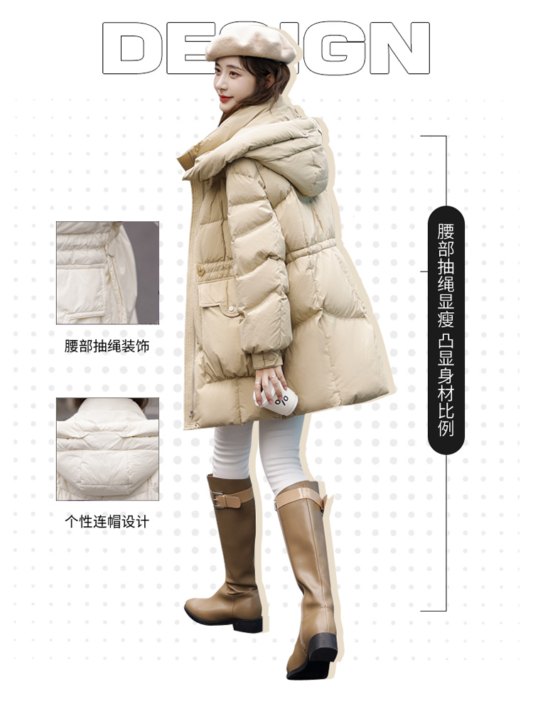 冬季新款,白鸭绒时尚潮流抽绳长款羽绒服HR-HJY23769