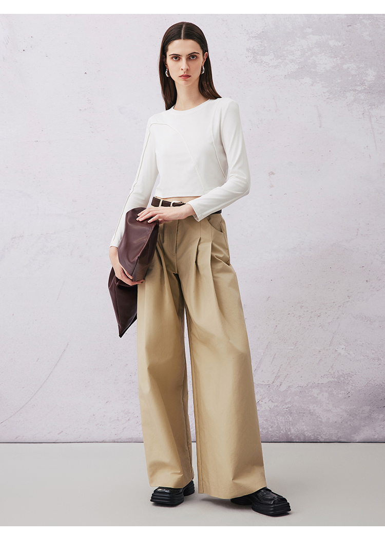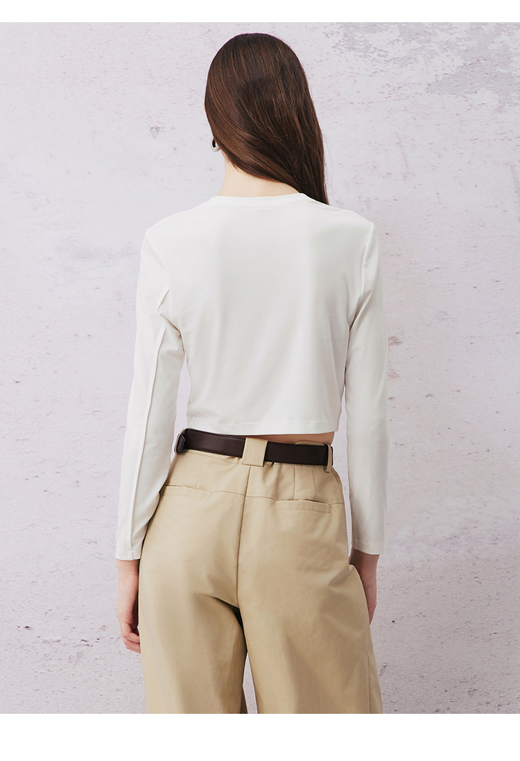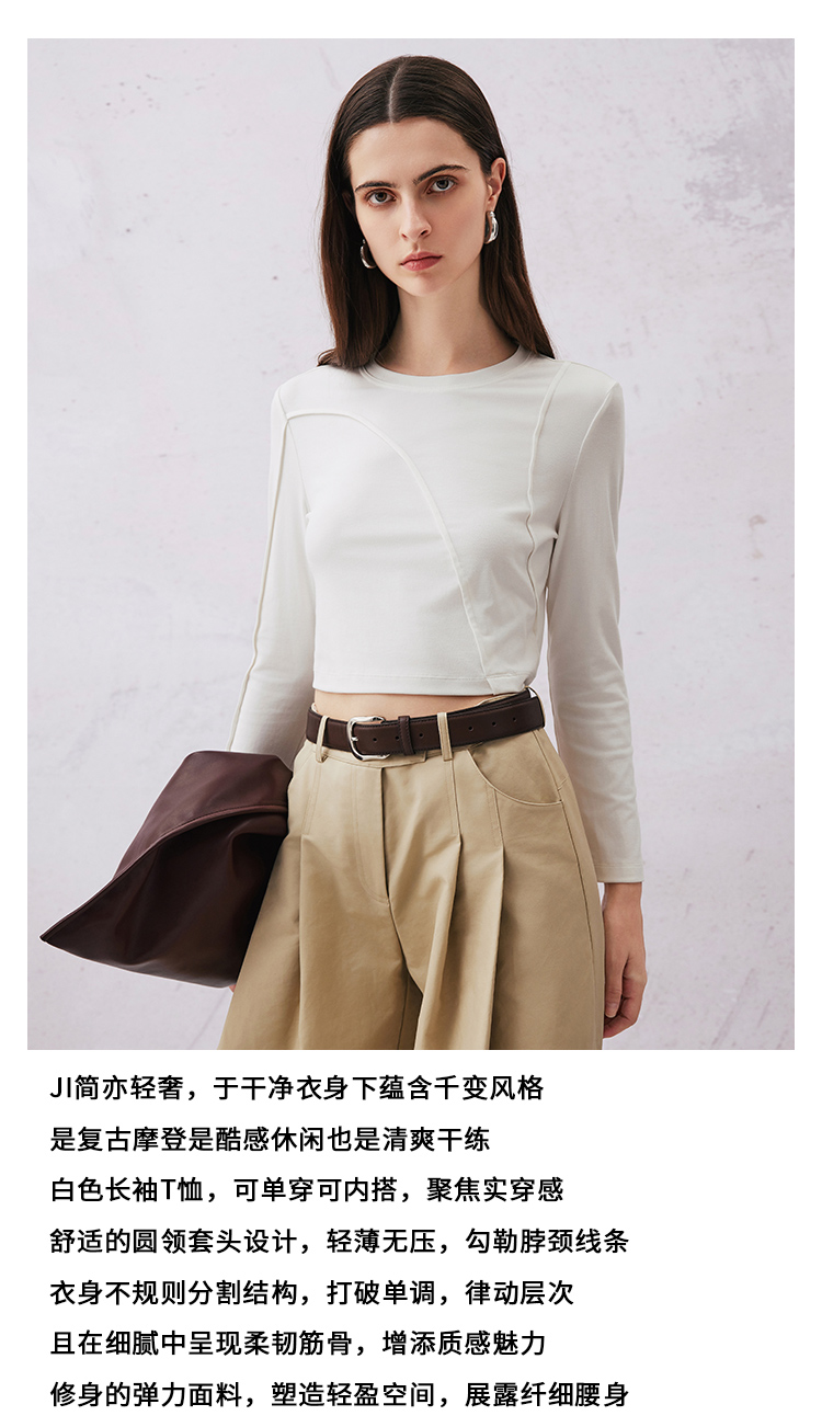 VIMAGE纬漫纪春季新款时尚百搭打底舒适圆领短款T恤女V2102709