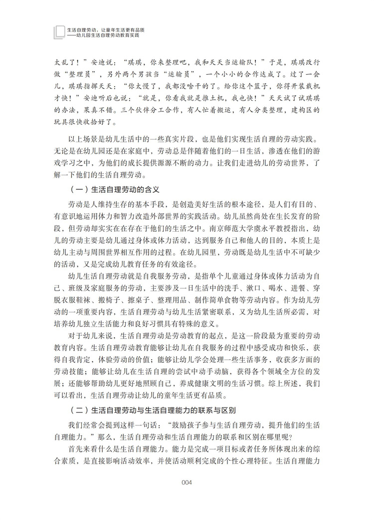 幼儿园劳动教育丛书 生活自理劳动 让童年生活更有品质 幼儿园生活自理劳动教育实践 江苏省十四五时期出版物出版规划项目