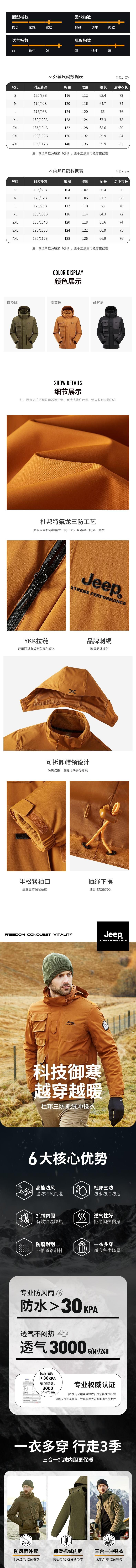 JEEP吉普 男冲锋衣抓绒两件套 J232094087