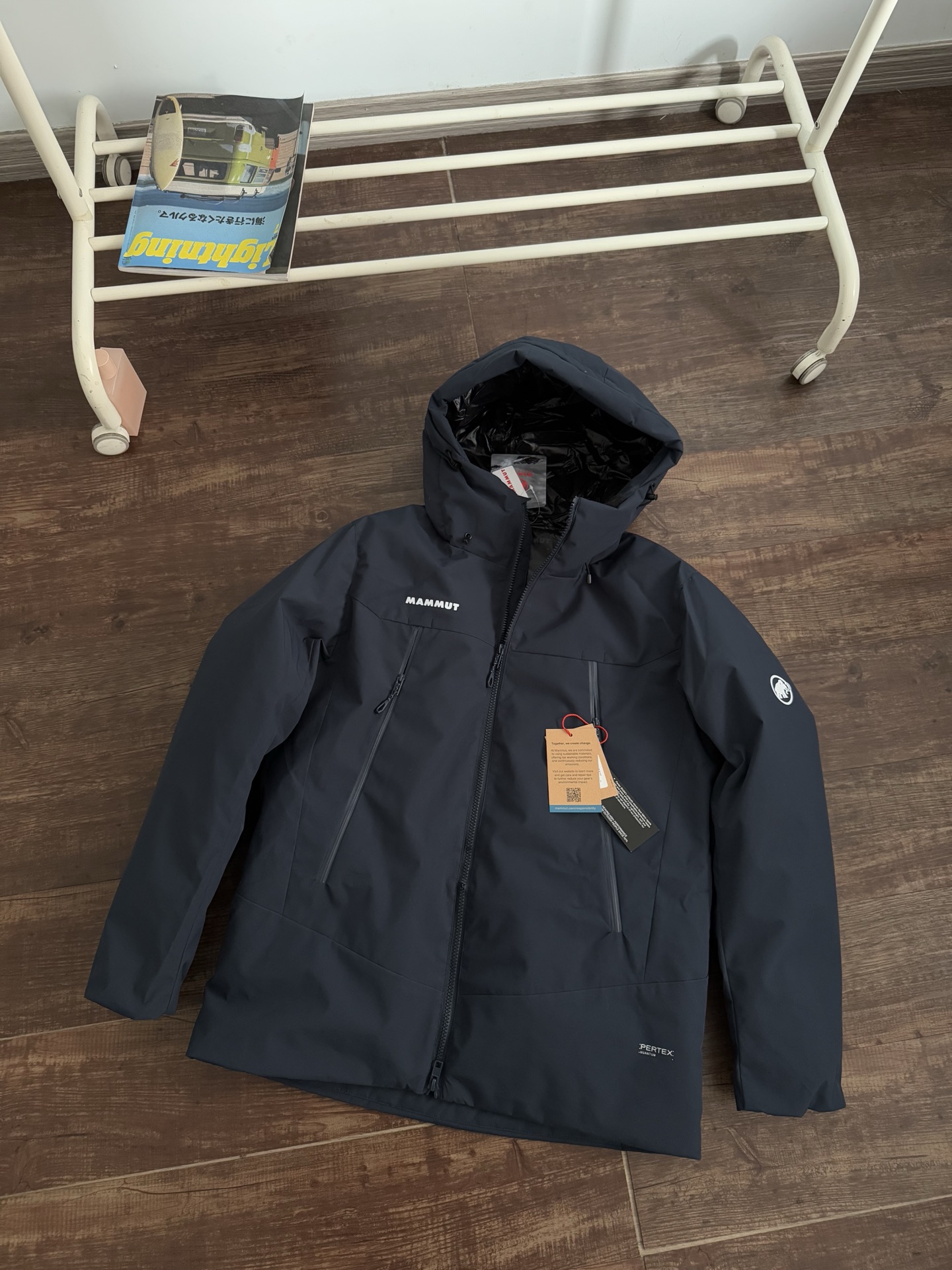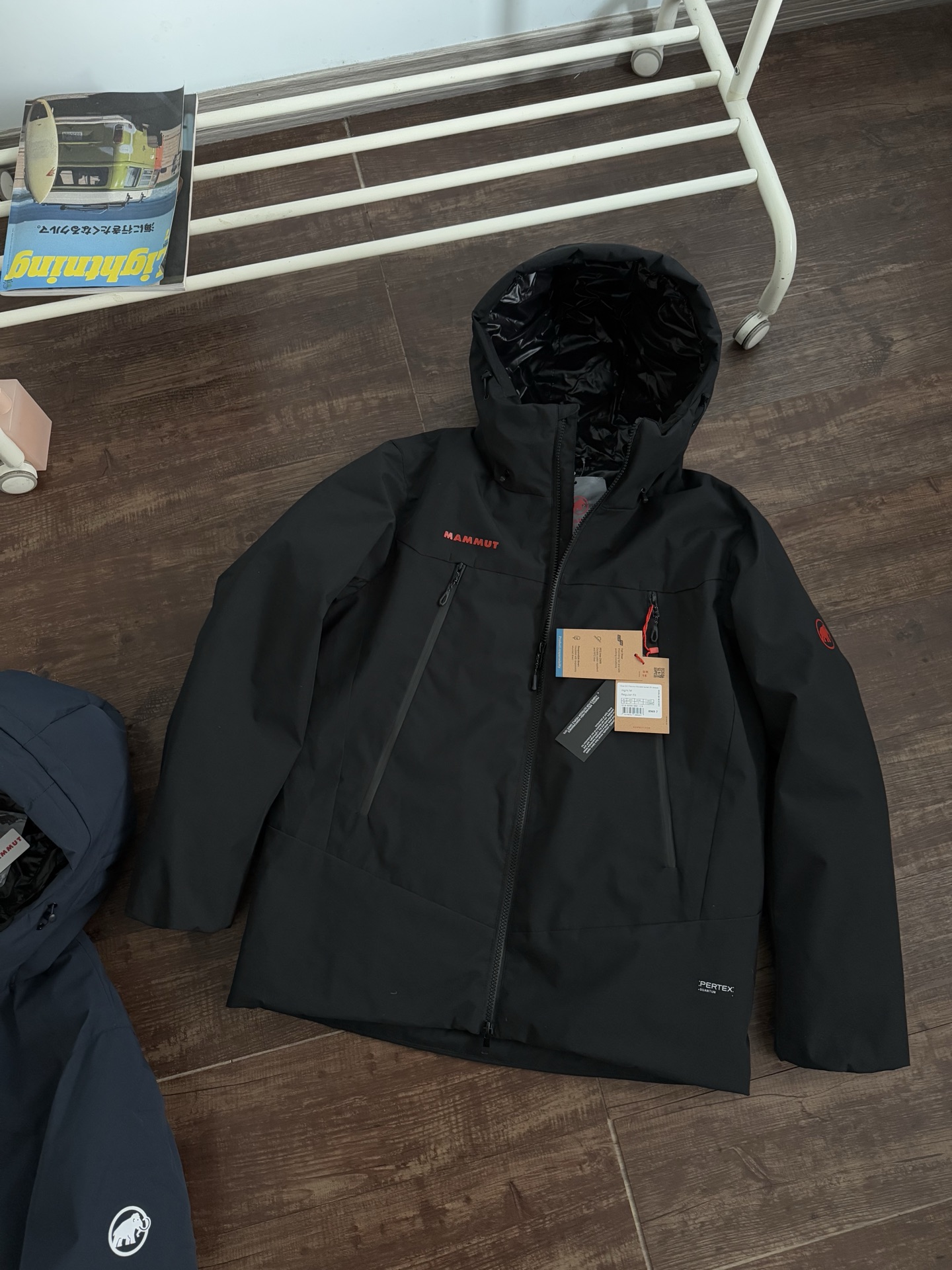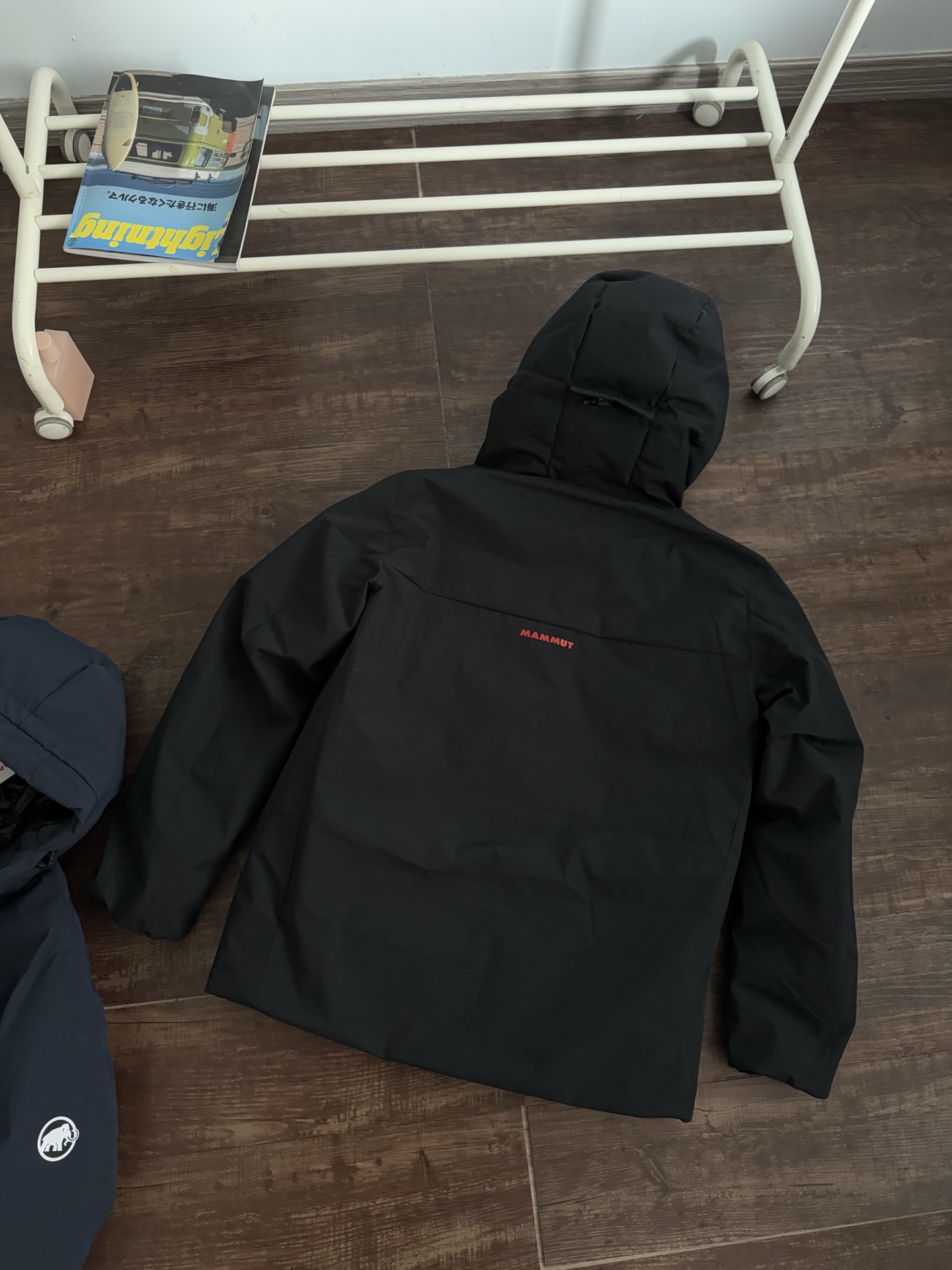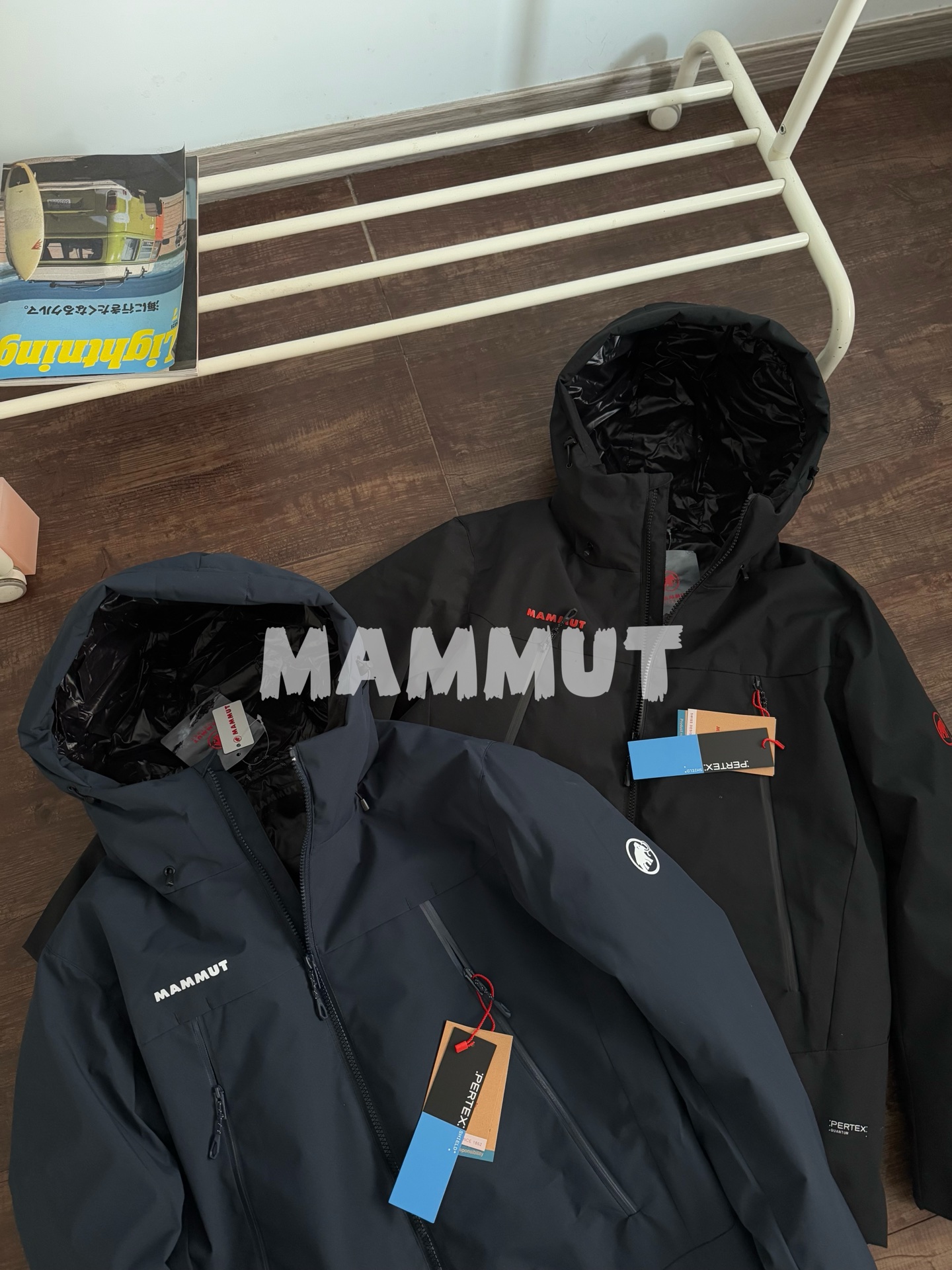 胸口“MAMMUT”红标+臂侧猛犸象Logo,