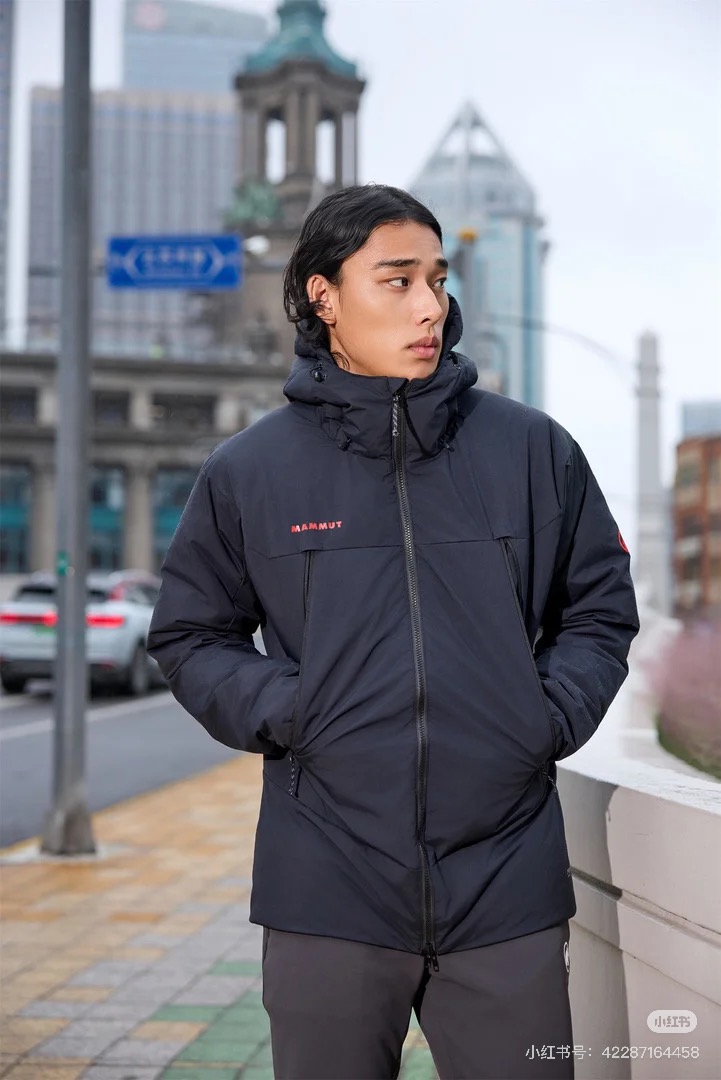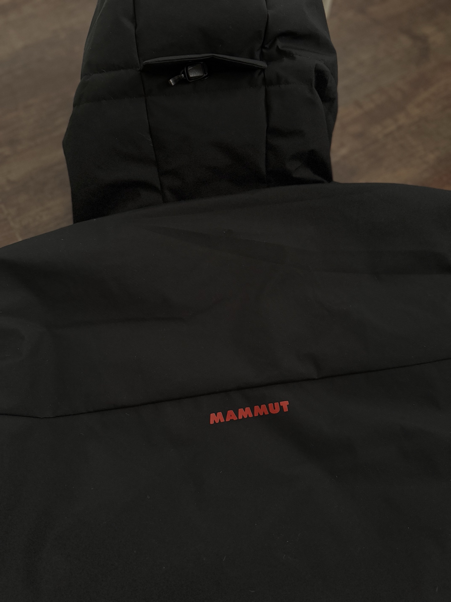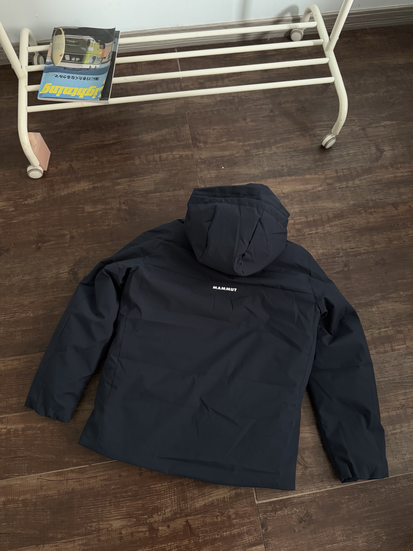 胸口“MAMMUT”红标+臂侧猛犸象Logo,