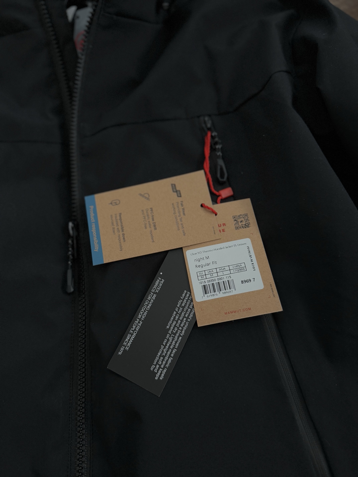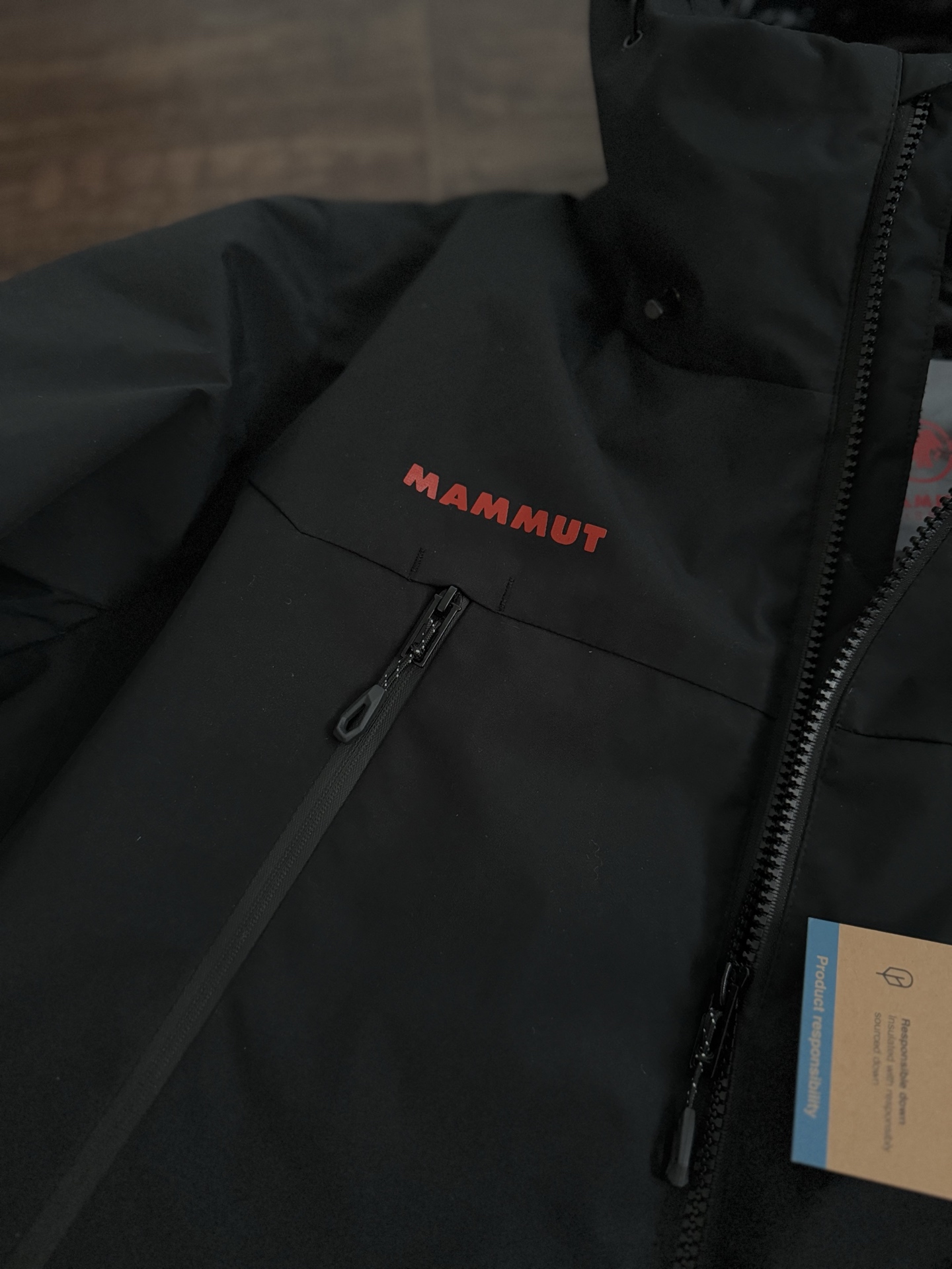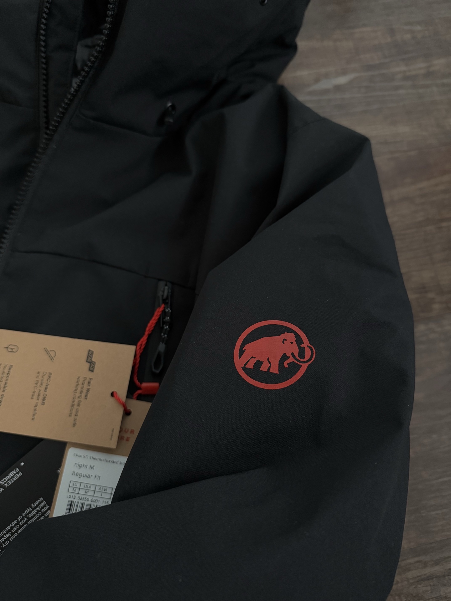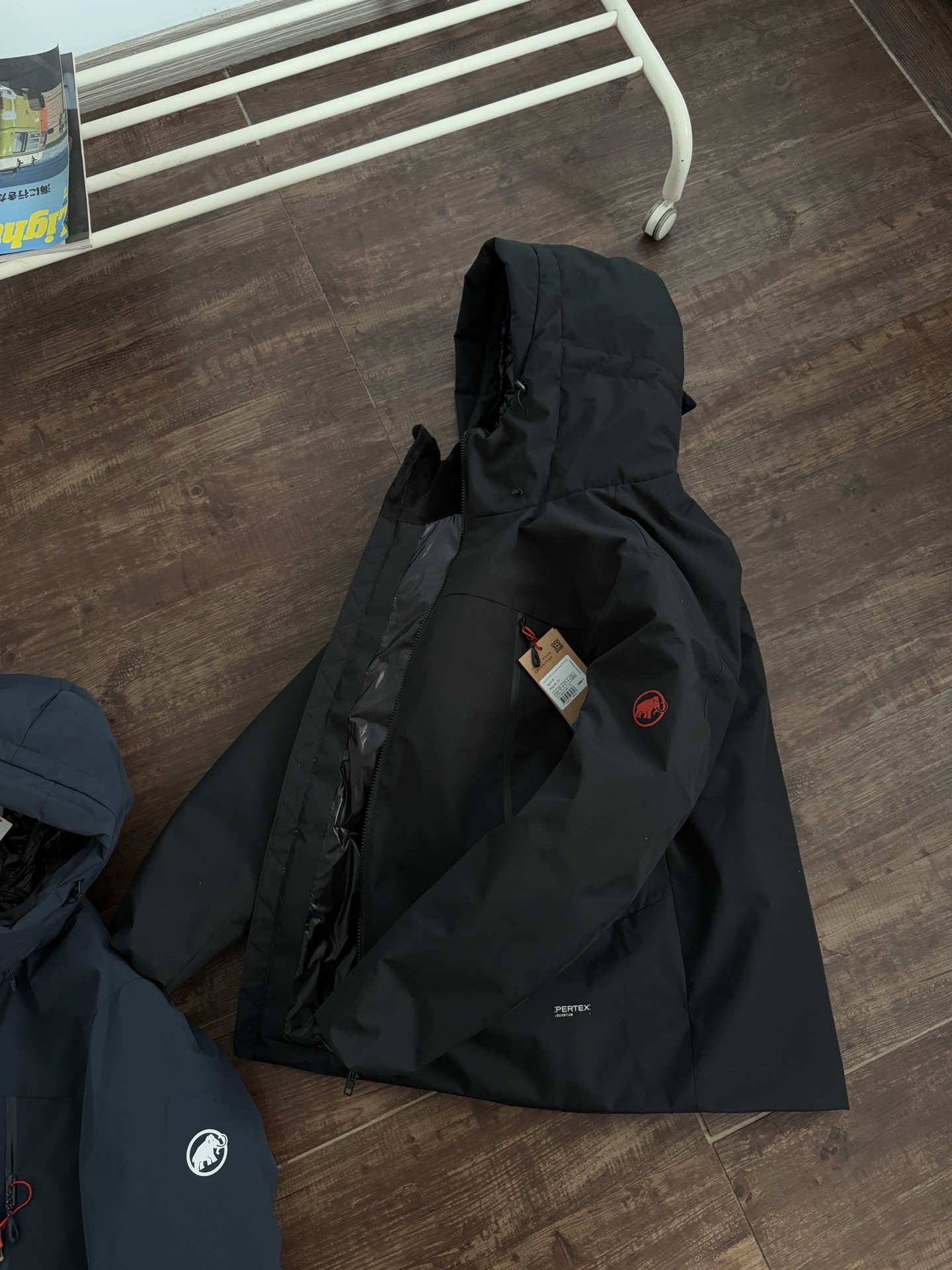 胸口“MAMMUT”红标+臂侧猛犸象Logo,