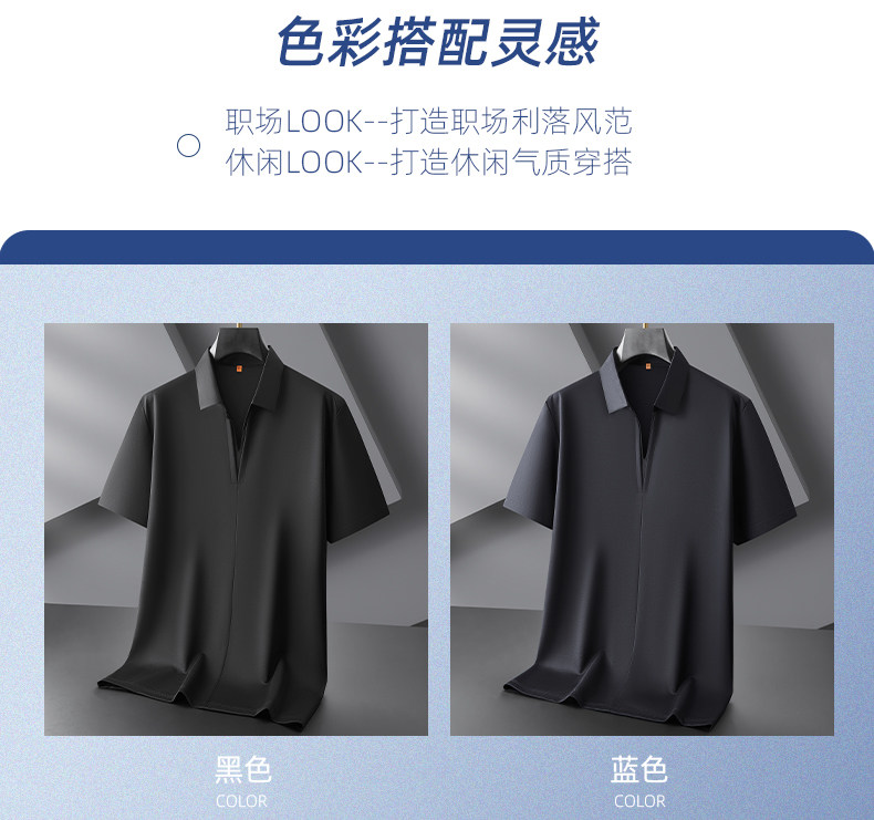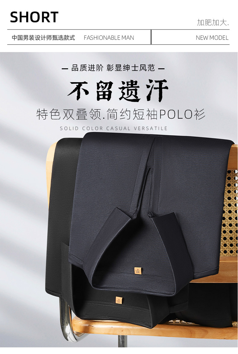 【DDP】大依优型大码男装夏季小V领短袖POLO衫双叠领商务休闲上衣棉质T恤