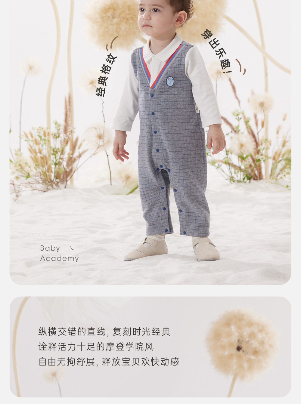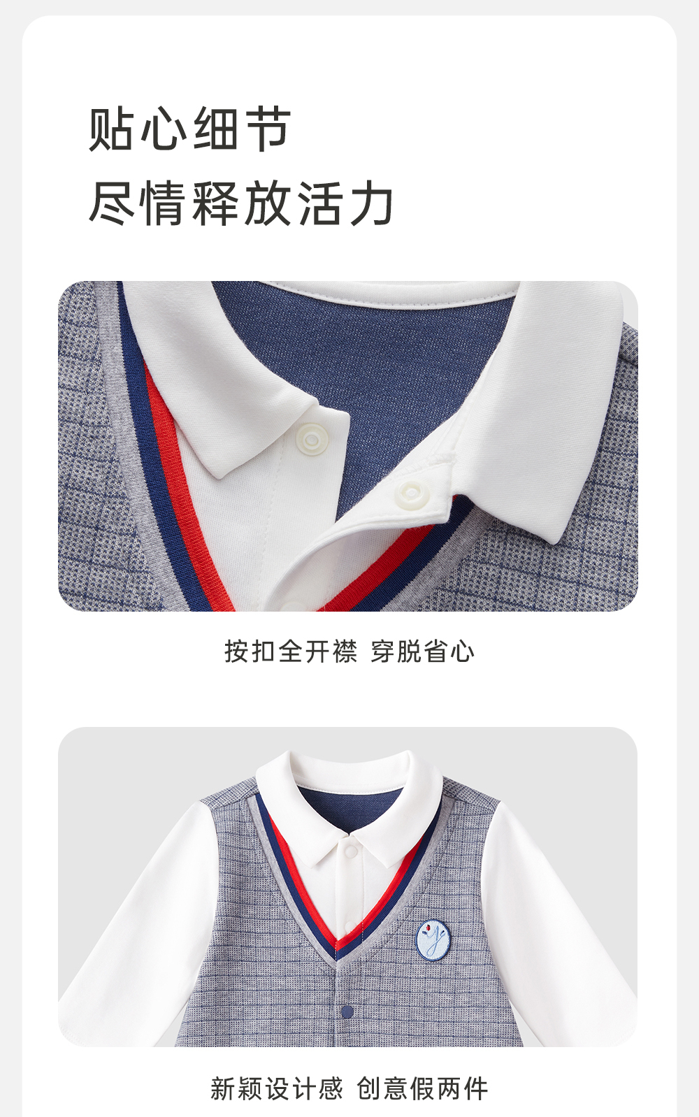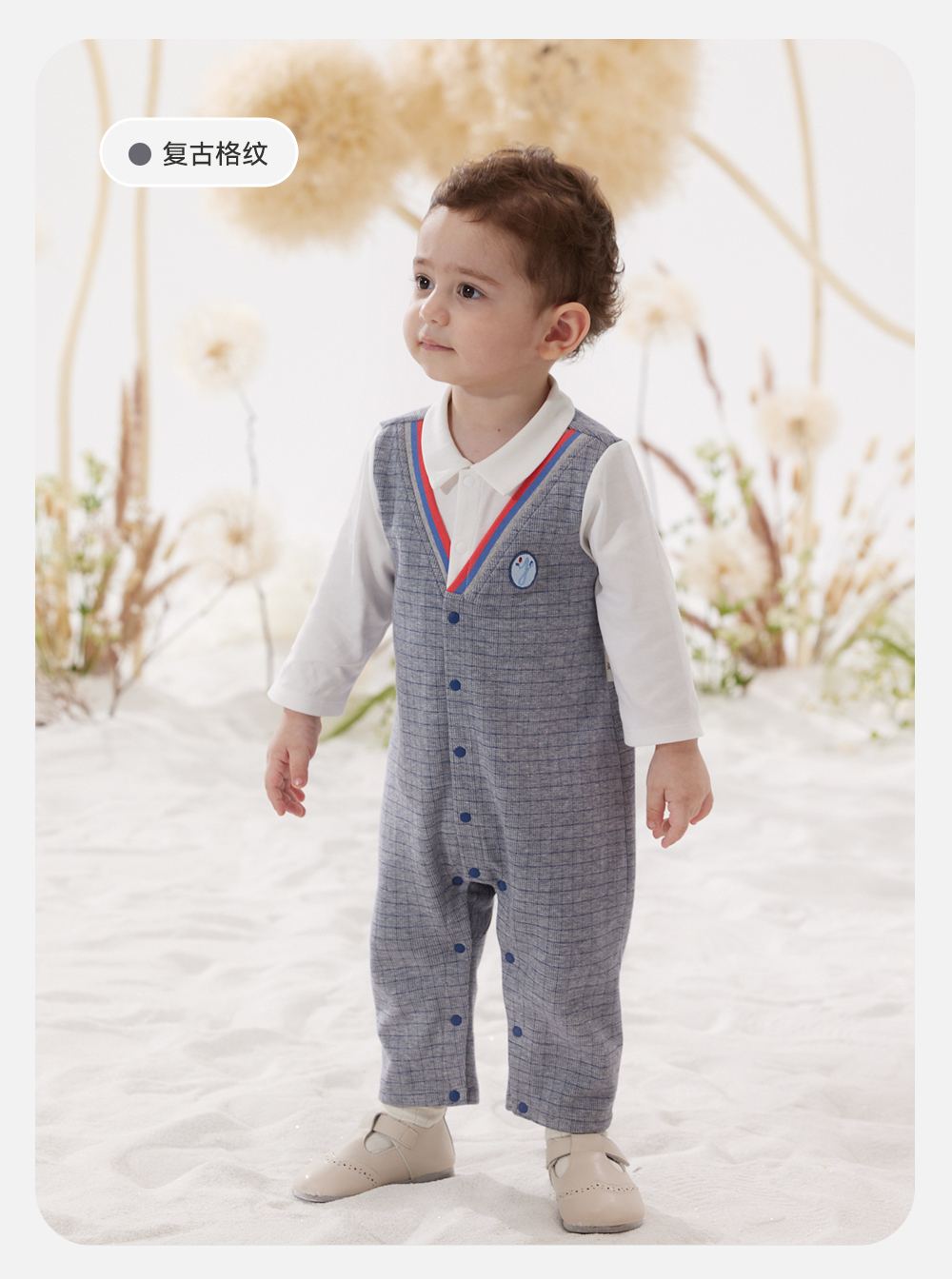 【新会员4折内购】英氏商场同款环保系列经典复古小绅士连体衣男宝吸湿速干爬服