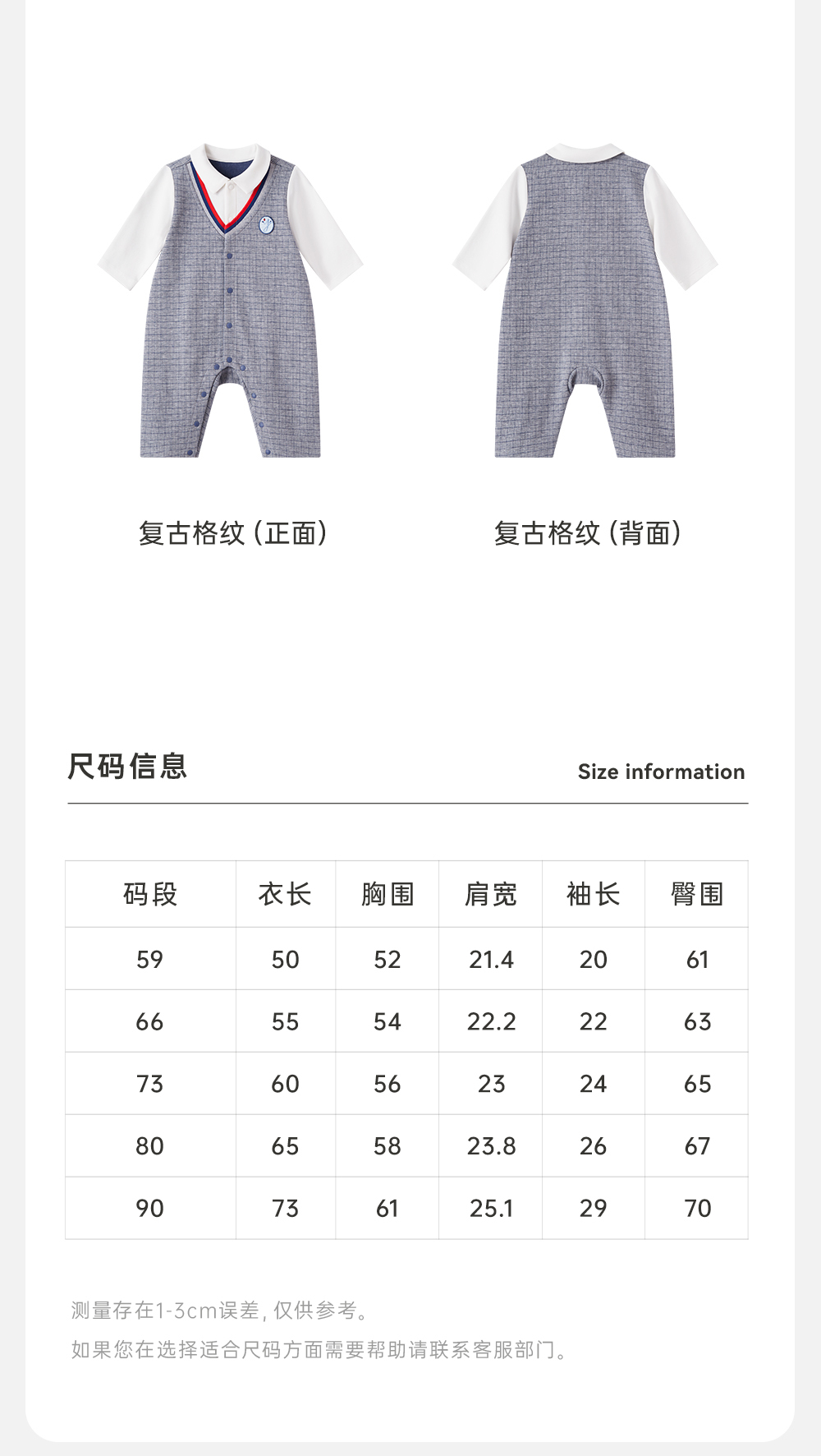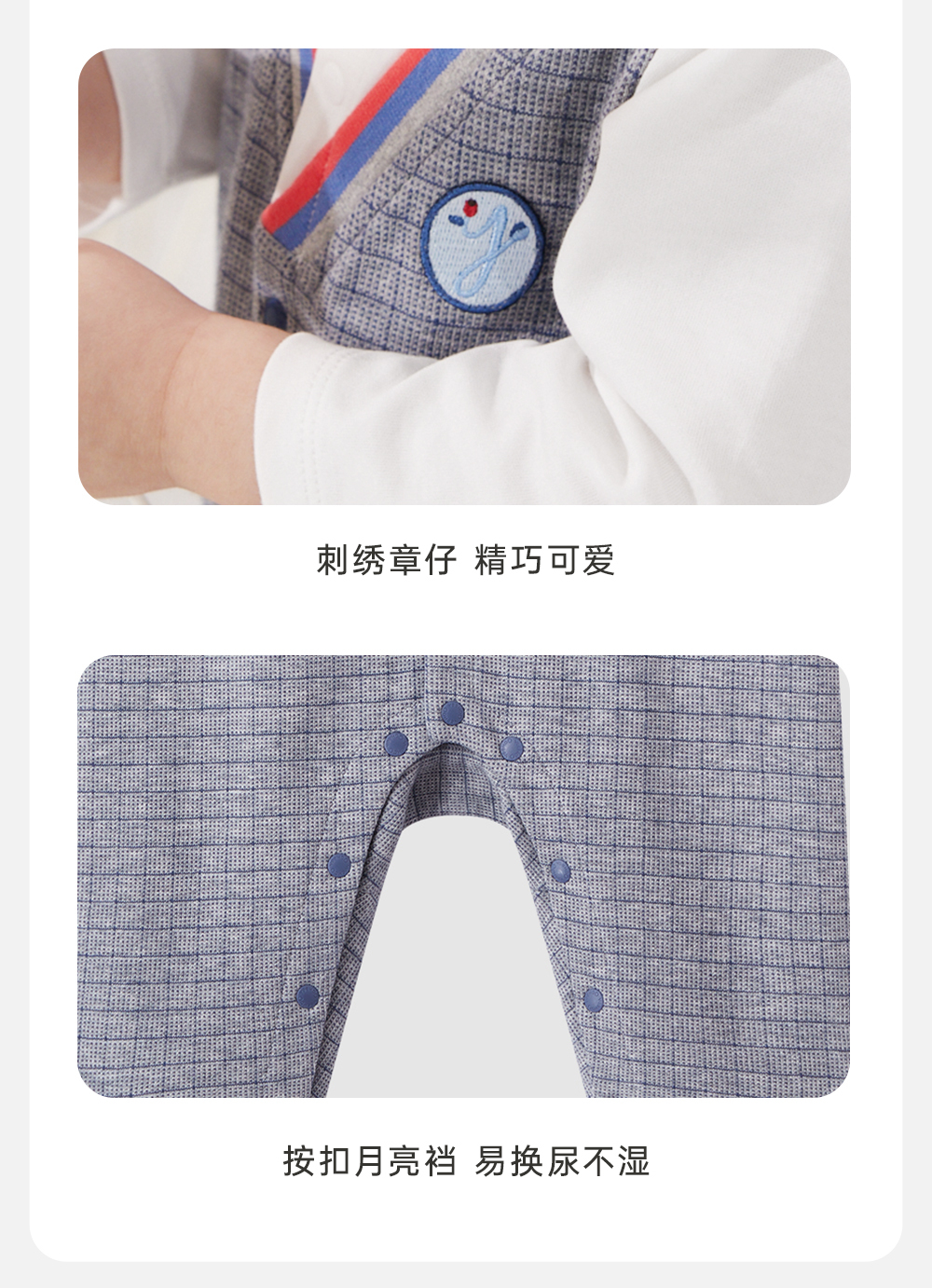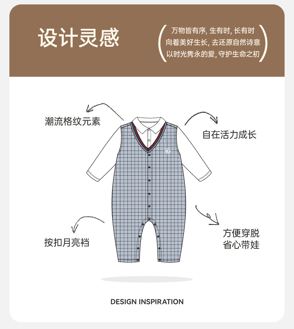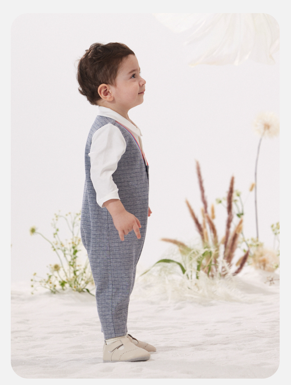 【新会员4折内购】英氏商场同款环保系列经典复古小绅士连体衣男宝吸湿速干爬服