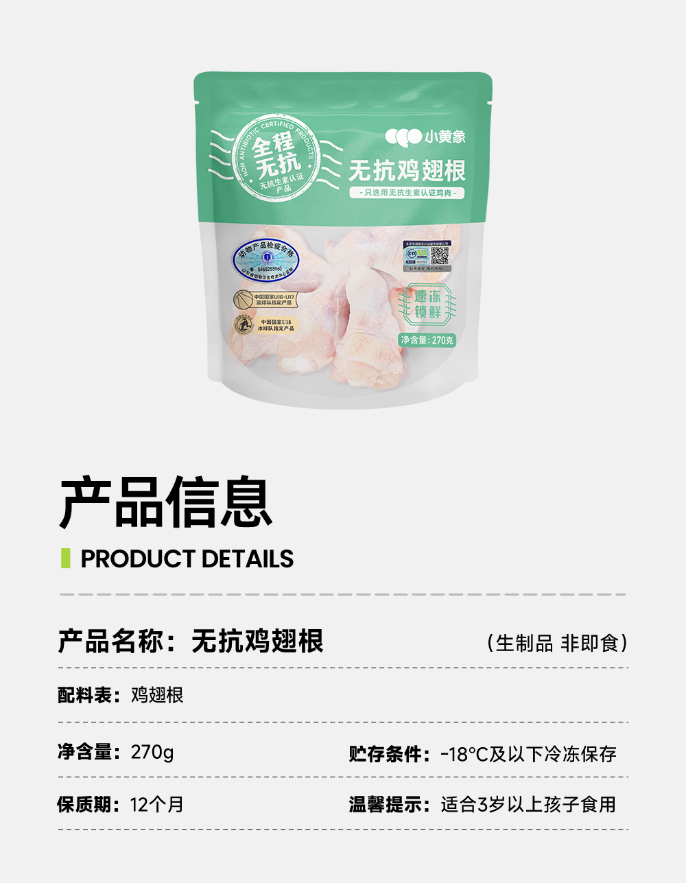 【名称3】无抗鸡翅根270g