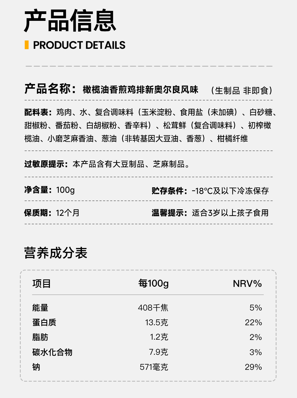 【名称12】奥尔良风味鸡排100g