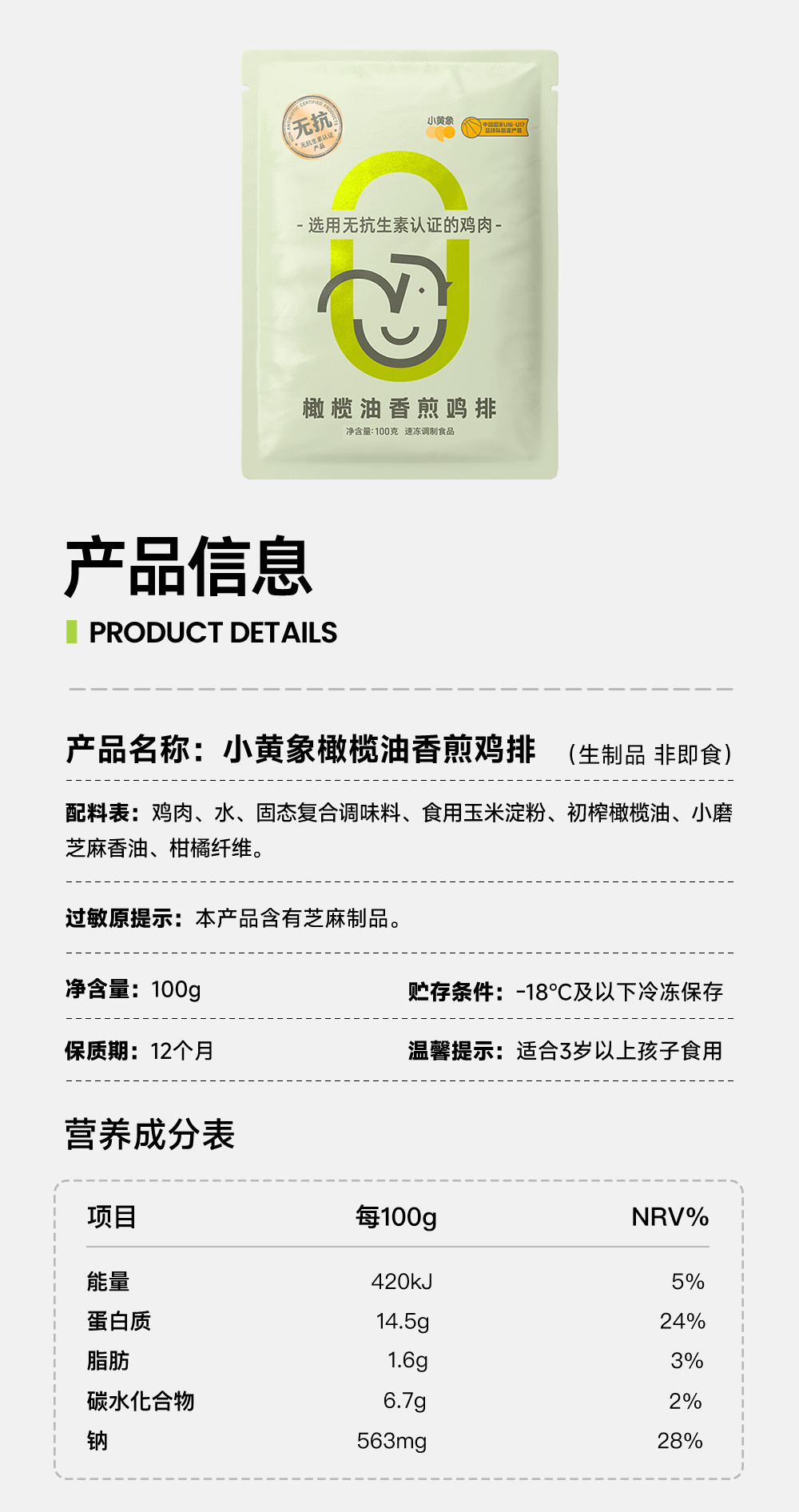 【名称6】无抗橄榄油香煎鸡排100g