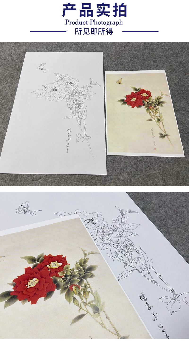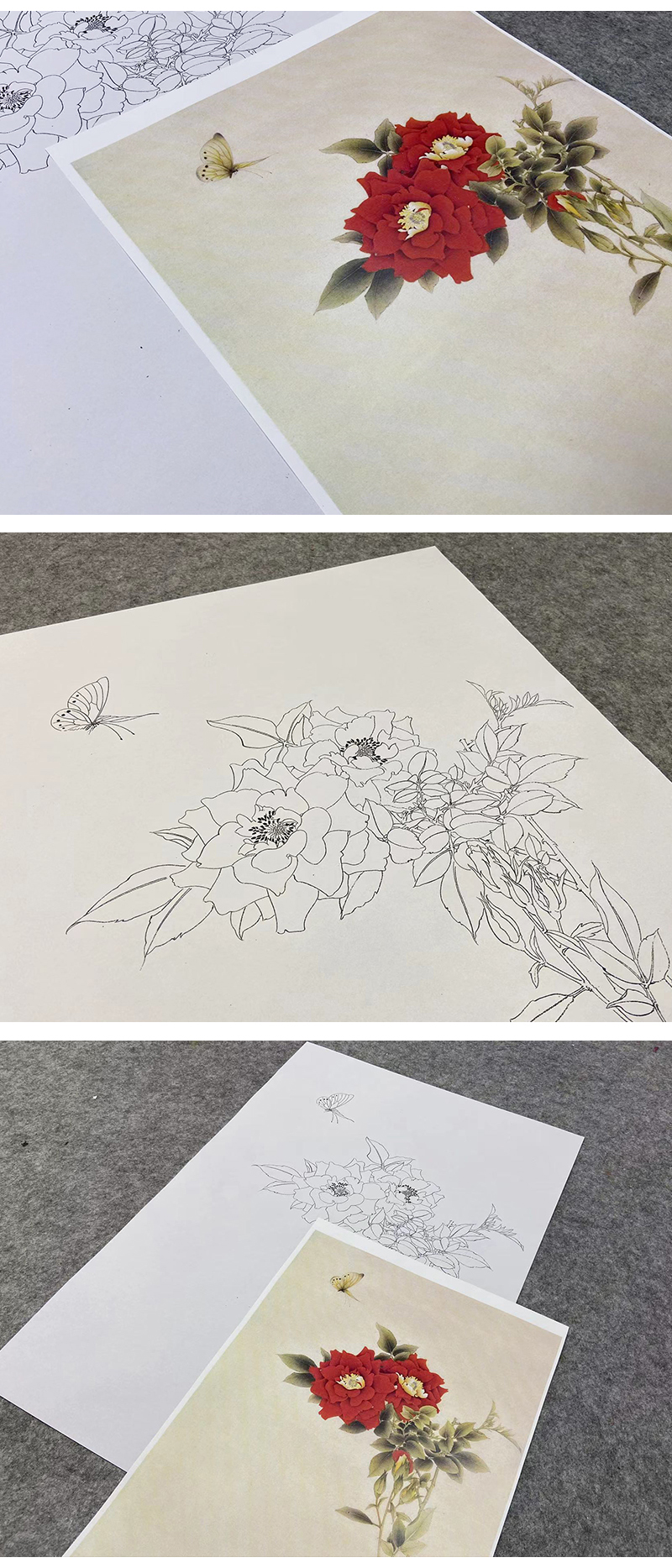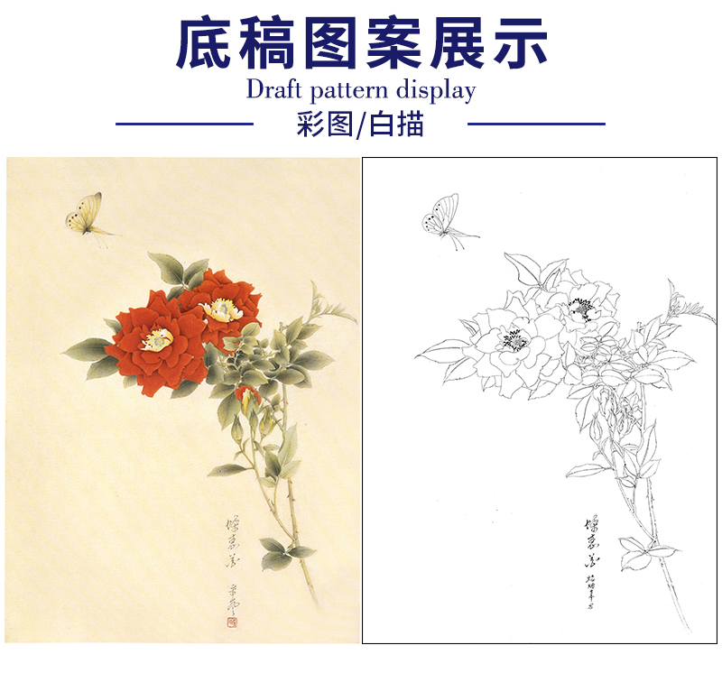 【无步骤】李长白工笔花鸟画白描底稿《蝶恋花 》斗方小品册页-LB06