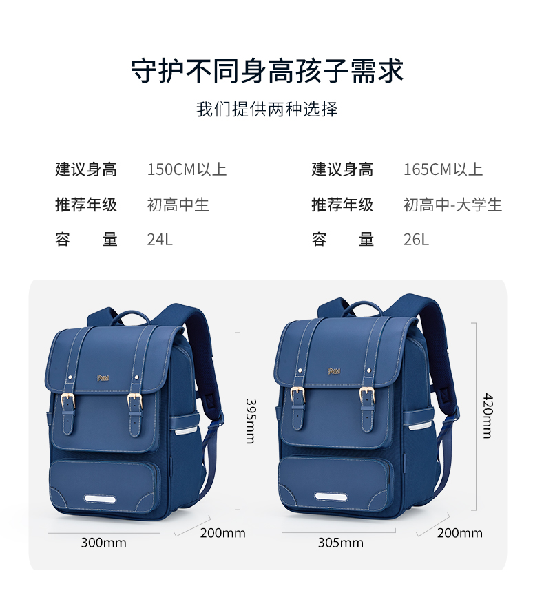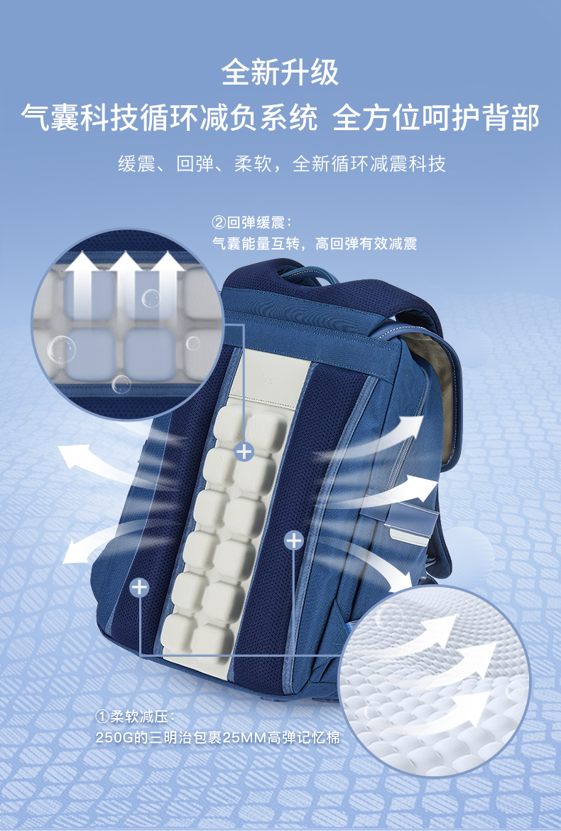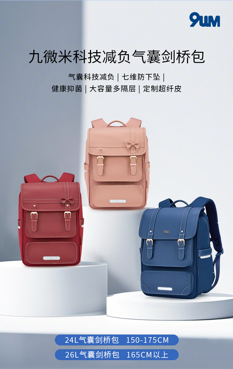 【专利气囊减负】卡拉羊X九微米中学生防下坠书包剑桥包天鹅堡 U5145