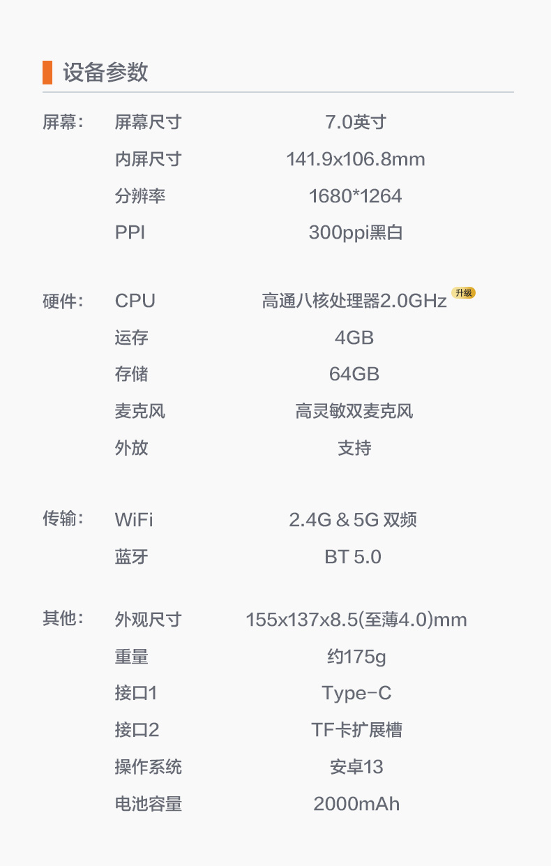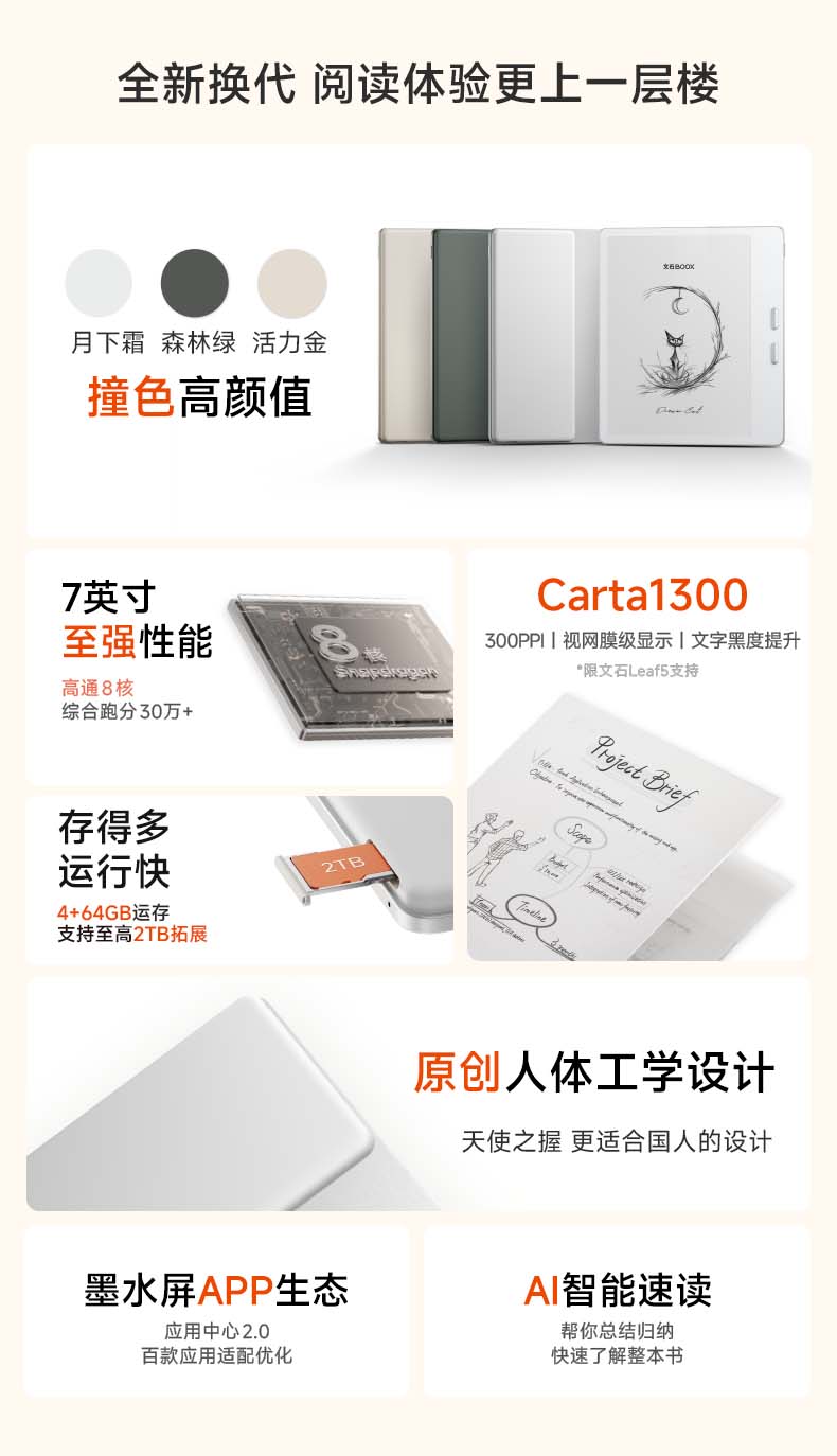 文石BOOXLeaf5高速电子阅读器墨水屏护眼电纸书