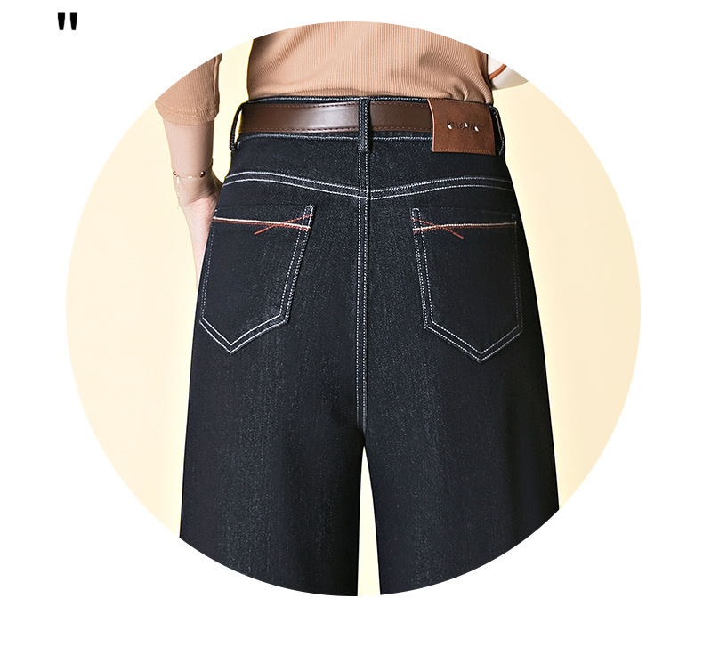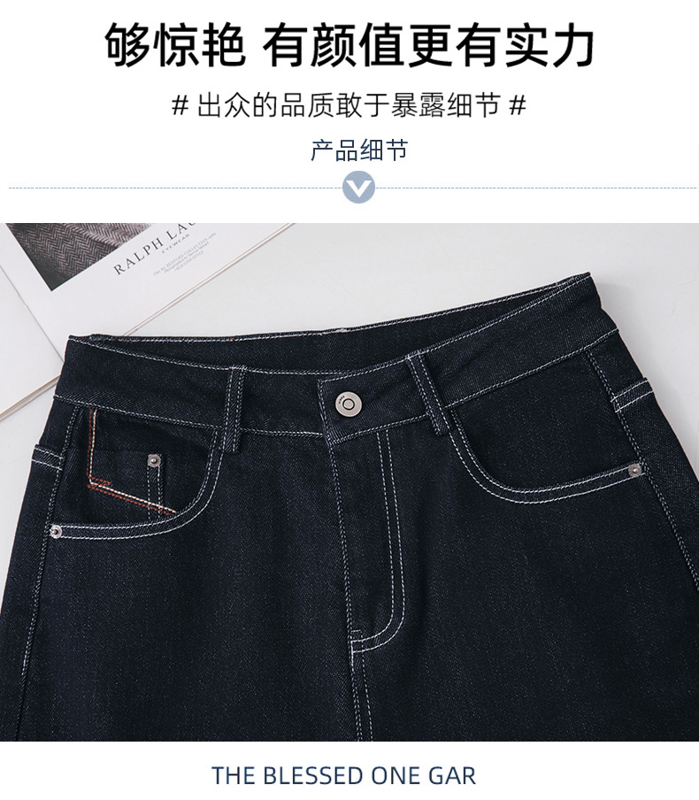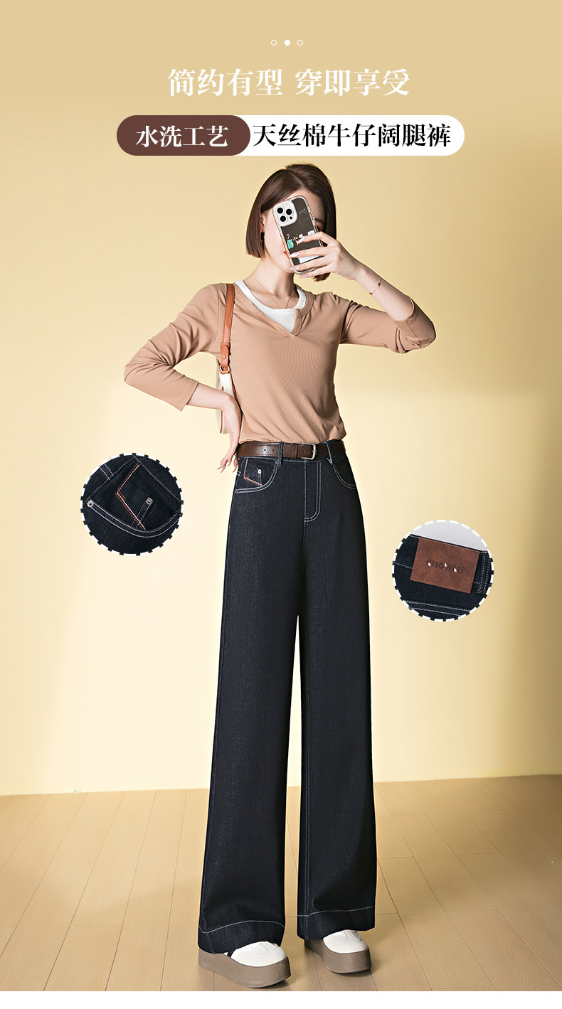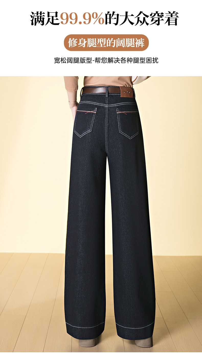 HSS 3056复古牛仔阔腿裤高腰显瘦宽松水洗刺绣牛仔裤