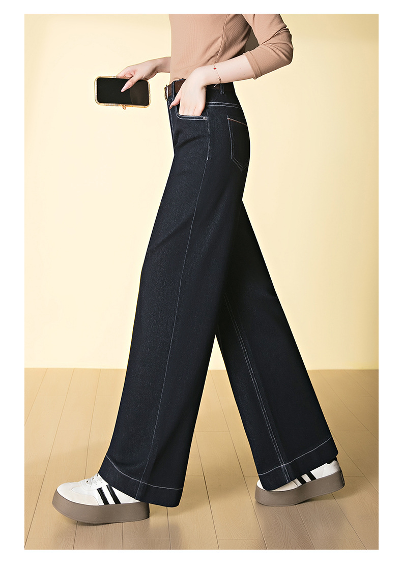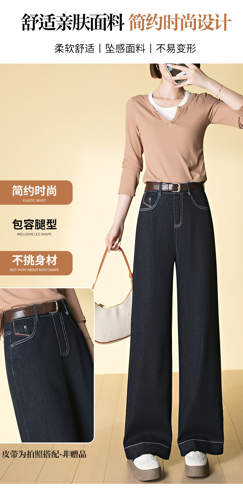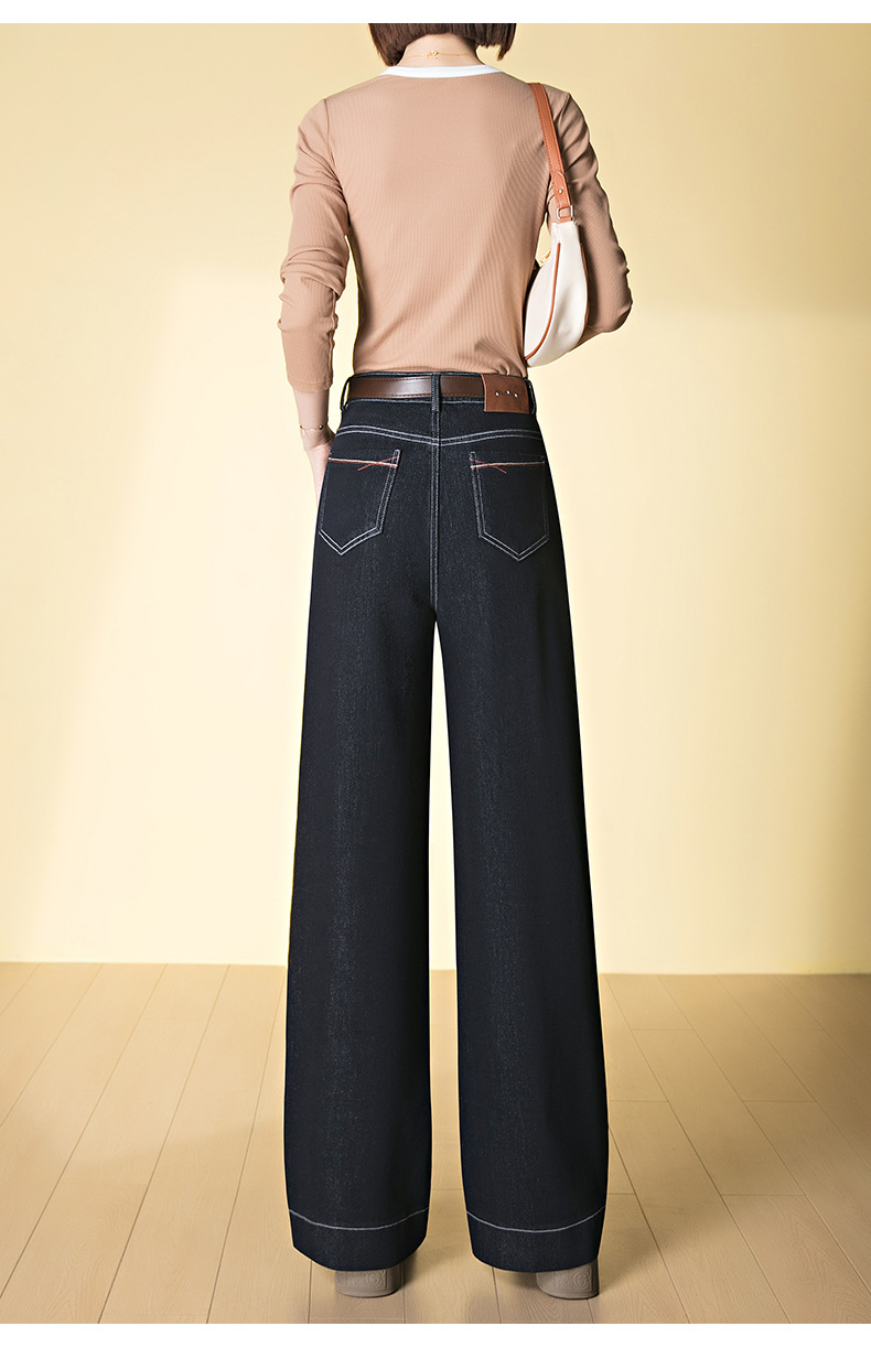 HSS 3056复古牛仔阔腿裤高腰显瘦宽松水洗刺绣牛仔裤