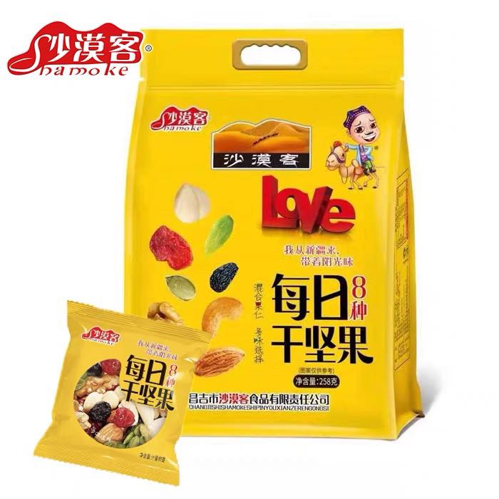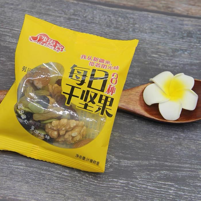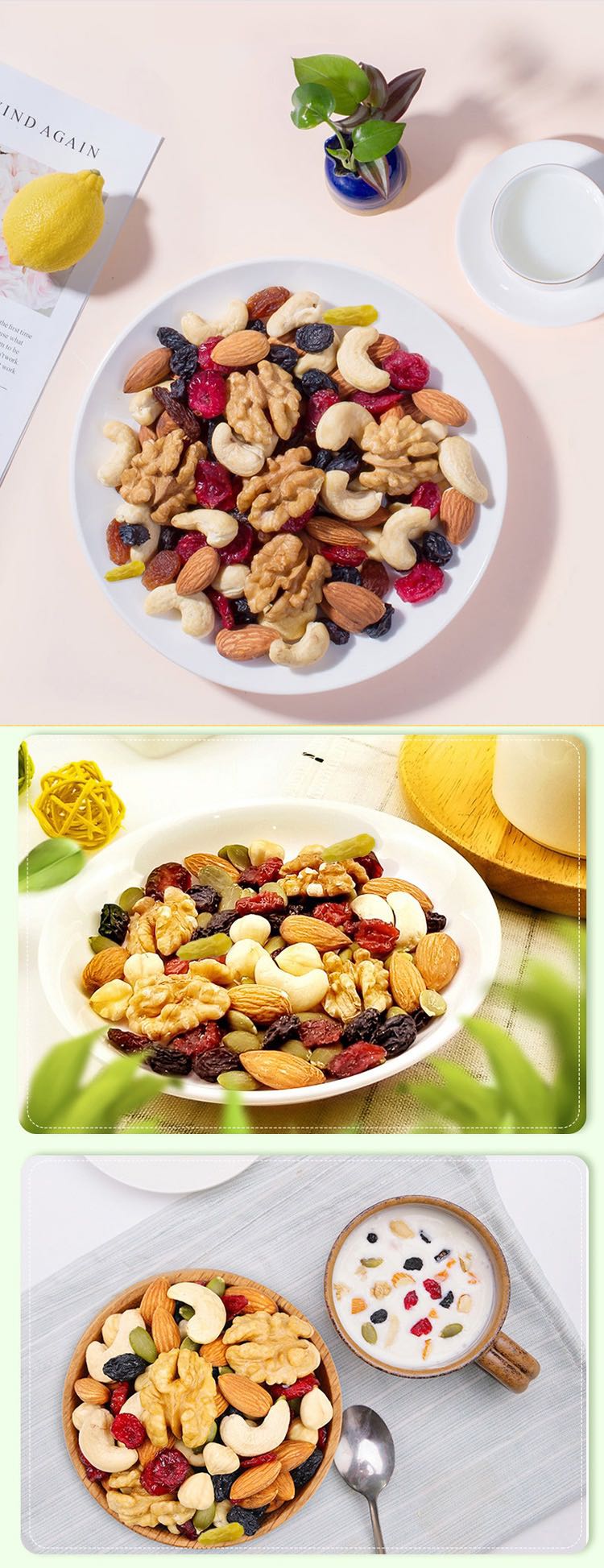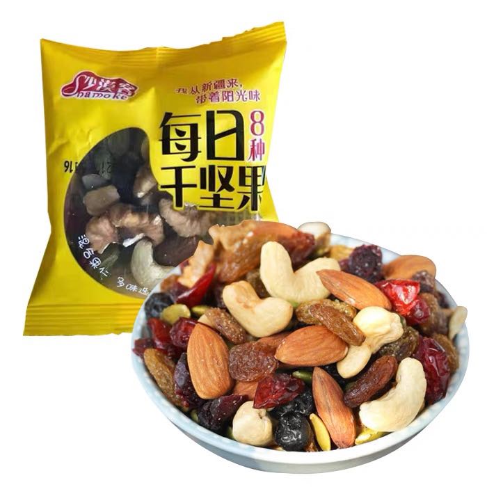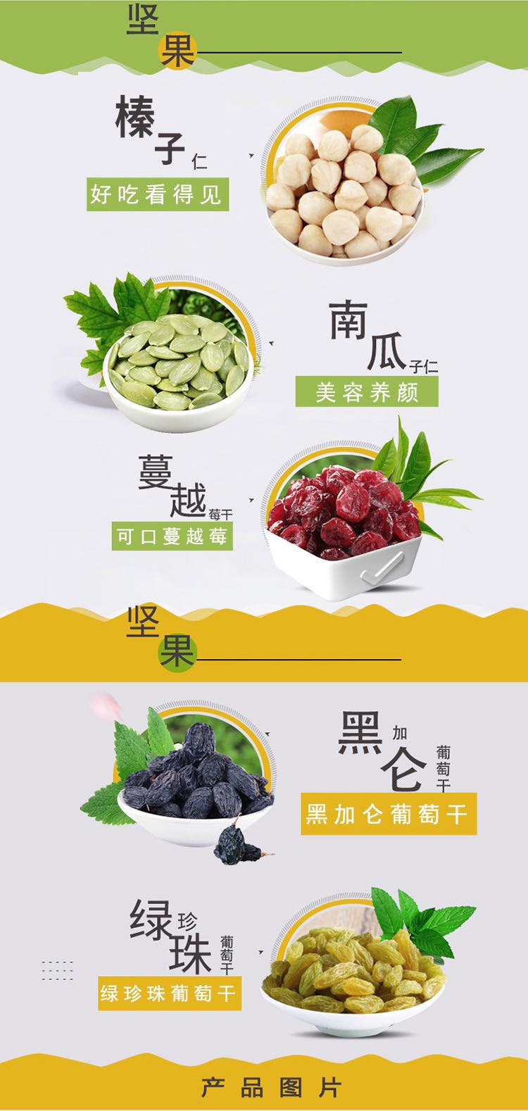 配料表:8种坚果混合果仁 核桃仁 扁桃仁 腰果仁 南瓜子仁 蔓越莓 黑加仑葡萄干 绿珍珠葡萄干