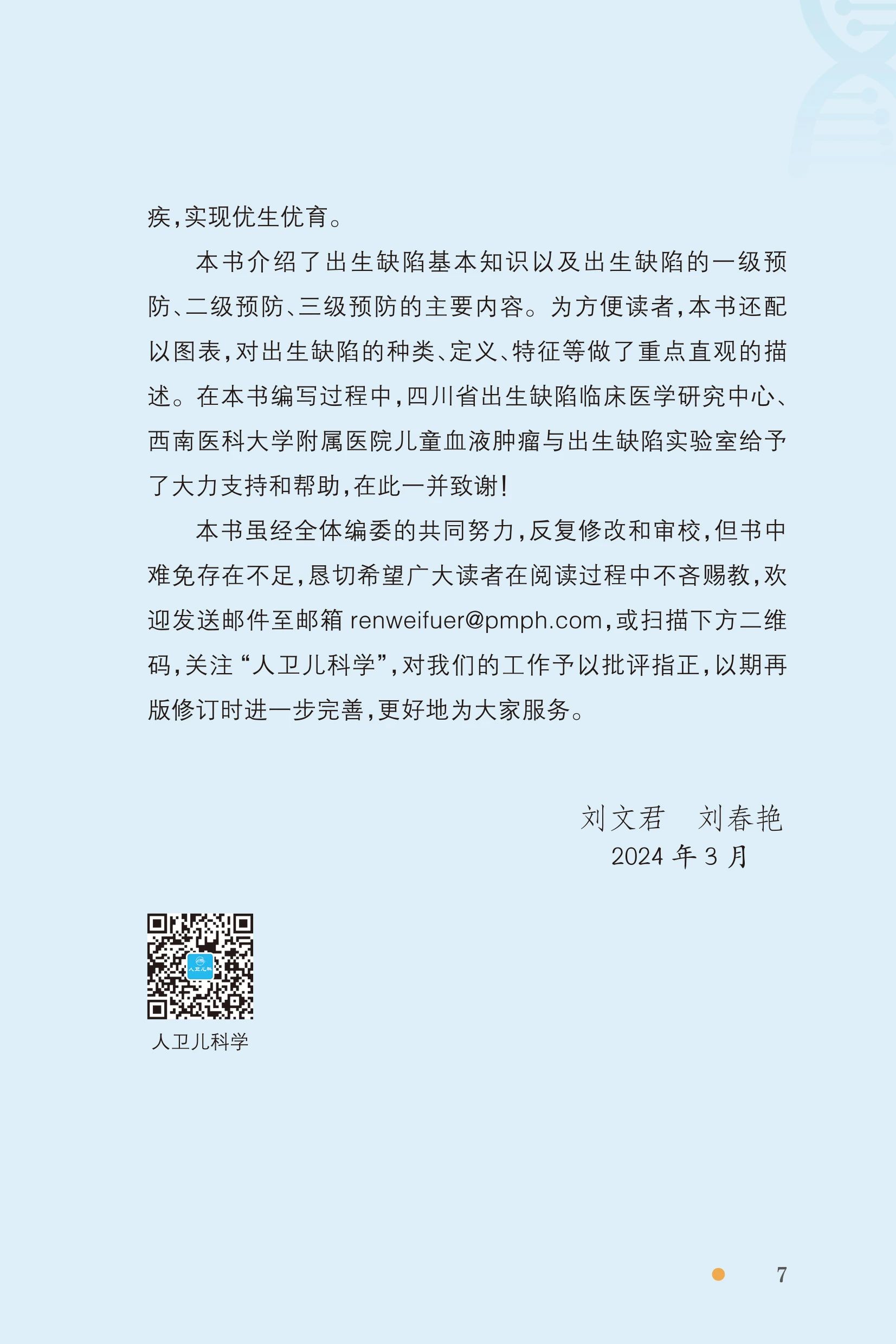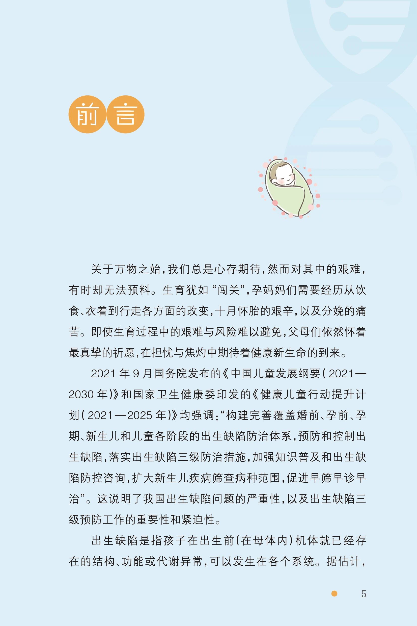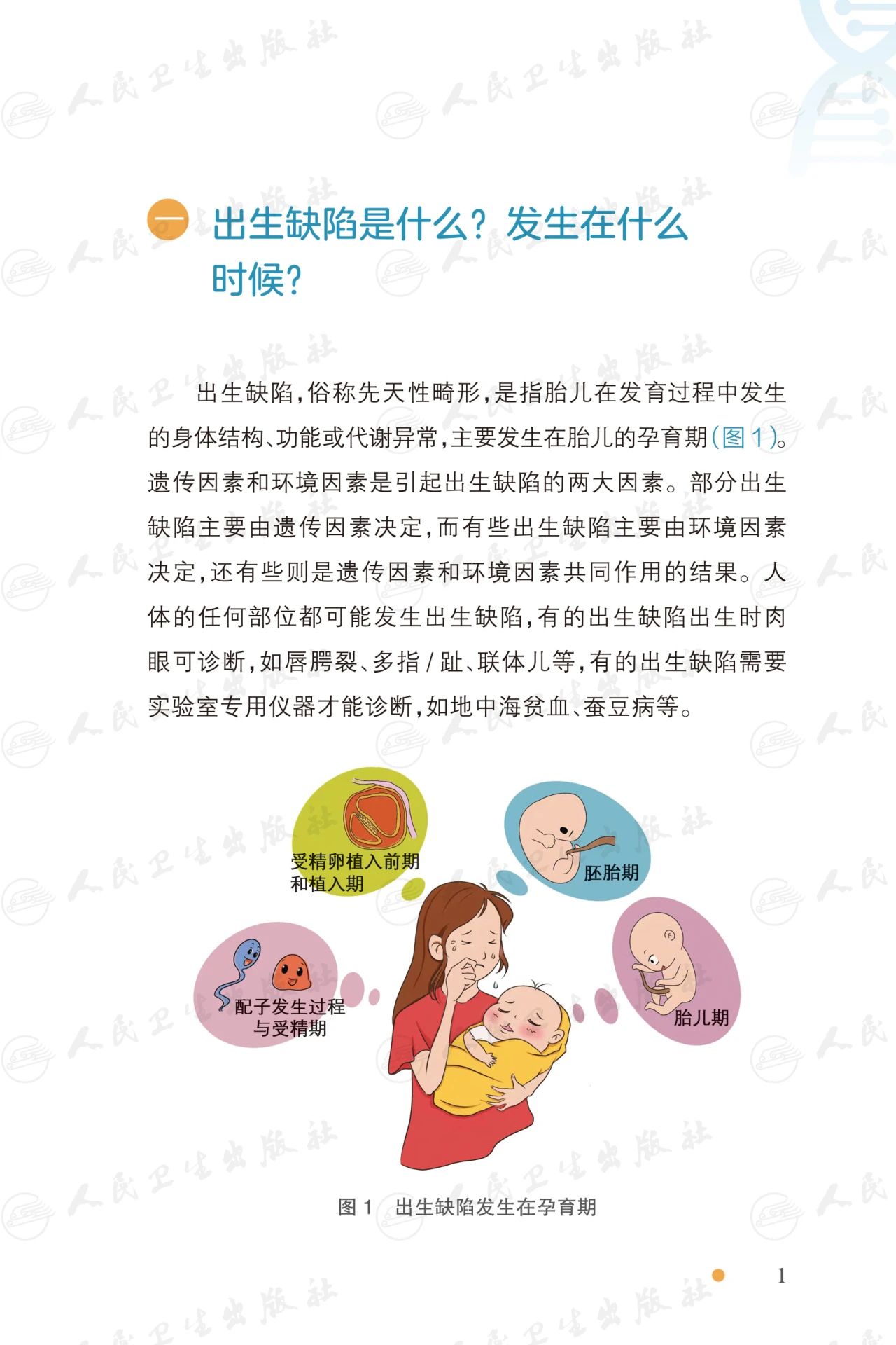 2. 本书从出生缺陷的基础知识讲起,通俗易懂,涵盖出生缺陷的一级预防、二级预防及三级预防的科普知识,让普通群众了解如何预防出生缺陷的发生。