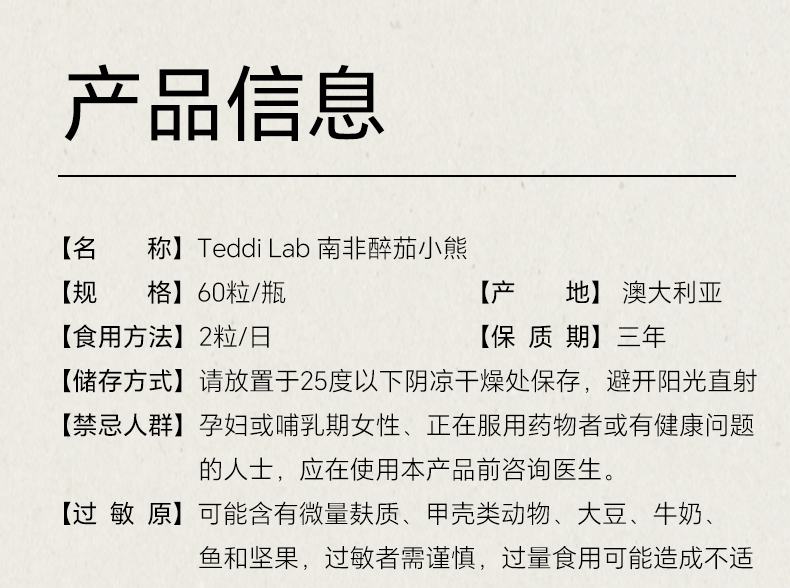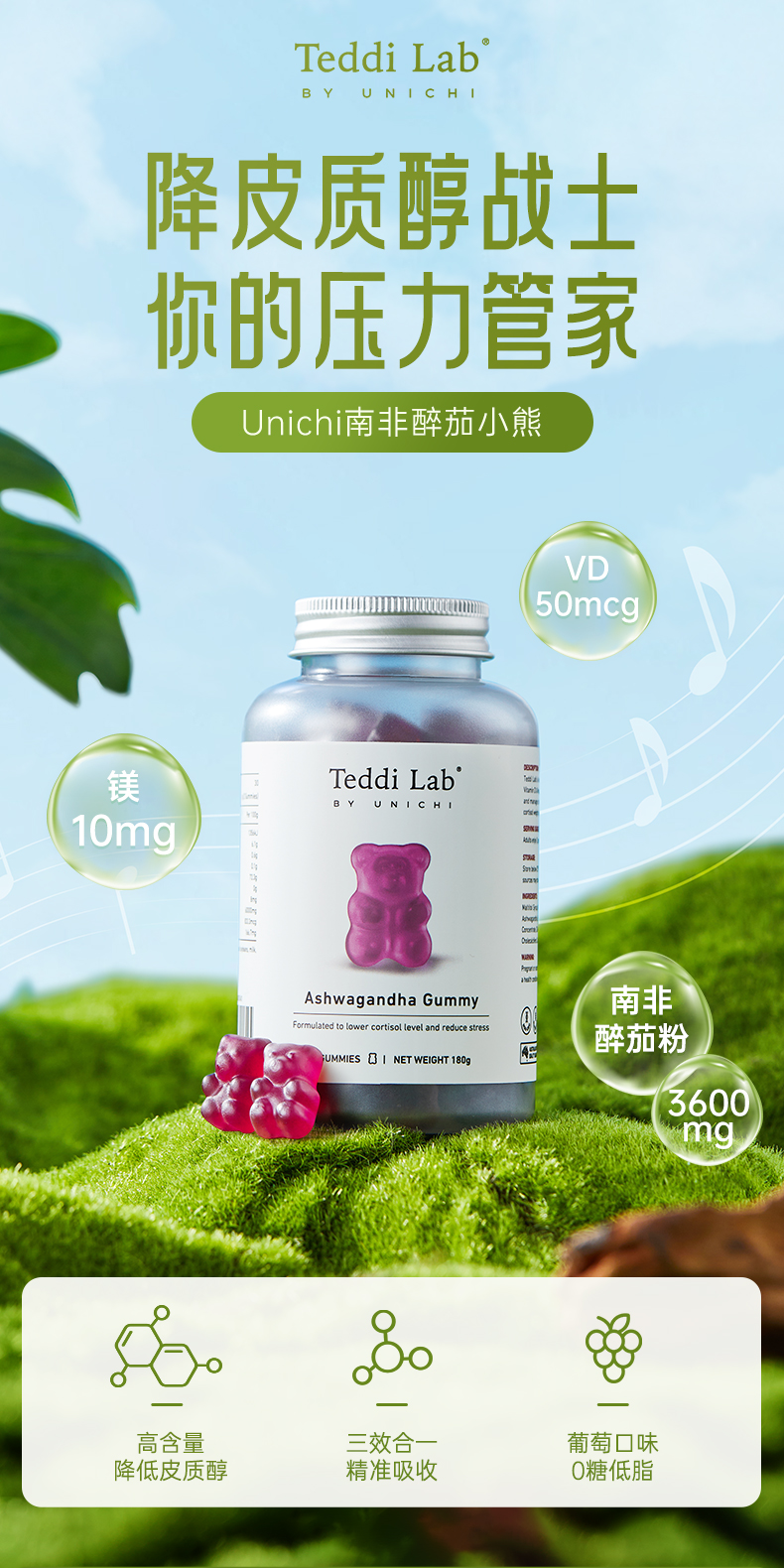 【3瓶一周期】Unichi 南非醉茄小熊 60粒/瓶 降低皮质醇(效期到27年10月)
