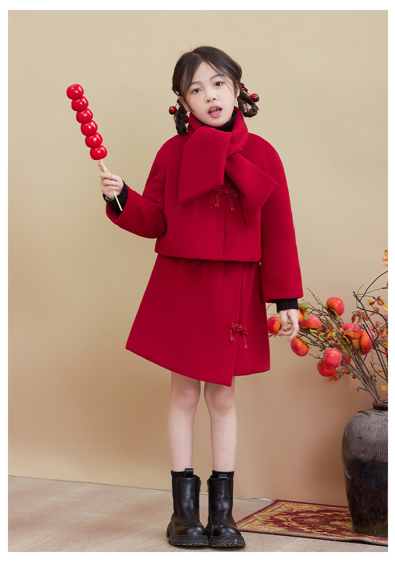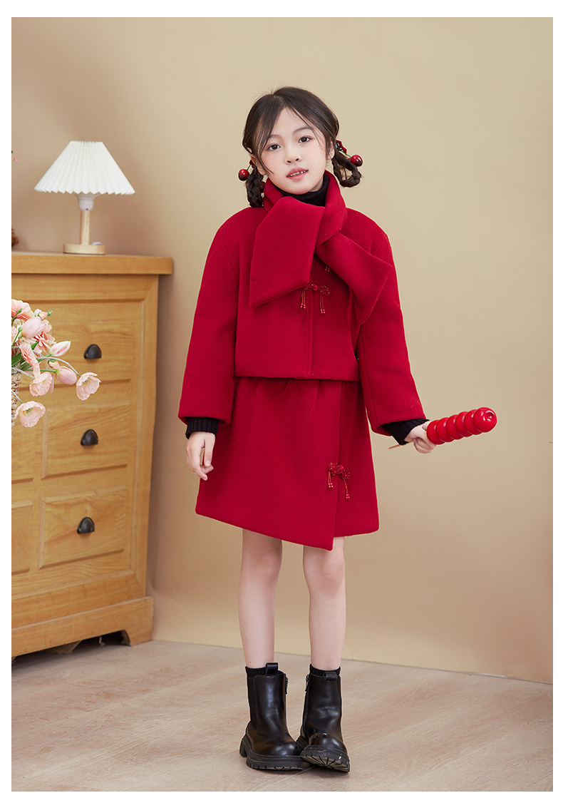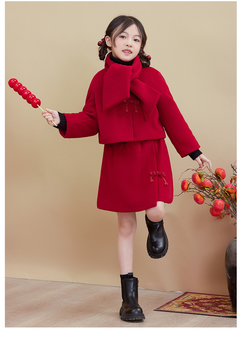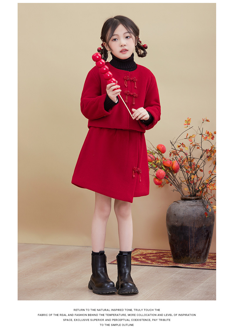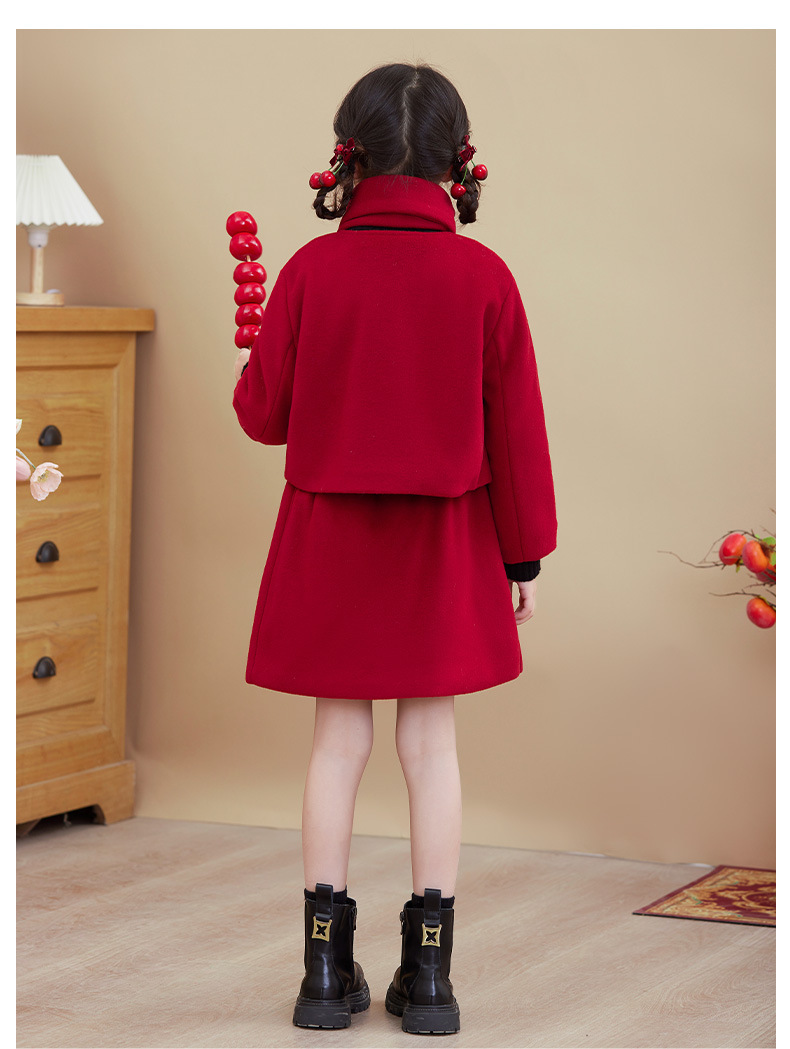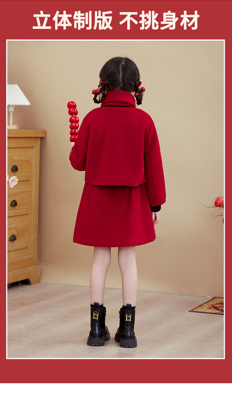 【立体制版,不挑身材】女童国风套装 秋冬新款儿童冬装 夹棉加厚新年红色中式拜年服-QQ