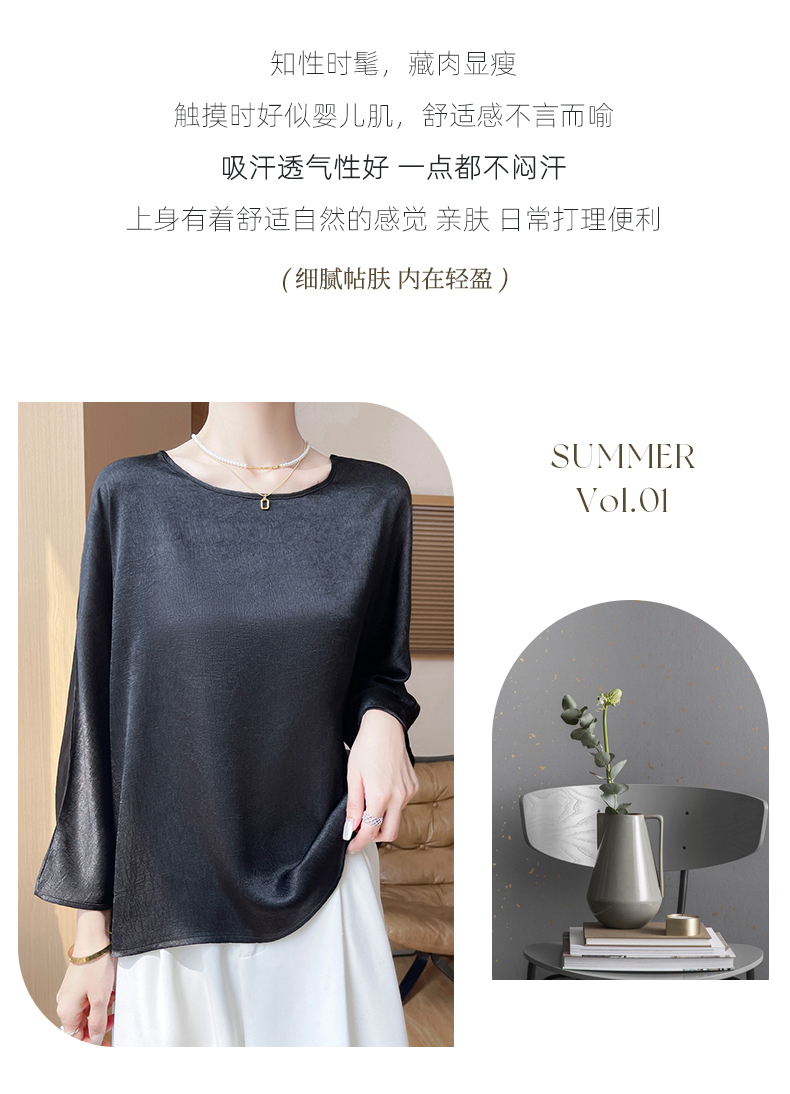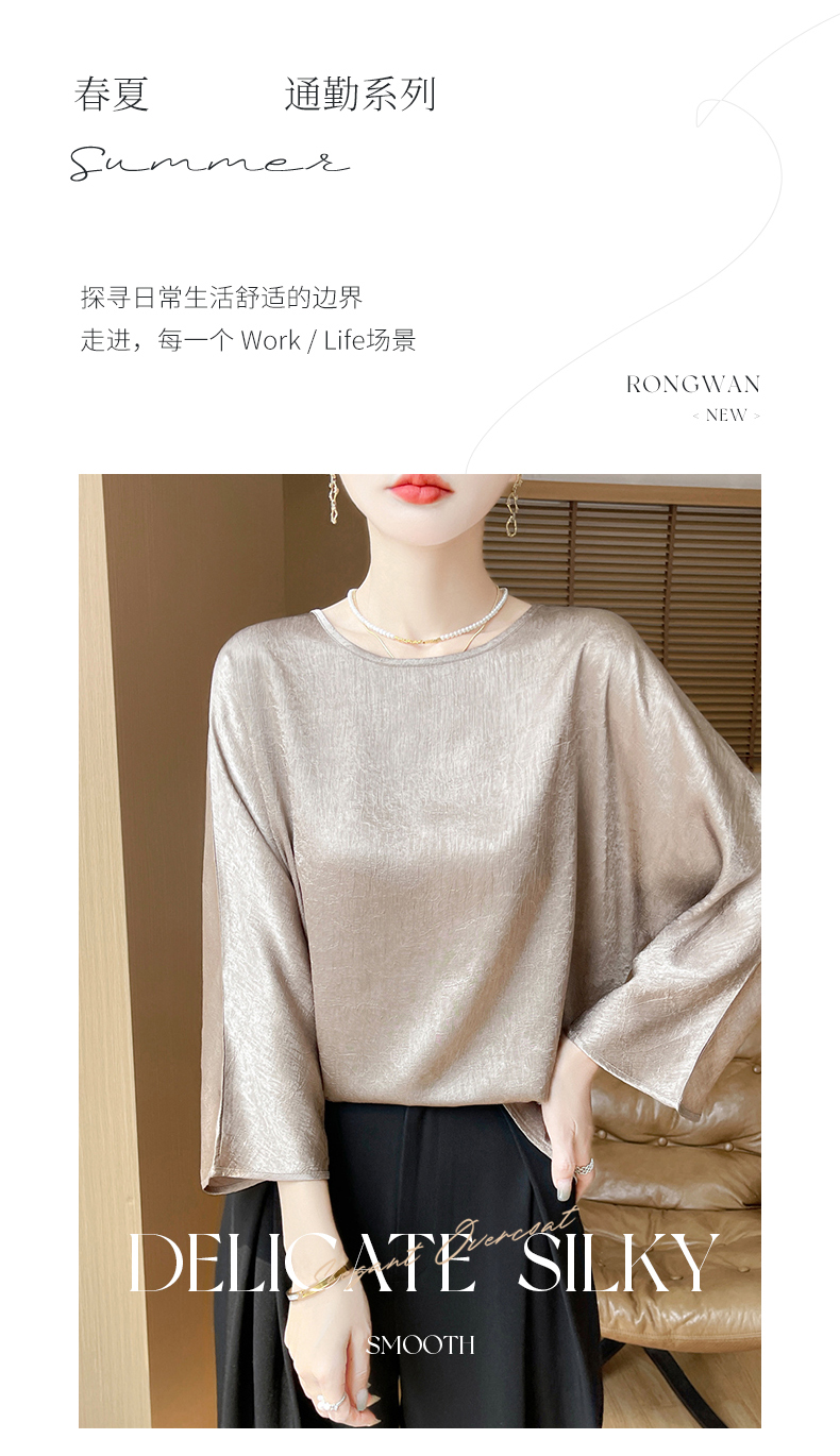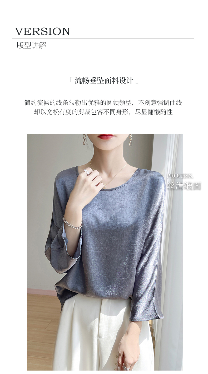 品名: 圆领暗纹肌理感垂感顺滑缎面罩衫