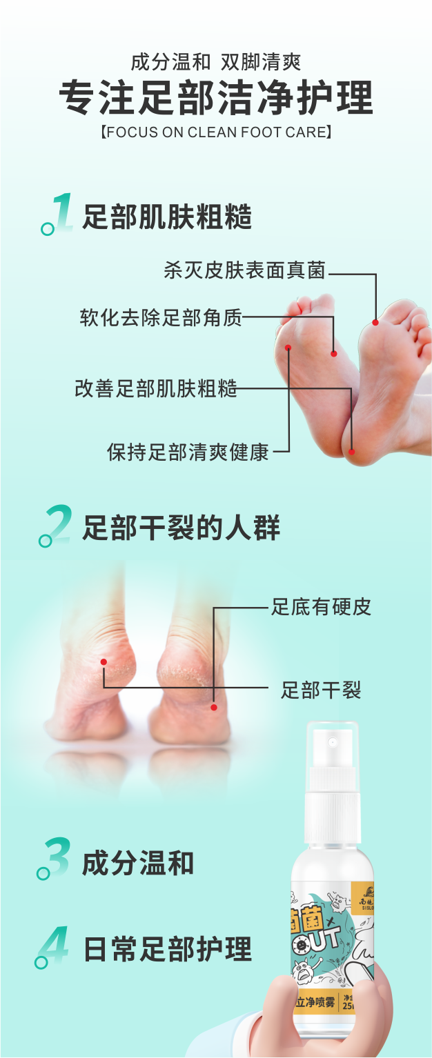 西施兰正品西施露菌立净喷雾 足部护理清爽杀菌改善粗糙干裂