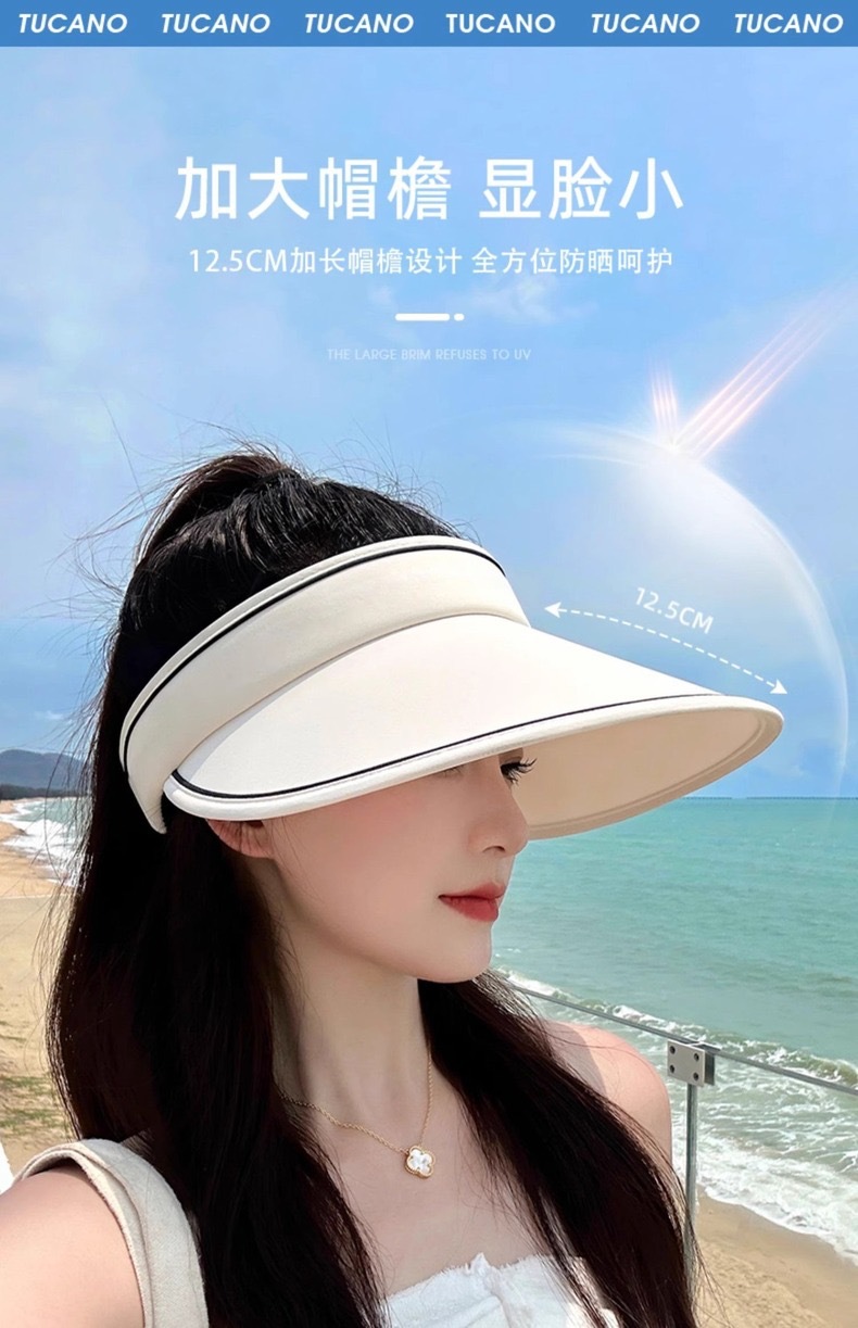 全脸防晒,显脸小【隔绝98%紫外线!双层冰丝!易收纳】防晒帽空顶女夏季骑车防紫外线uv遮阳帽百搭大檐折叠太阳帽。ha