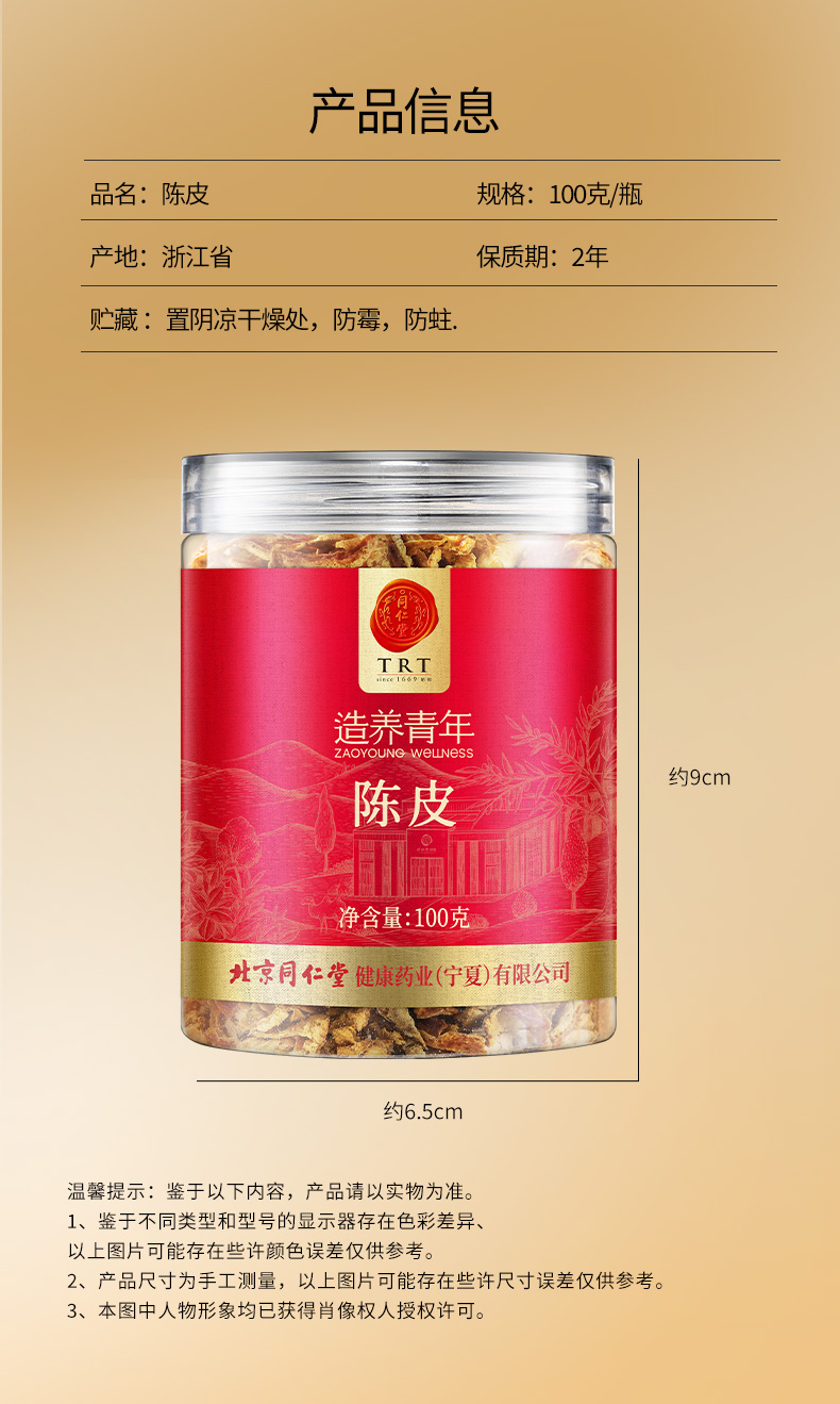 【正宗同仁堂品牌】北京同仁堂 陈皮丝100克 醇香柔滑 浙江原产陈皮 适宜冲泡SY