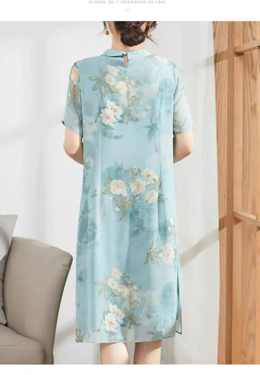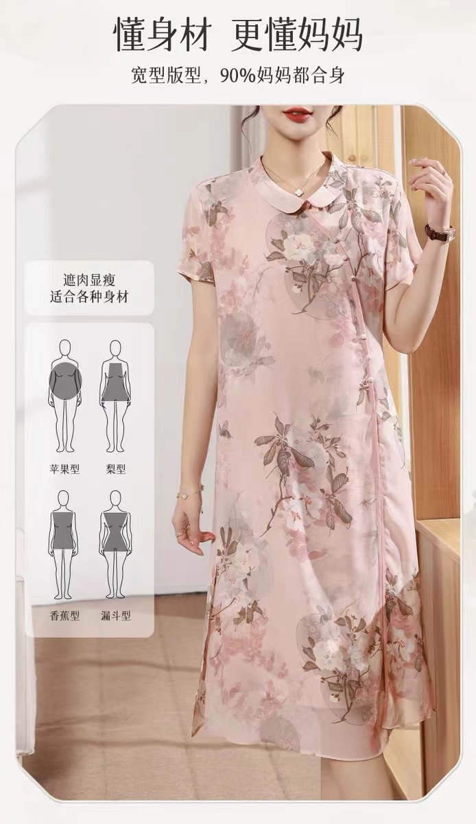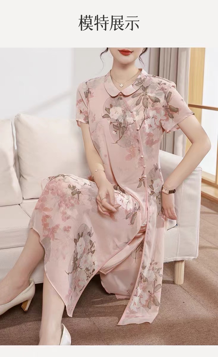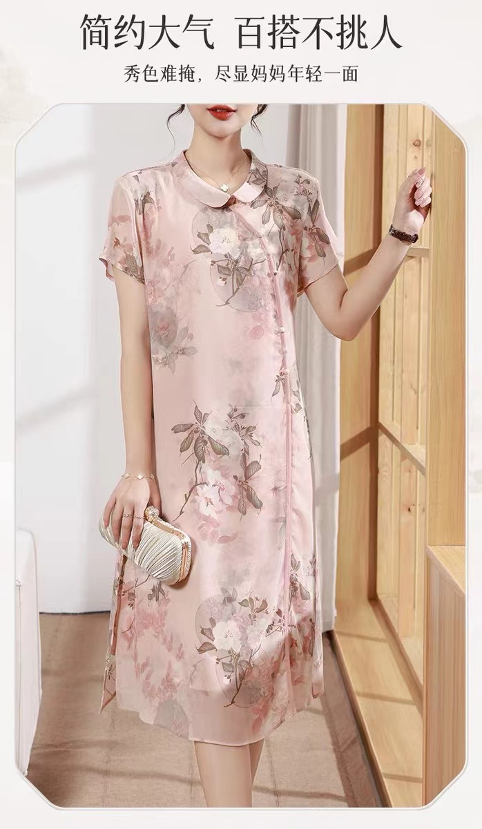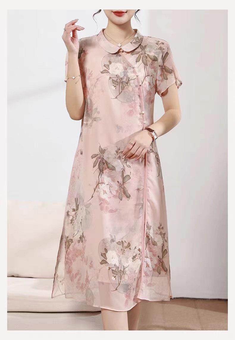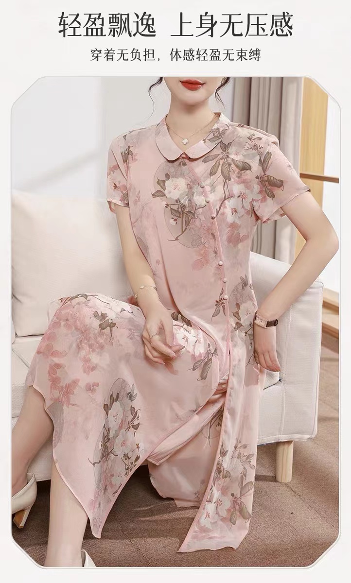 特价促!!轻微抽丝处理(欣迪奥)LYQ101小翻领侧开叉改良旗袍风宽松国风连衣裙-喜出