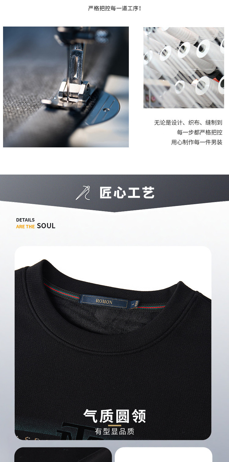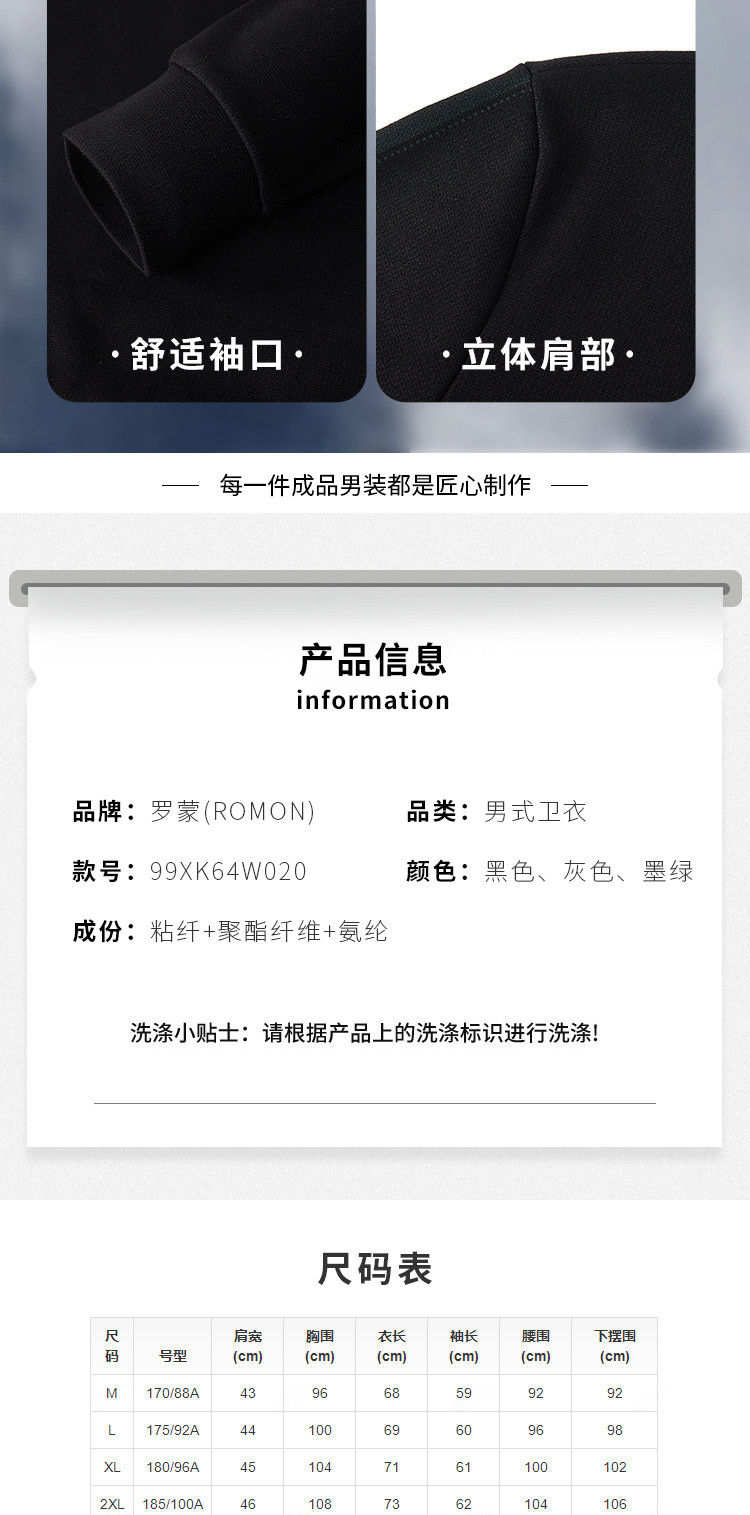 99XK64W02099XK64W020【加绒保暖】罗蒙卫衣男秋冬新品圆领舒适亲肤通勤内搭外穿男士卫衣